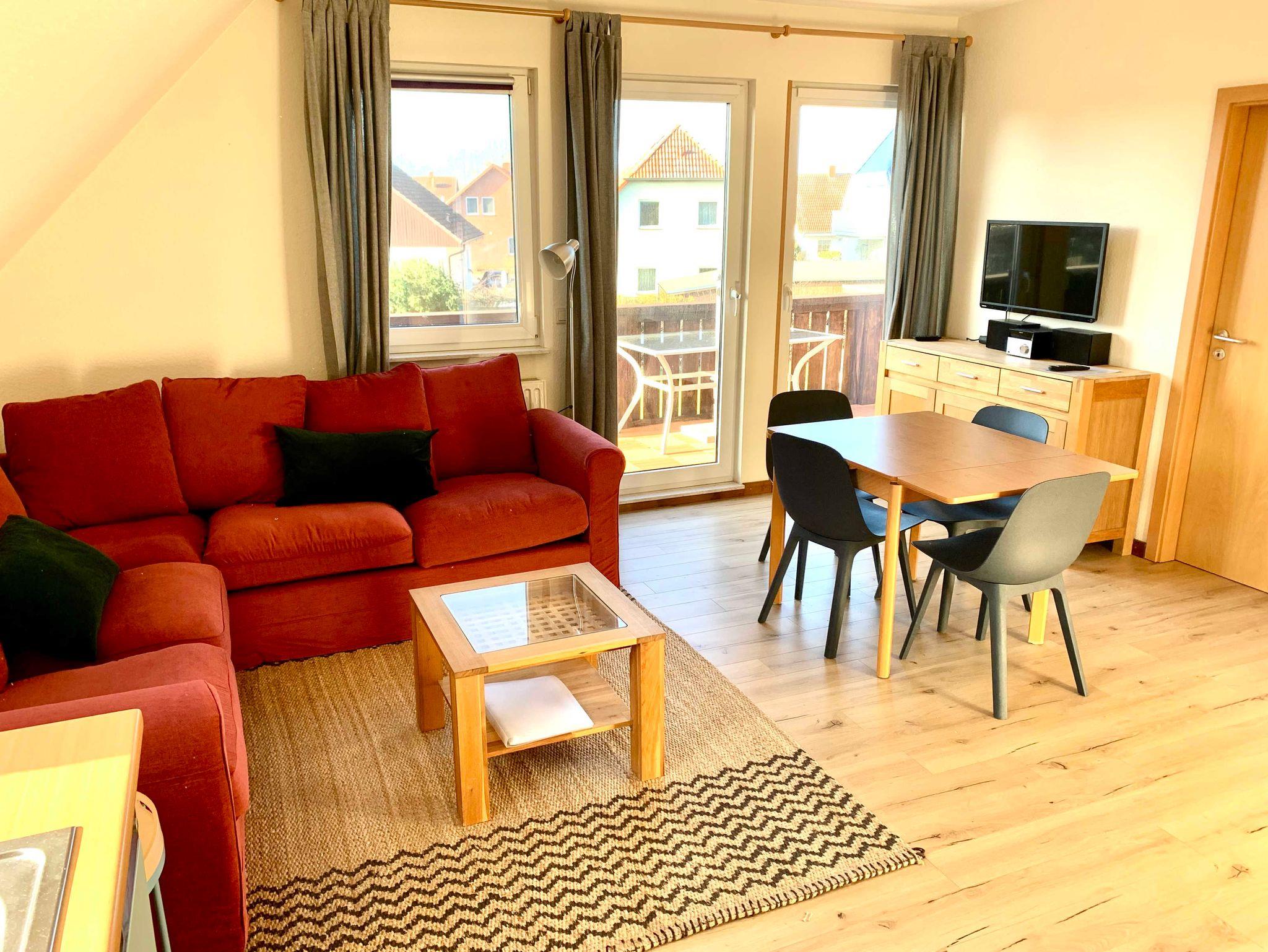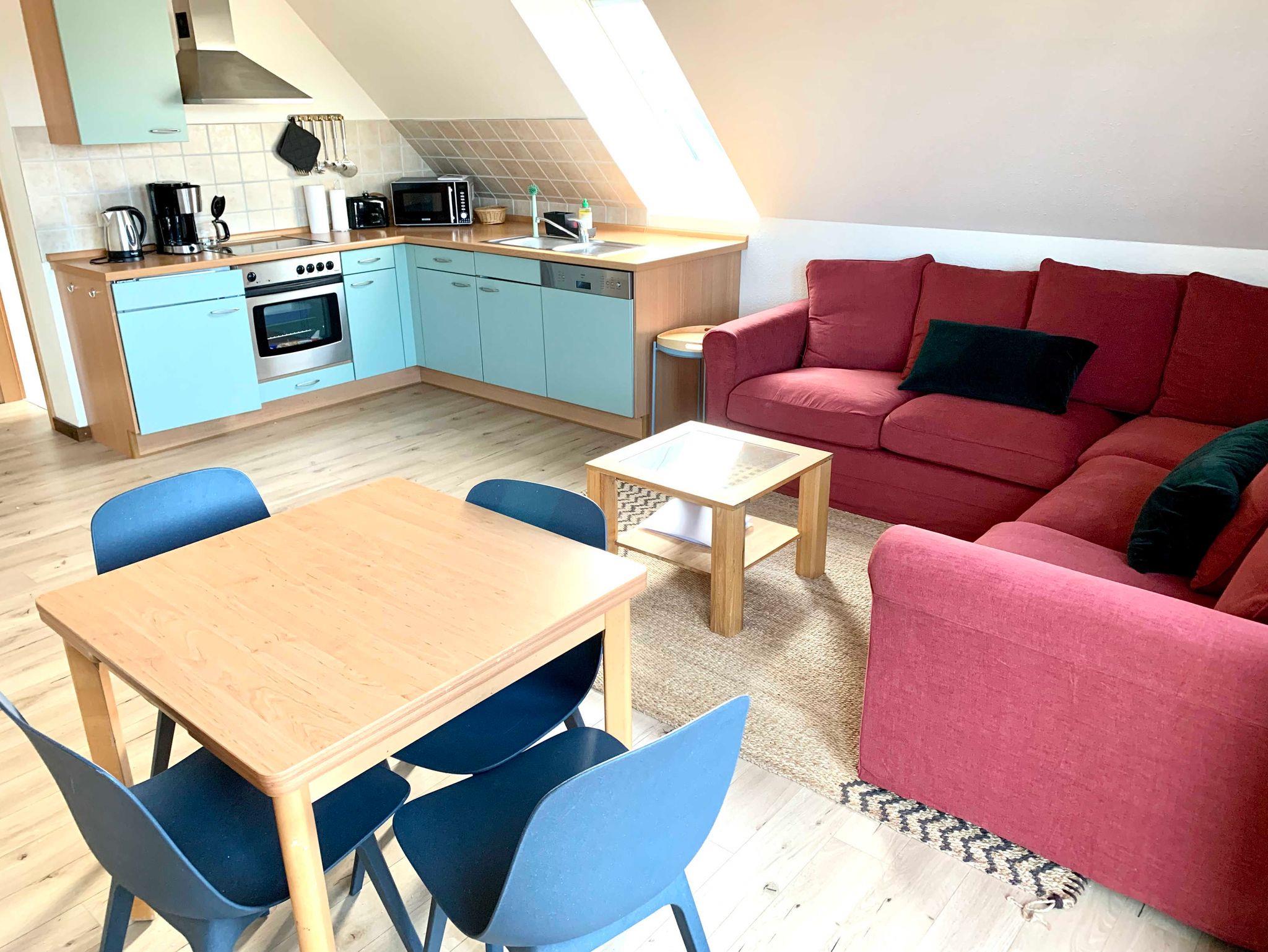 Die Ferienwohnung bietet mit einer großzügigen Küchenzeile, zwei getrennten Schlafzimmern, einem gemütlichen Wohn- und Essbereich sowie einem Duschbad Komfort für alle Lebensbereiche.