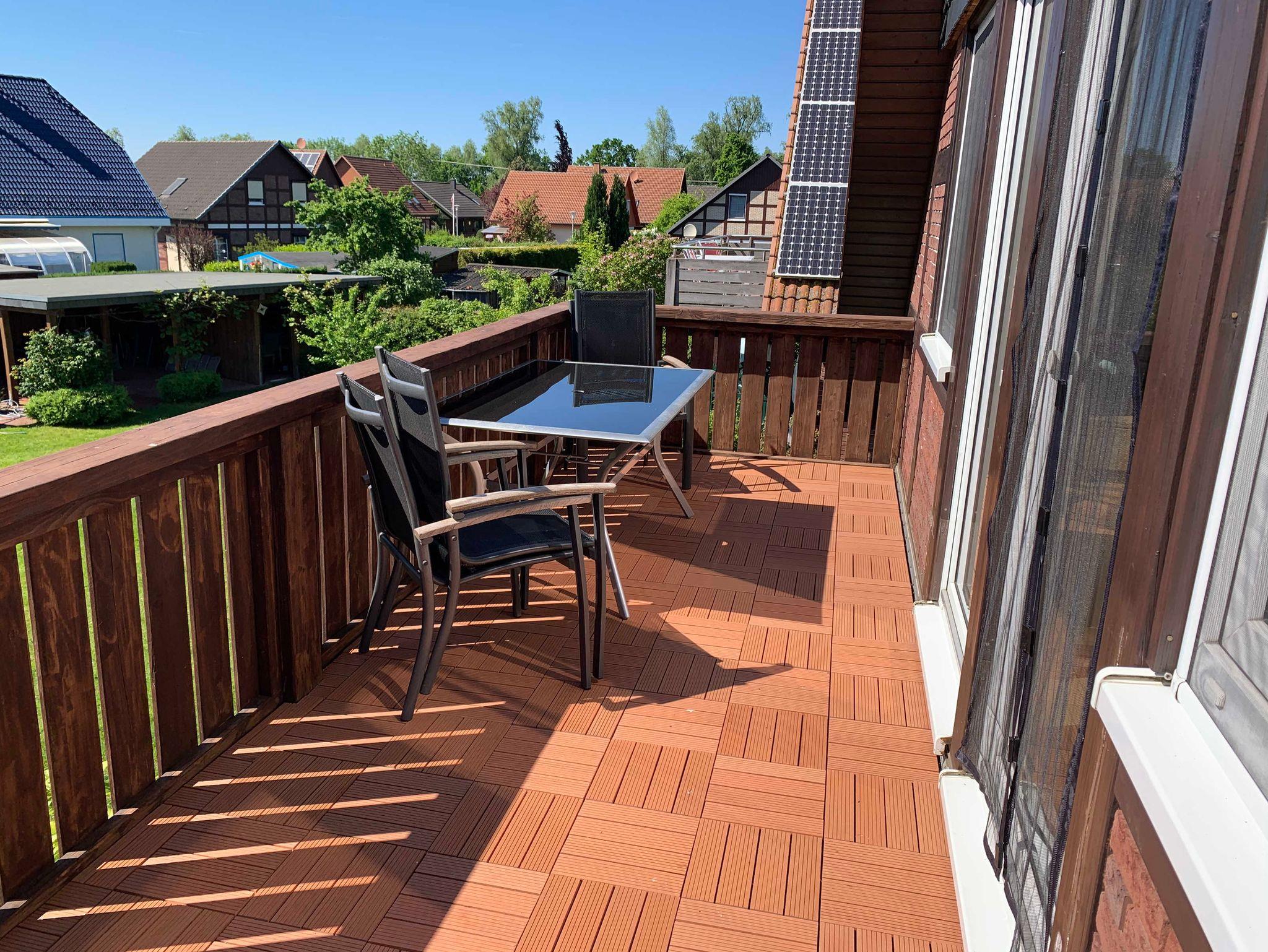 Zudem verfügt die Ferienwohnung über einen 16 qm großen Balkon mit geräumiger Sitzgruppe und Sonnenschirm.