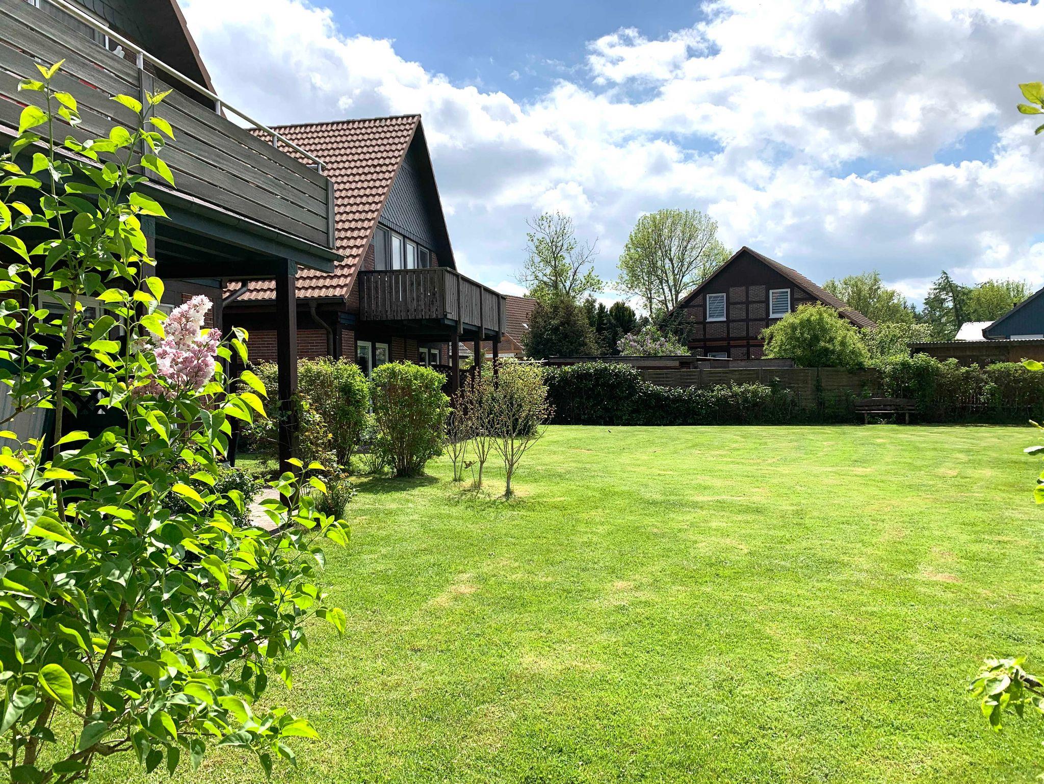 Der großzügig angelegte Garten mit jeweils zwei Grillplätzen und einem wetterfesten Unterstand, Sonnenliegen sowie einem abschließbaren Fahrradschuppen, steht allen Gästen zur Verfügung.