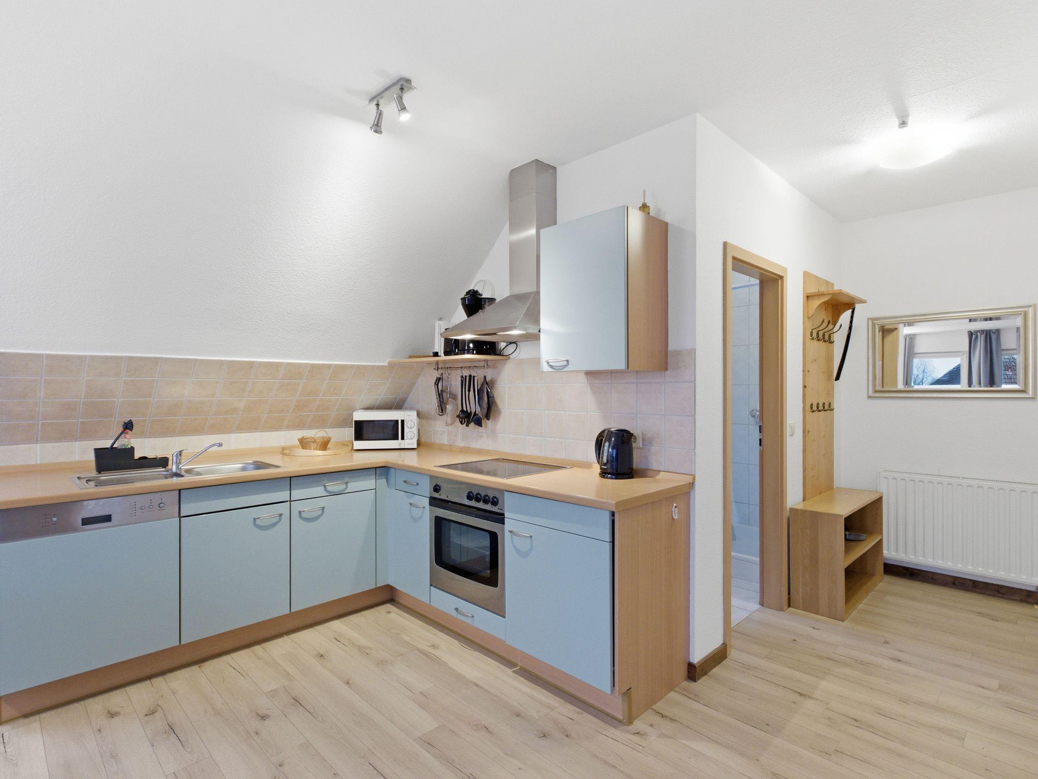 Die Ferienwohnung bietet mit einer großzügigen Küchenzeile, zwei getrennten Schlafzimmern, einem gemütlichen Wohn- und Essbereich sowie einem Duschbad Komfort für alle Lebensbereiche.