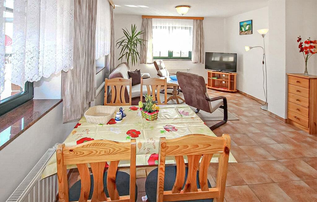 De moderne ferielejligheder i et separat stråtagsferiehus ligger smukt, kun ca 50 m fra Greifswalder Bodden på en velholdt gård. Restauranter, fiskemuligheder, bådudlejning, en legeplads og en ridestald ligger i umiddelbar nærhed, og den smukke Østersøstrand Lobbe ligger kun cirka 4 km væk. Cykeludlejning og levering af brød kan arrangeres gennem ejeren. En fjerde lejlighed i huset er beskrevet under DZV542. I boligbyggeriet, som også ligger i gården, har gæsterne desuden to lejligheder til hver to personer, som kan findes under DZV540 og DZV541. Alle ikke-ryger lejligheder er smagfuldt indrettede, centralt opvarmede og tilgængelige via en separat indgang. En terrasse med havemøbler og grillfaciliteter, en parkeringsplads, et cykelrum og gratis trådløs internetadgang er tilgængelig for alle gæster. En høj stol og en barneseng kan leveres efter anmodning. Rygning er tilladt udendørs. Den samlede pris inkluderer slutrengøring, sengelinned, håndklæder samt vand- og energiforbrug. Betales på stedet: turistskat. Kæledyr er ikke tilladt. Denne cirka 70 kvadratmeter store lejlighed for op til 5 personer (4 voksne + 1 baby) er i stueetagen og har en rummelig opholdsstue (polstrede møbler, fladskærms-tv, radio) med et åbent, fuldt udstyret køkken (spisestue) ). Bord til fire personer, el-komfur, ovn, køleskab, opvaskemaskine, mikroovn, diverse små køkkenmaskiner), to soveværelser (1 x dobbeltseng, 1 x to enkeltsenge), stor entre og badeværelse med brus/toilet. Barneseng og høj stol kan leveres efter anmodning. Der er udsigt over bugten fra stuen og et soveværelse. Alt Reddevitz er en tidligere fiskerby på Tysklands største ø, Rügen, og ligger på halvøen Mönchgut, på et cirka 5 km langt næs i biosfærereservatet Sydøst Rügen, direkte på Rügisches Bodden, en forlængelse af Greifswalder Bodden. Bademuligheder findes allerede her på den flade naturstrand eller på den fine sandede Østersøstrand i Lobbe Stedet byder på de bedste betingelser for cykling, vandreture, fiskeri (fiskekort fås direkte i landsbyen), ridning og svømning og er kendt for sin lille kagefabrik i cafeen “Moccavino”. De velkendte Østersøferiesteder Baabe, Sellin og Binz ligger omkring 6 km, 8 km og 18 km væk.