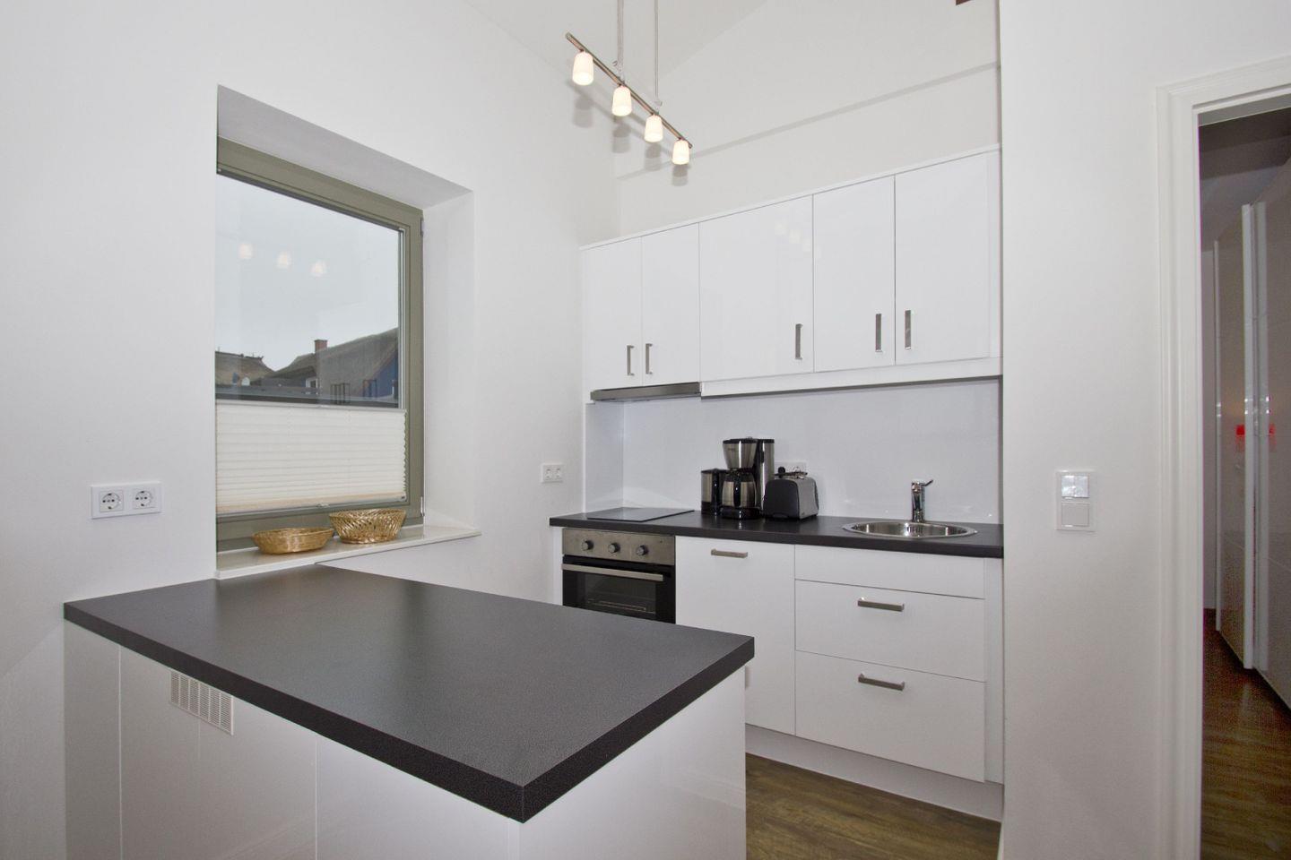 KÜCHE// offene Küche, 2-Platten Ceranherd, Spülmaschine, Kühlschrank mit Gefrierfach, Backofen, Toaster, Wasserkocher, Kaffeemaschine, reichlich Besteck, Geschirr und Küchenutensilien ++