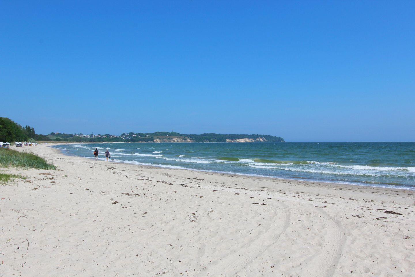 Der naturbelassene Sandstrand vor dem Resort erstreckt sich etwa 10 Kilometer von Göhren bis nach Thiessow. Die Anlage liegt ungefähr in der Mitte dieses Küstenabschnitts. Ein schmaler, bewaldeter Dünenstreifen trennt das Resort vom feinsandigen Badestrand, der über einen breiten Fußweg bequem erreichbar ist.
