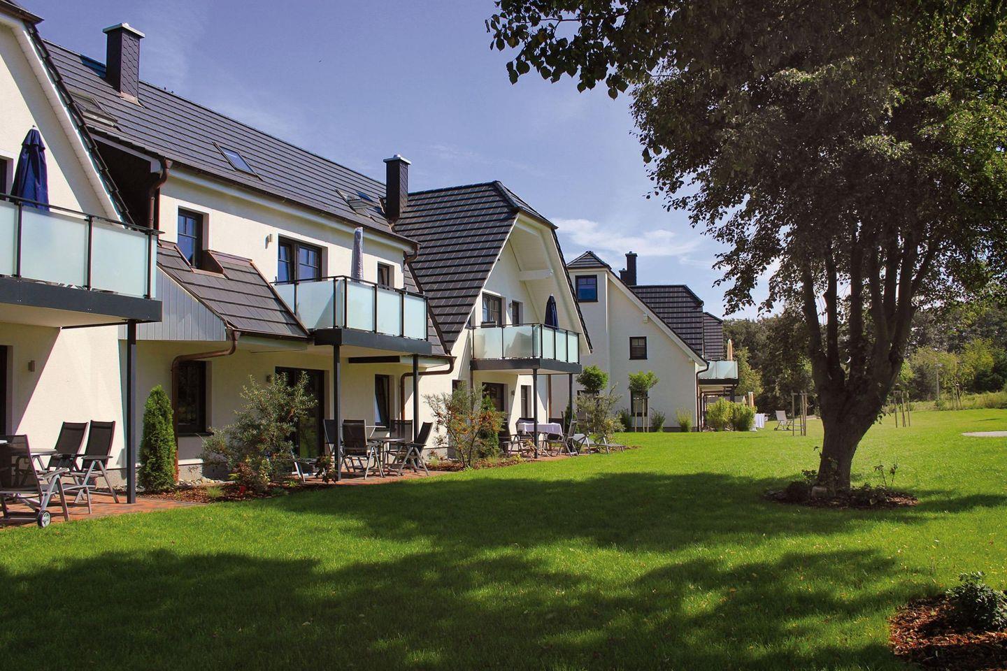 Das Strandresort Rex Rugia befindet sich in Lobbe auf einem rund 85.000 m² großen, parkähnlich gestalteten Areal mit weitläufigen Grünflächen. Charakteristisch für die Anlage sind die charmanten, reetgedeckten Villen im norddeutschen Stil. In den Häusern erwarten Sie modern und komfortabel ausgestattete Appartements mit zwei, drei oder vier Zimmern – jeweils ergänzt durch einen Balkon oder eine Terrasse.