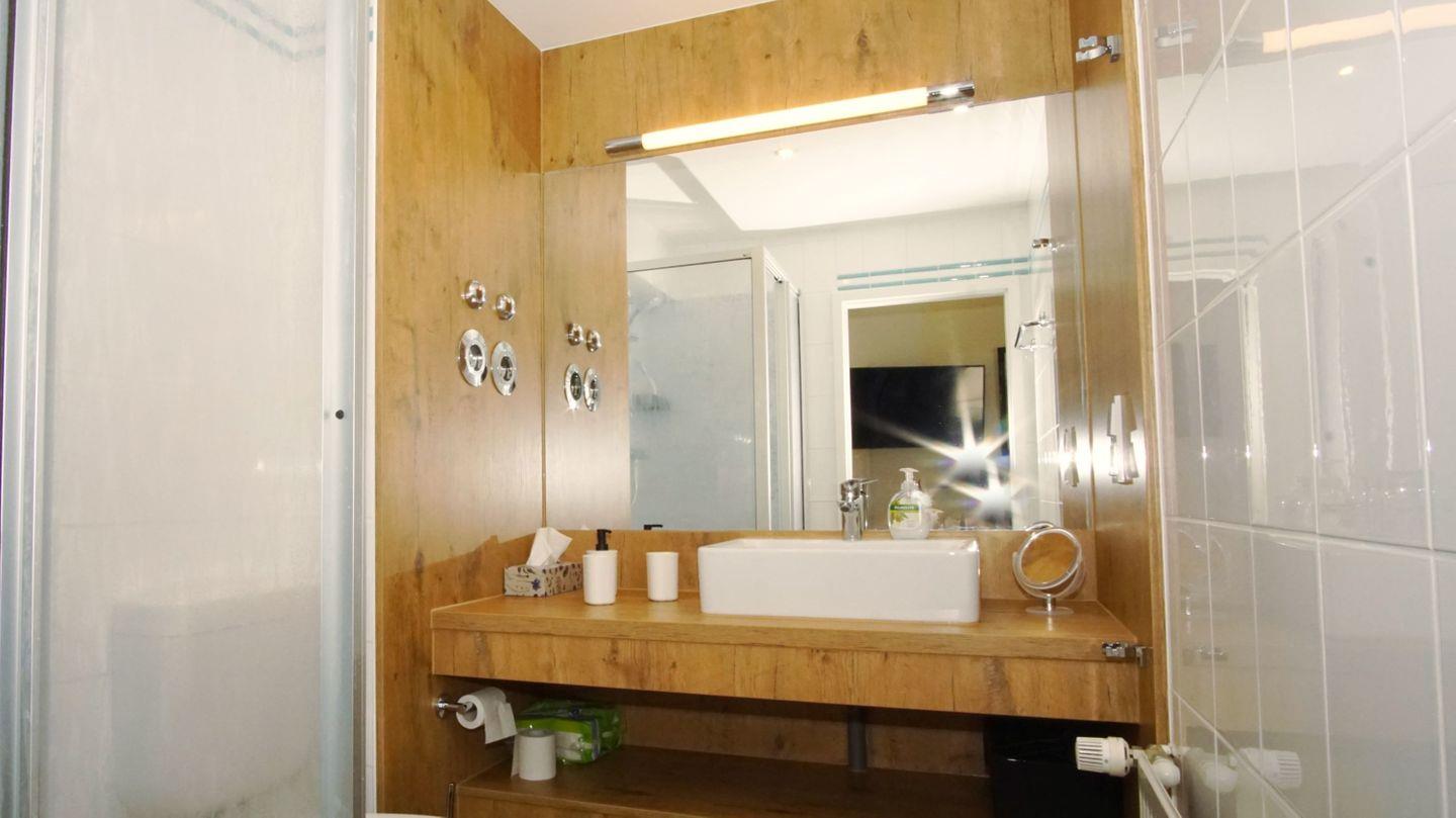 BAD // Badezimmer mit Dusche, Waschtisch, WC und Spiegel ++