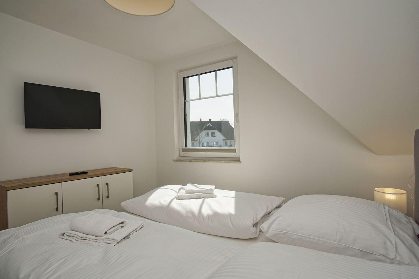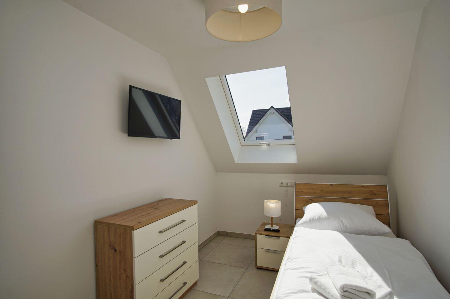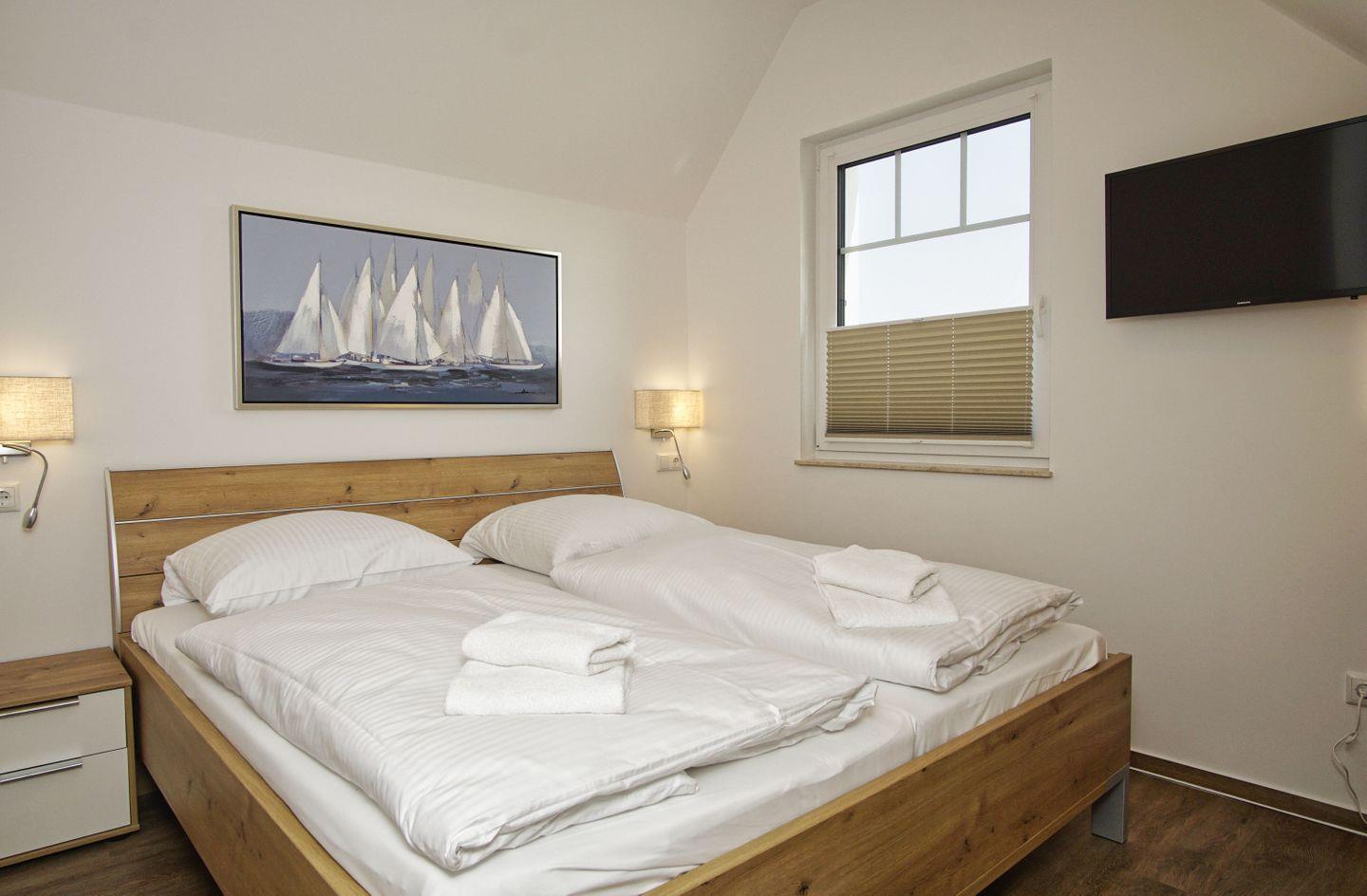 SCHLAFEN // Zwei Schlafzimmer jeweils mit bequemem Doppelbett und Smart-TV, ein Schlafzimmer mit einem Einzelbett, Schreibtisch und Smart-TV,