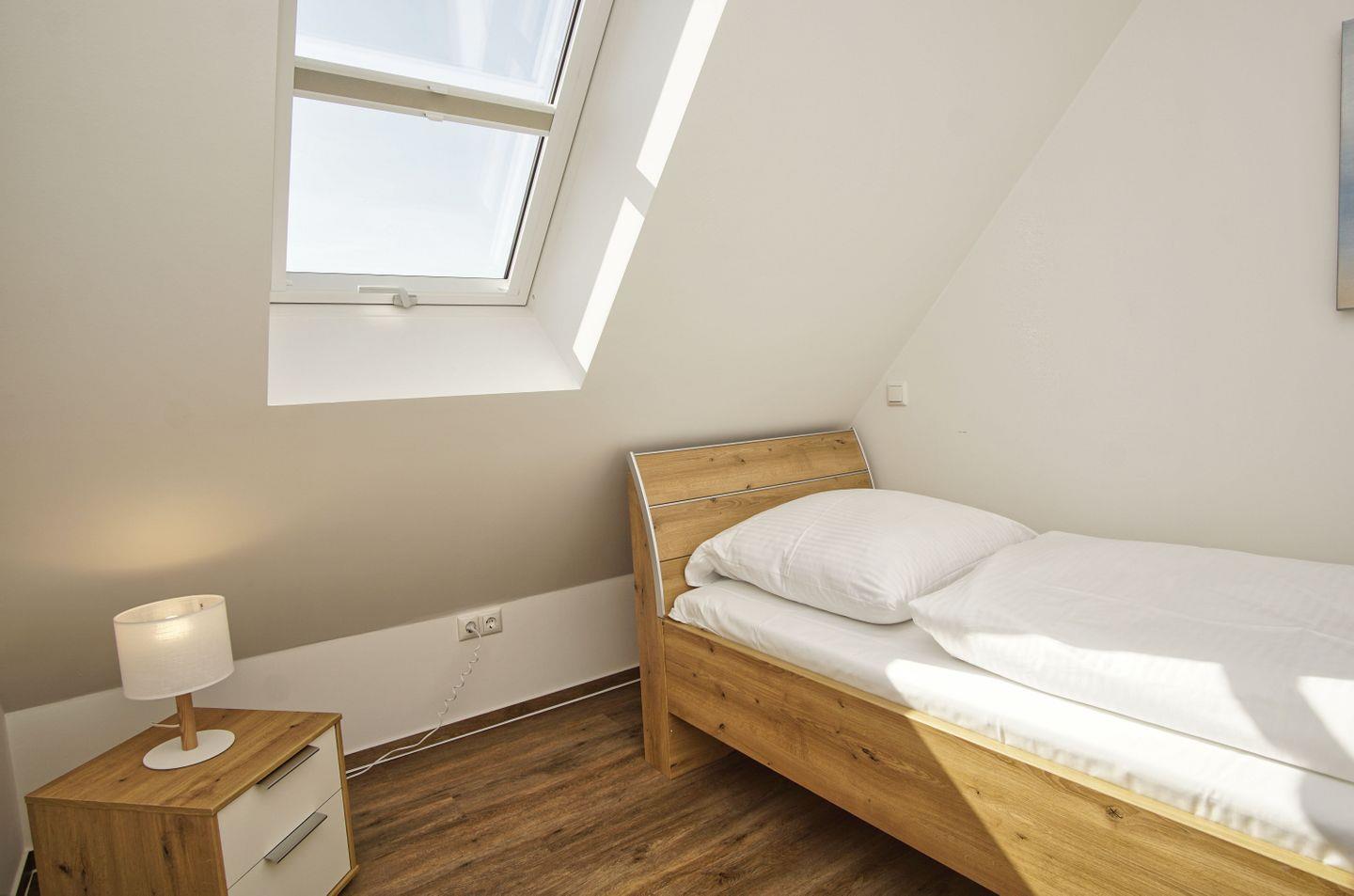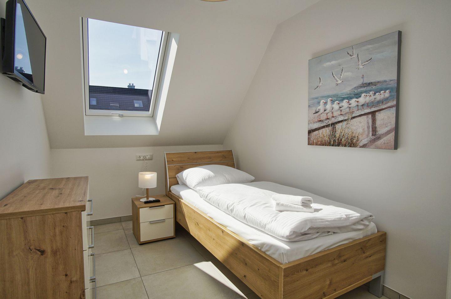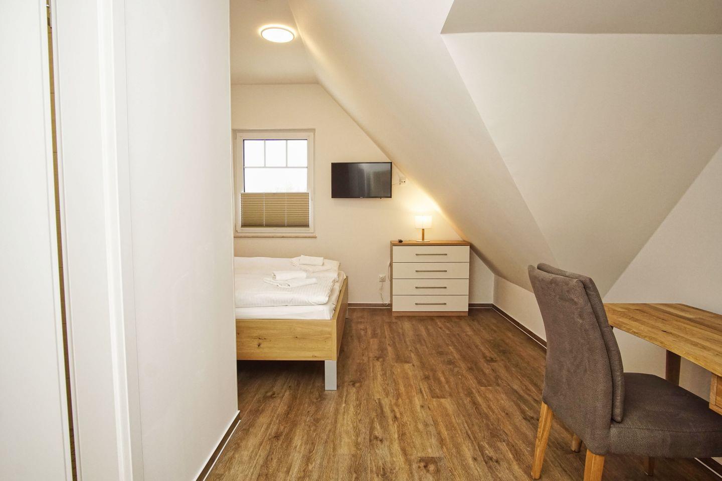 SCHLAFEN // Zwei Schlafzimmer jeweils mit bequemem Doppelbett und Smart-TV, ein Schlafzimmer mit einem Einzelbett, Schreibtisch und Smart-TV,