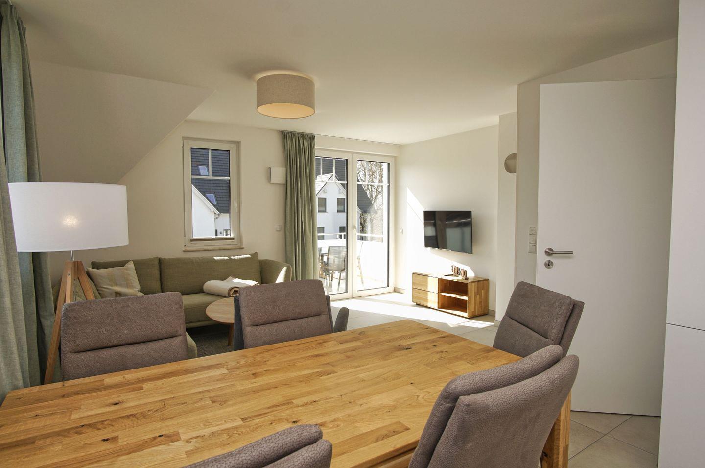 WOHNEN // Wohnraum mit Essbereich, Sitzgarnitur mit bequemer Couch, Flachbild-TV (Smart-TV), Internet (W-LAN) ++