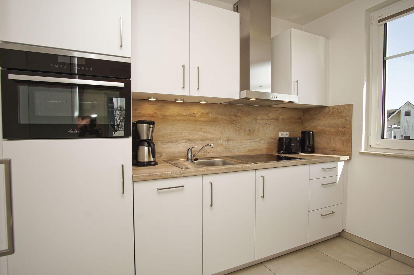 KÜCHE // Küchenzeile, 4-Platten Ceranfeld, Spülmaschine, Kühlschrank mit Gefrierfach, Backofen, Toaster, Wasserkocher, Kaffeemaschine, reichlich Besteck, Geschirr und Küchenutensilien ++
