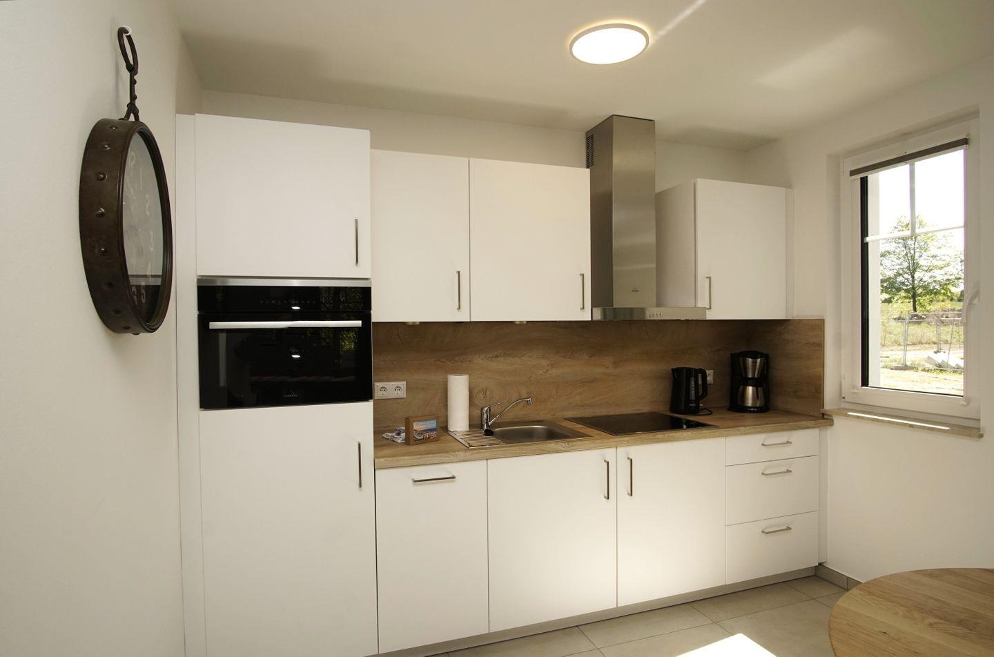 KÜCHE // Küchenzeile, 4-Platten Ceranfeld, Spülmaschine, Kühlschrank mit Gefrierfach, Backofen, Toaster, Wasserkocher, Kaffeemaschine, reichlich Besteck, Geschirr und Küchenutensilien ++
