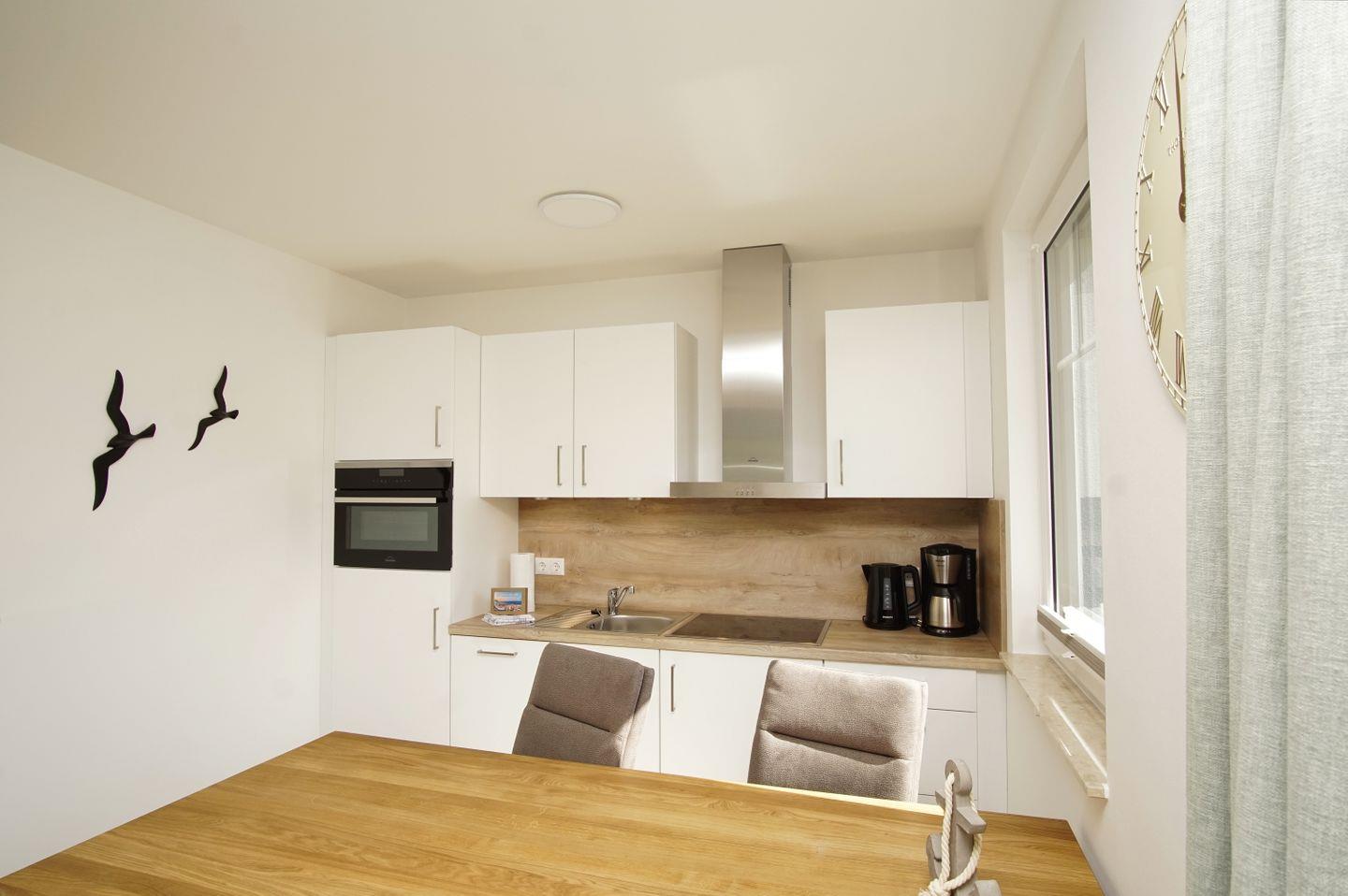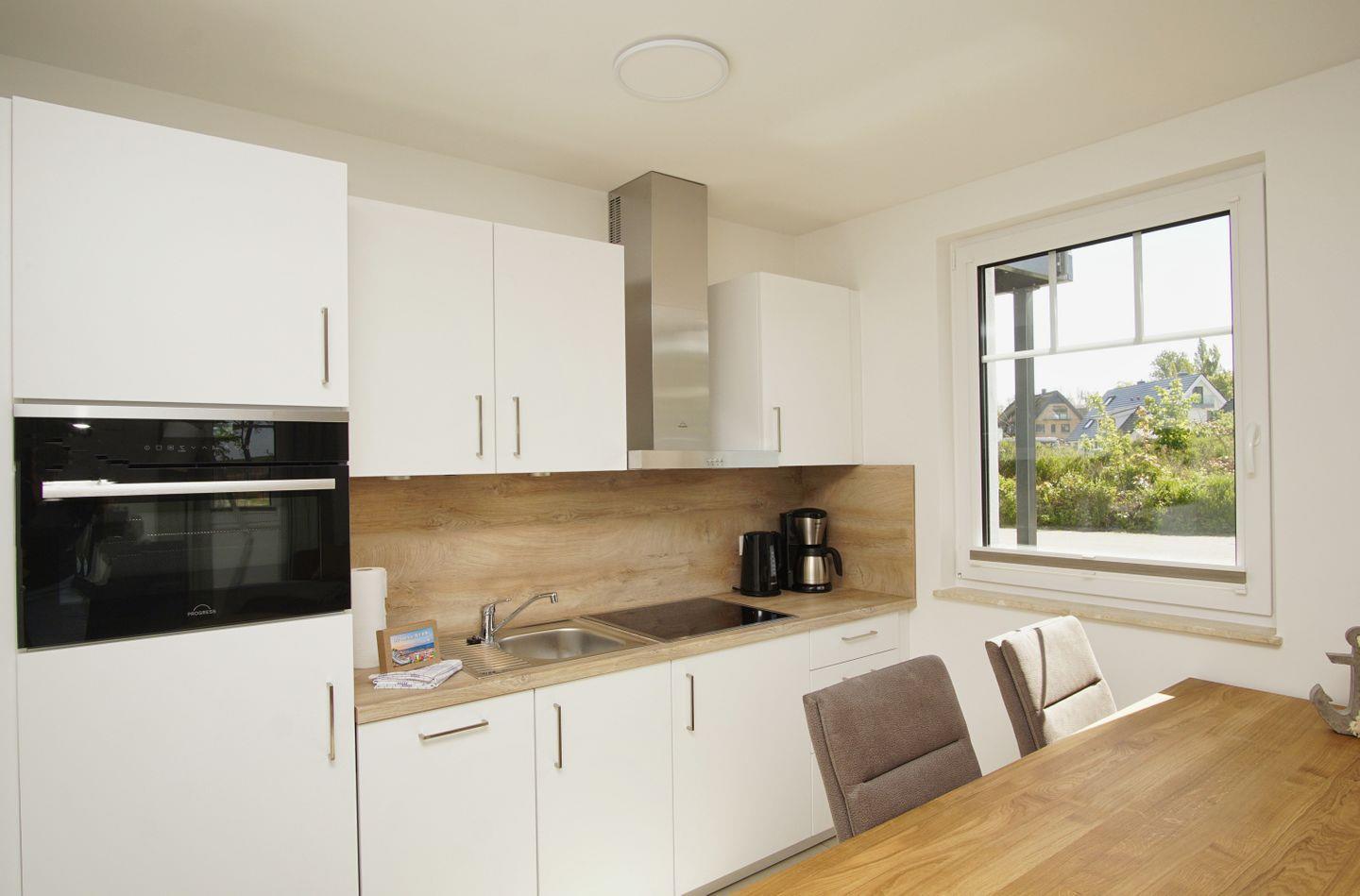 KÜCHE // Küchenzeile, 4-Platten Ceranfeld, Spülmaschine, Kühlschrank mit Gefrierfach, Backofen, Toaster, Wasserkocher, Kaffeemaschine, reichlich Besteck, Geschirr und Küchenutensilien ++