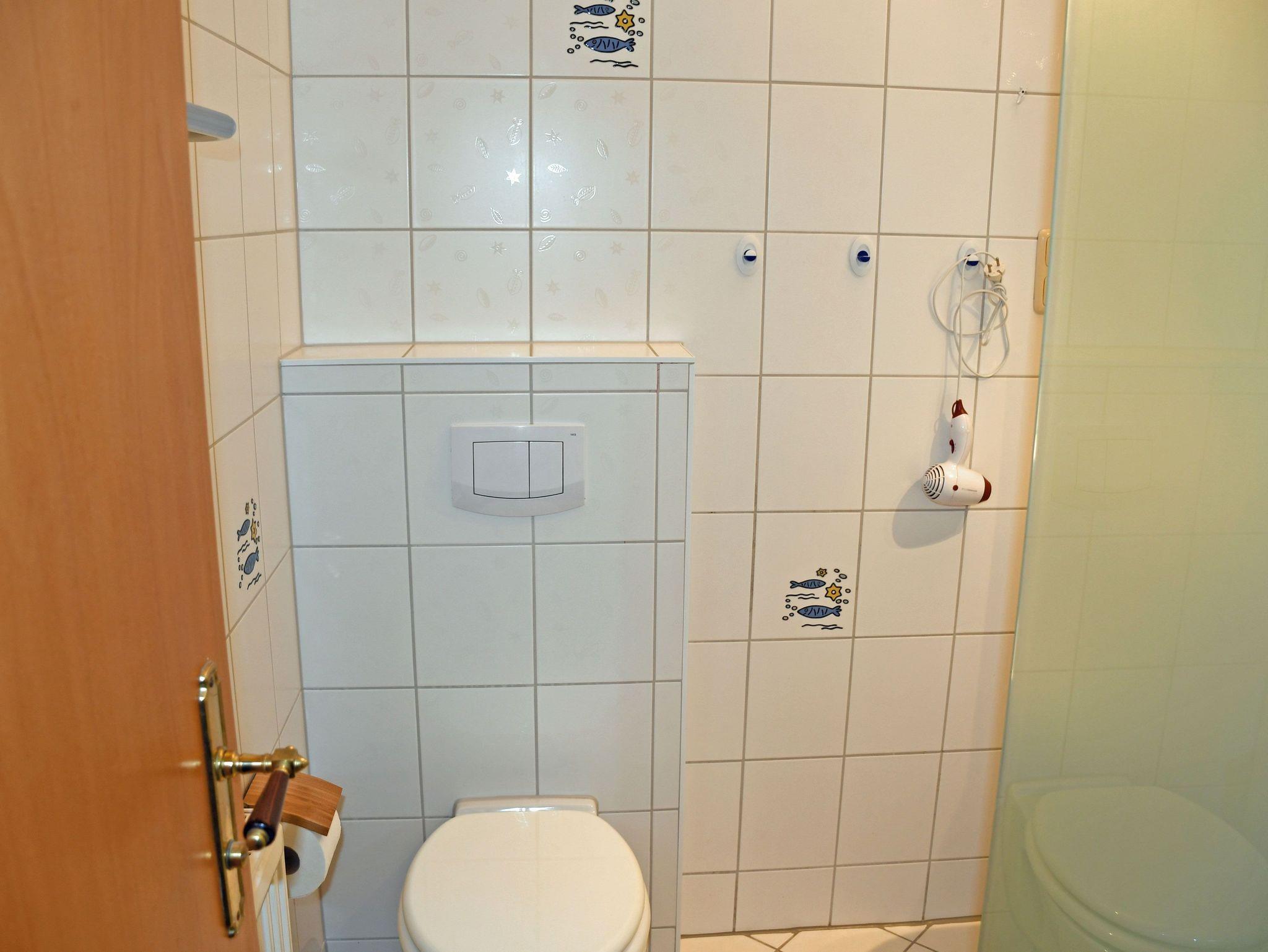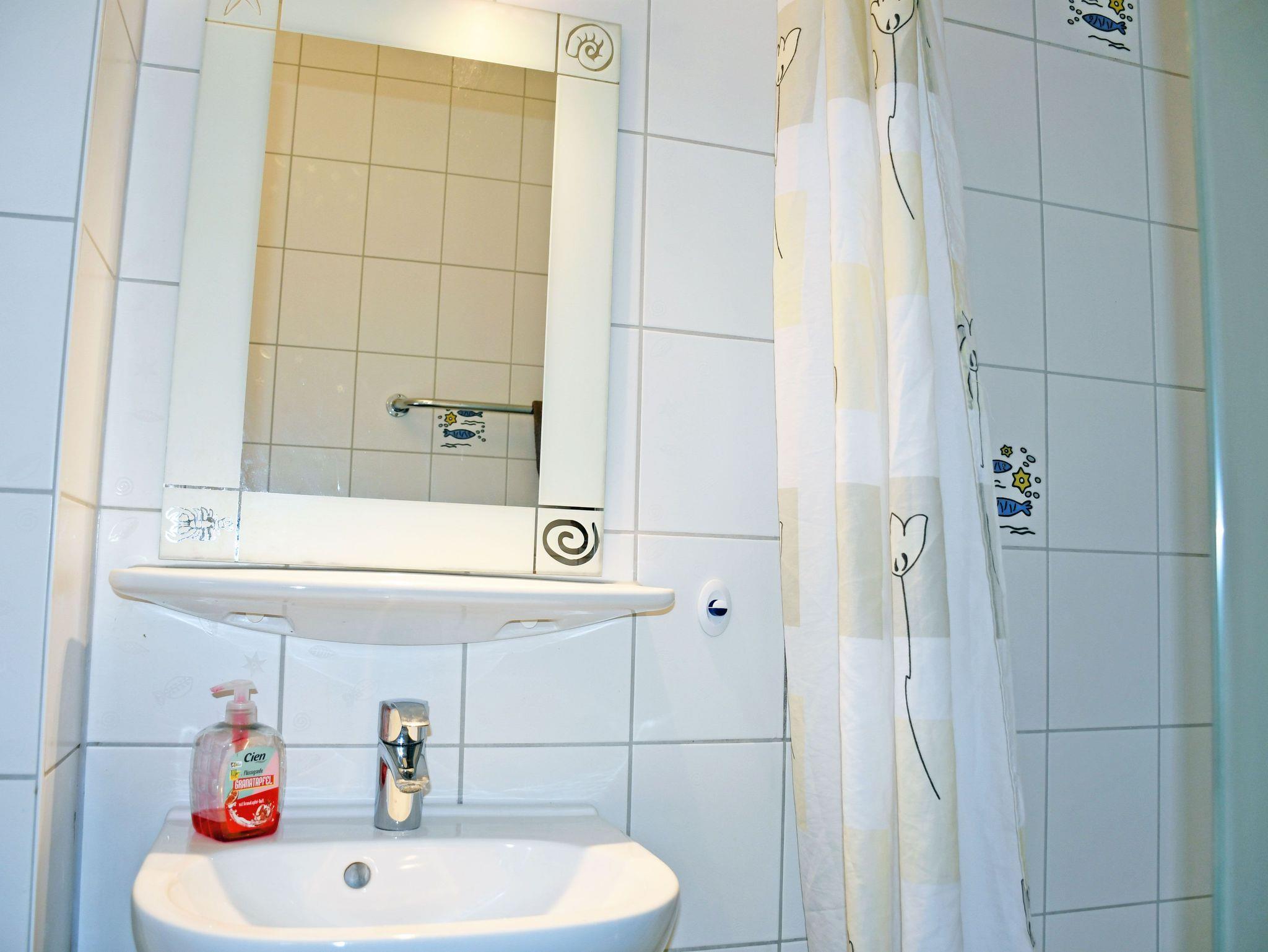 Das Bad ist mit Dusche, WC, Fön und Waschtisch ausgestattet.