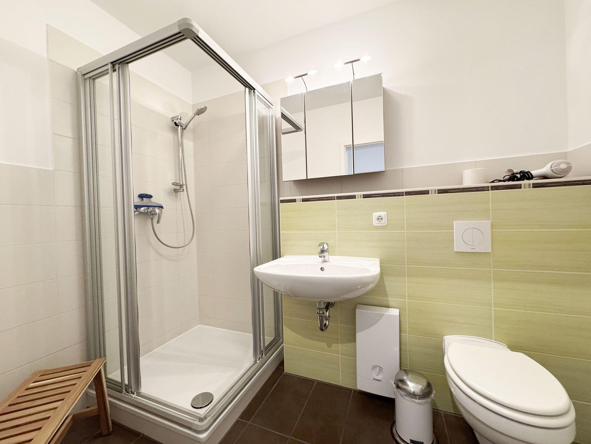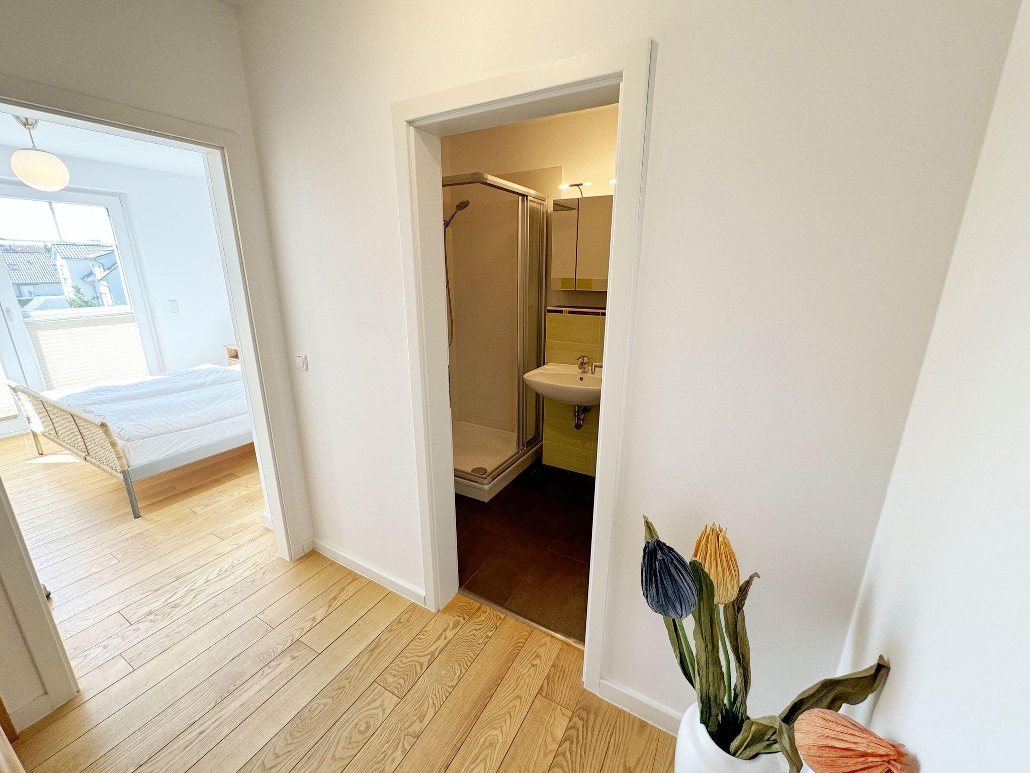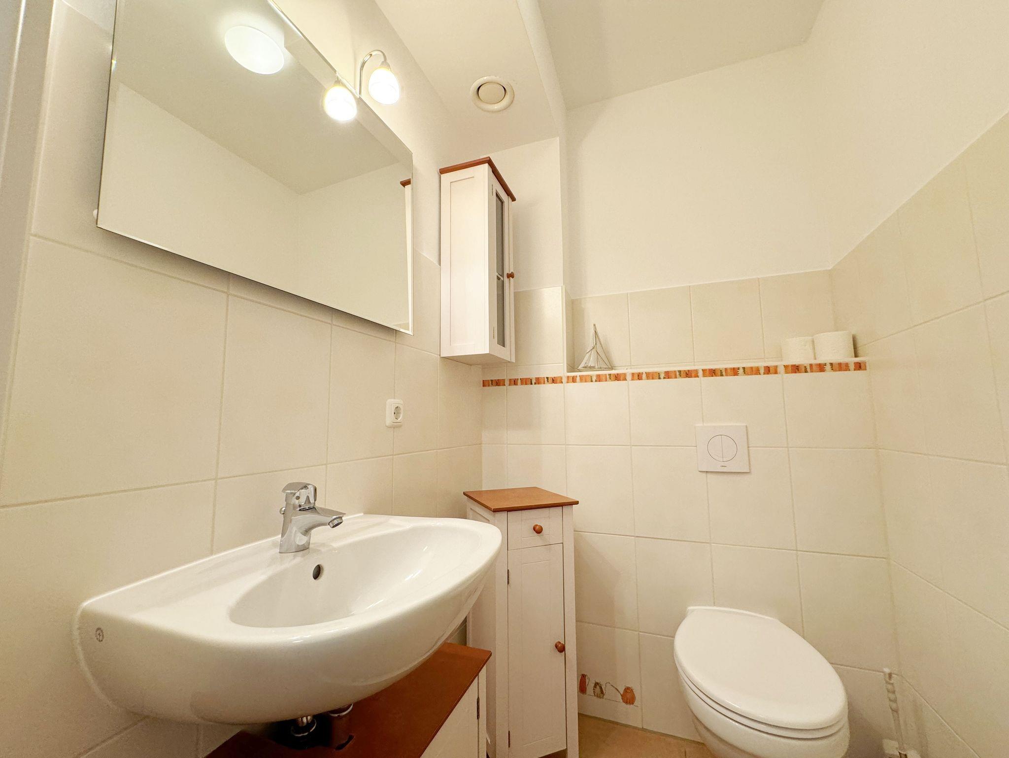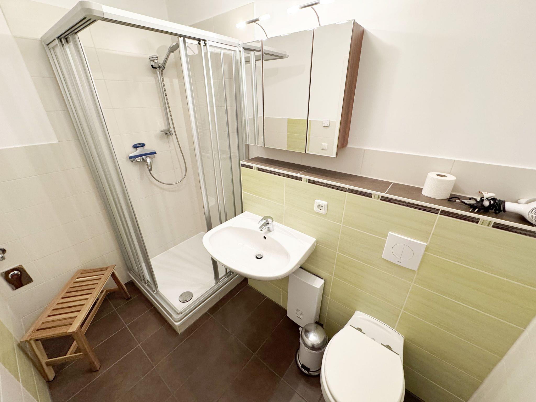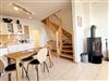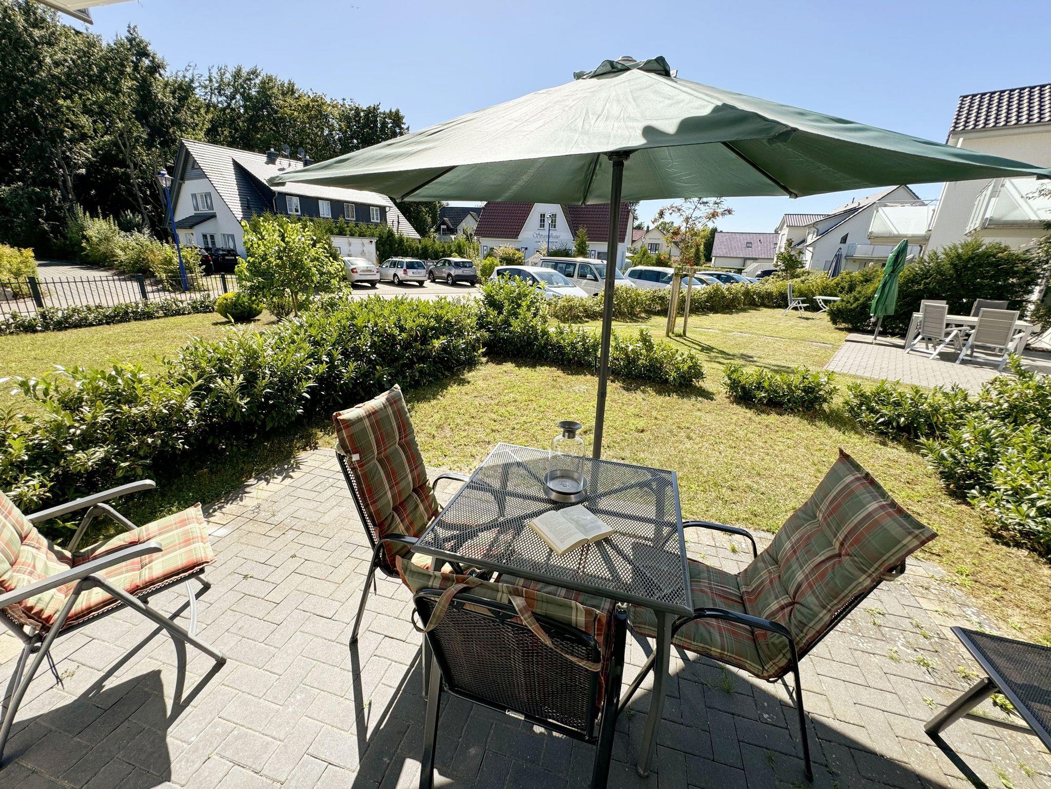Im Haus „Möwe“ befindet sich die helle und gemütliche Zweizimmerwohnung (Nichtraucher) im Erdgeschoss und ist vom Privatparkplatz bequem zu erreichen. Die Maisonette Wohnung Nr. 02 verfügt auf 56 qm über allen Komfort, den man von zuhause gewöhnt ist und ist für 2 bis 4 Personen ausgerichtet. Von einem kleinen Flur mit Garderobe gelangt man in den hellen unteren Bereich der Wohnung. Sogleich fällt der Blick auf die geräumige Terrasse (westliche Ausrichtung), die mit einer Sitzgruppe + Sonnenliege für vier Personen und einem Sonnenschirm zum ruhigen Verweilen einlädt. Die gesamte untere Etage ist gefliest und mit einer Fußbodenheizung ausgestattet. Der untere Wohnbereich verfügt über eine bequeme Couch (1,50m x 2,00m), die auch als zusätzliche Schlafgelegenheit genutzt werden kann. Ein bequemer Sessel mit Leselampe vervollständigt das Ensemble. Kleine Beistelltische bieten immer eine Ablage, sodass man bei einem Kaffee oder einem Glas Wein eine entspannte Unterhaltung führen kann. Für die kälteren Tage ist ein Kaminofen vorhanden, der durch ein Sichtfeld das Kaminfeuer betrachten lässt. Je nach Bedarf kann man eine Stereoanlage nutzen, die neben Radio und CD-Laufwerk auch die Möglichkeit bietet, die eigene Musik vom iPod oder einem USB-Stick abzuspielen. Mit dem TV-Flat Screen mit DVD-Player kann man ruhig mal einen kleinen Filmabend gestalten. Um die Sache abzurunden, befindet sich in der Holzkommode eine reichhaltige DVD-Sammlung mit bekannten Filmen, die für Jung und Alt sicherlich etwas zu bieten hat. Auch im Urlaub brauchen Sie auf einen Internetanschluss (WLAN) nicht verzichten. Dieser ist für Sie inklusive. Die Küchenzeile lässt keine Wünsche offen. Neben einem Kühlschrank mit Gefrierfach und einem Kochherd mit Ceranfeld und Backofen sind alle Dinge vorhanden (Kaffeemaschine, Wasserkocher, Toaster, Mikrowelle) die man zur Zubereitung eines leckeren Mahls nach dem Strandaufenthalt benötigt. Damit man sich nicht dem Leid des Abwaschens im Urlaub hingeben muss, kann man den eingebauten Geschirrspüler nutzen, der für einen die Arbeit leise und unaufdringlich erledigt. Der Essbereich ist mit einem Tisch ausgestattet, an dem bis zu vier Personen Platz finden. Über eine Holztreppe gelangt man in die erste Etage. Dort befindet sich das innenliegende Bad mit Dusche und WC, Spiegelschrank und Fön. Um auf den Balkon zu kommen, durchschreitet man das Schlafzimmer. Der Raum ist wie das gesamte Stockwerk mit einem hellen Holzfußboden ausgelegt und eine Fußbodenheizung sorgt zu jeder Jahreszeit für ein angenehmes Klima. Für die persönlichen Sachen steht ein Kleiderschrank zur Verfügung. Jeweils an den Seiten des großen Doppelbettes (einzelne Matratzen á 0,90 m) für zwei Personen befinden sich Nachttischkonsolen mit Nachttischlampen. Sollten Sie ihre Urlaubslektüre vergessen haben, sind einige Angebote in der Wohnung zu finden. Durch die elektrischen Rollos, die sich im unteren und im oberen Stockwerk befinden, genügt ein Knopfdruck, um eine ungestörte Nacht zu verbringen, bzw. am Morgen die Sonne ins Zimmer zu lassen. Fahrräder kann man in einem abschließbaren Schuppen Nr.02, der sich in unmittelbarer Nähe des Hauses befindet, unterstellen. Ein PKW-Stellplatz Nr. 02 befindet sich direkt am Haus. Gegen eine Gebühr haben wir keine Probleme mit 1 Haustier, wenn dies gut erzogen ist! Die Erstausstattung eines Wäschepaketes (komplette Bettwäsche, 1 Duschhandtuch, 2 kleine Handtücher) können Sie bis 14 Tage vor Anreise gegen einen Aufpreis dazu buchen oder durch eigene ergänzen. Ab 2 gebuchten Paketen erhalten Sie einmalig 1 Geschirrhandtuch und 1 Duschvorleger hinzu.