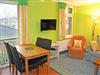 Im kombinierten Wohn-/Küchenbereich befinden sich ein Schlafsofa, welches ausgeklappt Platz für 2 Erwachsene bietet, ein Tisch und ein TV-Gerät. Hier steht auch ein Esstisch mit 4 Stühlen.