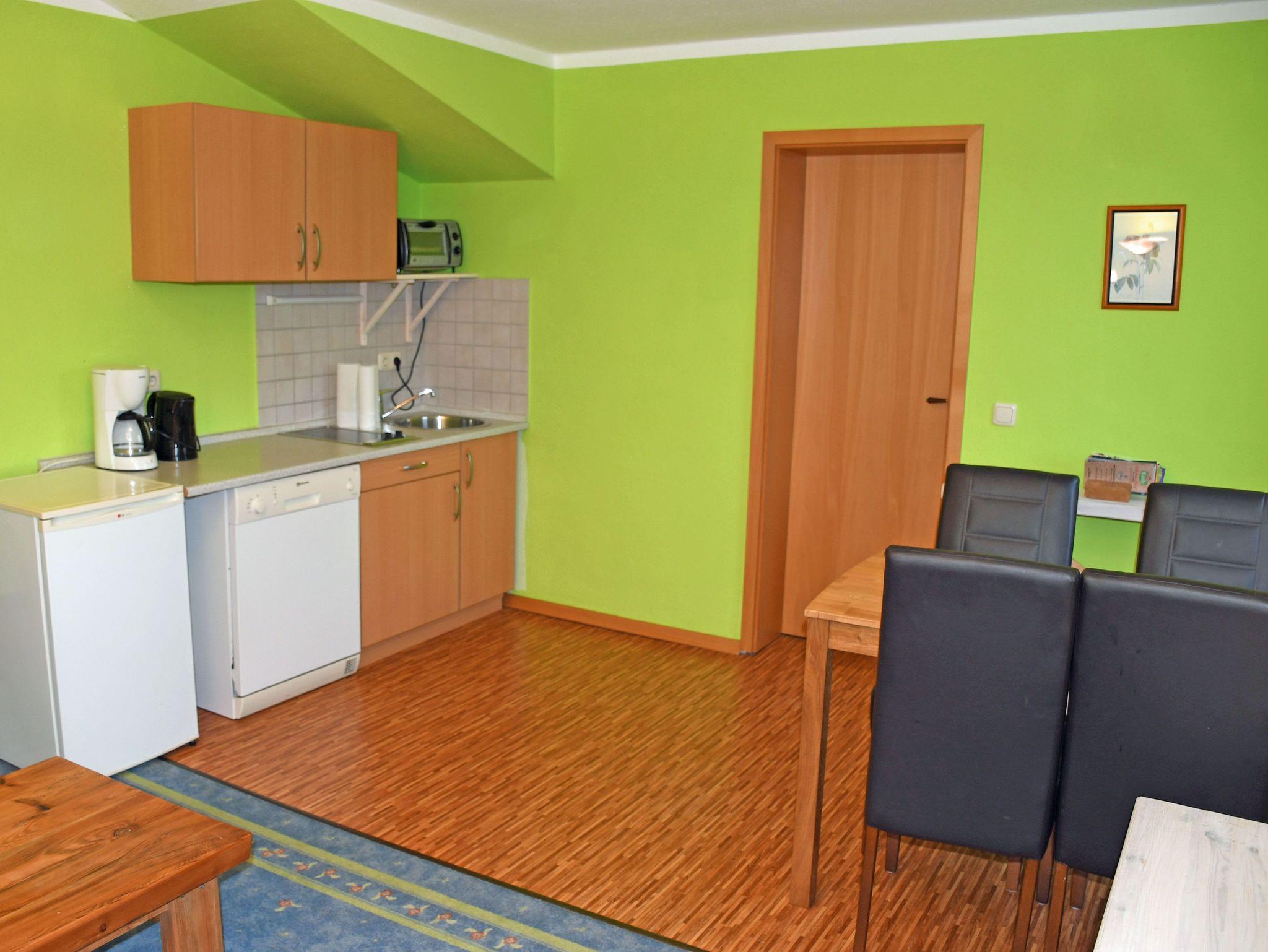 Dieses Ferienappartement verfügt über den Hintereingang und liegt im Obergeschoss. Sie ist ca. 35 qm groß, bietet Platz für maximal 4 Erwachsene und wurde modern eingerichtet. Es handelt sich um ein 2-Raum-Appartement.
