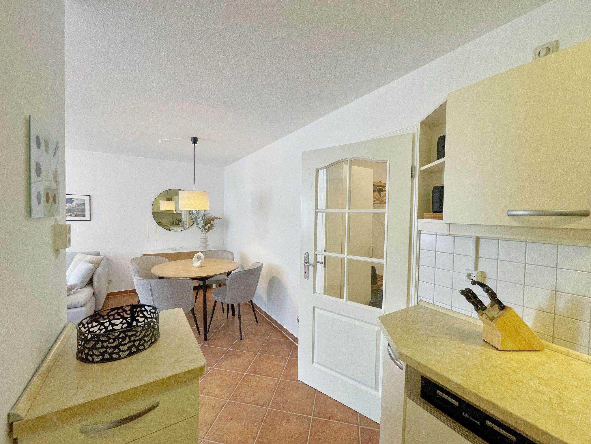 Herzlich Willkommen in Ihrer Ferienwohnung Ostseeperle direkt am Meer. Sie wohnen in einer 2-Zimmerwohnung (Nichtraucher) mit ca. 45 qm im 1. Stockwerk, welche exklusiv für 2-3 Personen ausgestattet ist. Neben der offenen eingerichteten Küchenzeile mit einem Cerankochfeld, einem Backofen, einer Dunstabzugshaube, einer Geschirrspülmaschine, einer Mikrowelle, einem Kühlschrank mit Gefrierfach, einen Wasserkocher, einen Toaster, einer Kaffeemaschine und anderen praktischen Helfern erwartet Sie ein Essplatz mit Blick durch lichtdurchflutete Fenster, welche zum Wohnbereich über gehen. Zur elektronischen Ausstattung gehört ein Flachbild-TV mit Satellitenanschluss, ein kostenloser WLAN-Zugang und ein DAB?Radio sowie ein DVD-Player. Das alles können Sie auf Ihrer modernen Couch mit Ottomane (1,40m x 2,00m), ein Sessel, eine Stehlampe genießen. Ein weiteres Highlight ist der nach Südwesten ausgerichtete Balkon mit bequemen Balkonmöbeln und Sonnenschirm, welchen Sie vom Wohnbereich erreichen. Im separaten Schlafzimmer mit Schwebetürenschrank und einem komfortablen Doppelbett (1,60m x 2,00m) können Sie entspannt Ihrem nächsten Urlaubstag an der Ostsee entgegen träumen. Für eine ruhige Nacht im Wohn- und Schlafbereich sorgen Insektenschutzgitter sowie Plissees. Im innenliegenden Badezimmer finden Sie eine Dusche mit niedrigem Einstieg, einem Waschplatz, einen Kosmetikspiegel, einen Handtuchtrockner sowie einem Fön. Haustiere sind nicht erlaubt. Ihr PKW-Stellplatz (Nr.10) befindet sich direkt am Objekt. Ihre mitgebrachten Fahrräder können Sie im Schuppen (Nr.10) welcher direkt zur Wohnung gehört sicher einschließen. Die Erstausstattung eines Wäschepaketes (komplette Bettwäsche, 1 Duschhandtuch, 2 kleine Handtücher) können Sie bis 14 Tage vor Anreise gegen einen Aufpreis dazu buchen oder durch eigene ergänzen. Ab 2 gebuchten Paketen erhalten Sie einmalig 1 Geschirrhandtuch und 1 Duschvorleger hinzu.