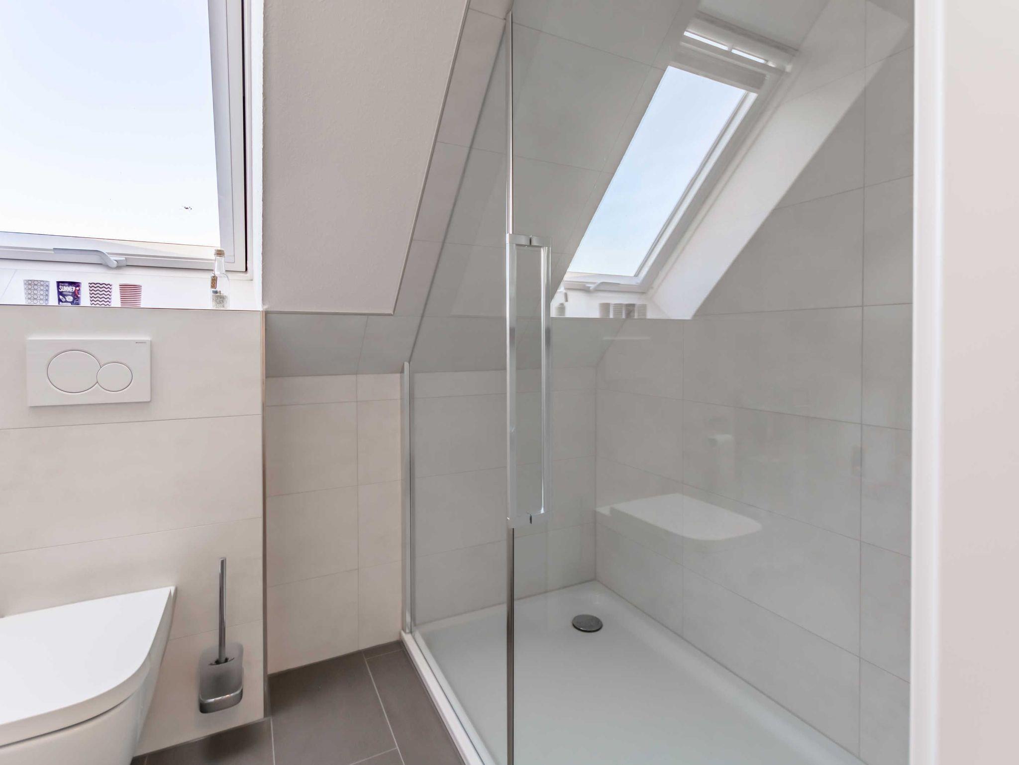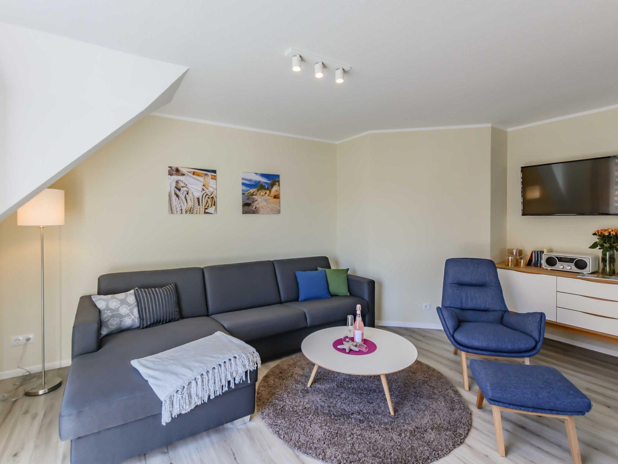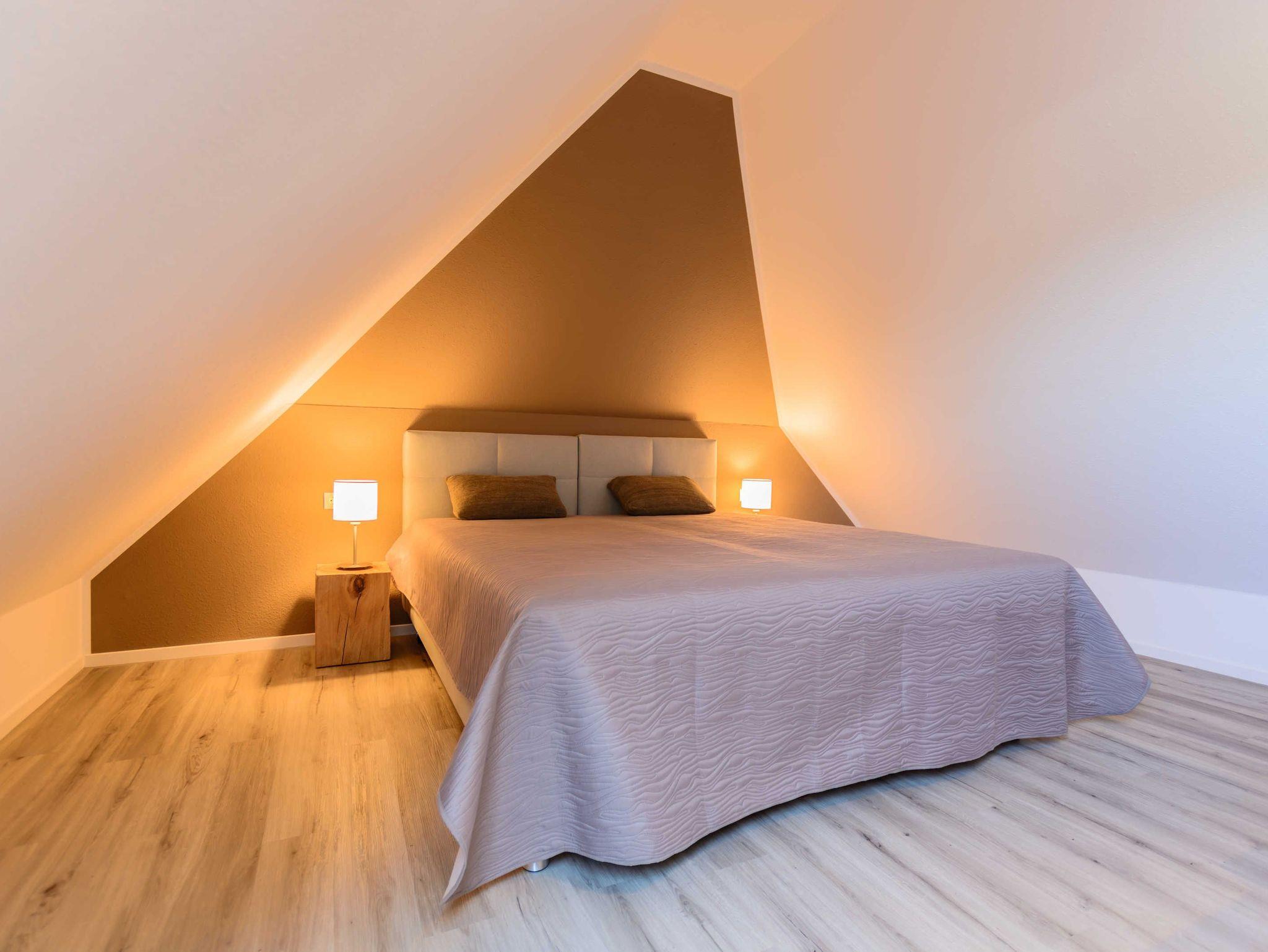Die Nichtraucherferienwohnung befindet sich in der 1. Etage und erstreckt sich über 2 Etagen. Mit Ihren ca. 75 qm können sich max. 6 Erwachsene wohlfühlen. Der großzügige und helle Wohn- Essbereich ist mit einer modernen Küchenzeile ausgestattet. Mit einem Kühlschrank mit Eisfach, Geschirrspüler, Cerankochfeld, Backofen, Mikrowelle, Wasserkocher, Kaffeemaschine, Toaster, Mixer, Waffeleisen können Sie Ihre gemütlichen Kochabende ganz individuell gestalten. Ein passender Essbereich rundet die Gemütlichkeit ab. Im angrenzenden Wohnbereich trägt eine bequeme Couch (Aufbettungsmöglichkeit für 5./6.Person, 1,50m x 1,95m) mit Couchtisch, ein Lesesessel mit Hocker sowie ein TV-Board zu Ihrer Entspannung bei. Die technische Ausstattung umfasst einen Smart-TV, ein DAB-Bluetooth-Radio sowie einen WLAN-Anschluss. Vom Wohnbereich gelangen Sie auf Ihren bestuhlten Balkon (Süd) mit Sonnenschirm, von wo Sie aus Ihren Tag entspannt bei einem Glas Wein ausklingen lassen können. Hell und freundlich eingerichtet erwartet Sie ein gemütliches Schlafzimmer auf gleicher Ebene, mit einem komfortablen Boxspring-Bett (1,80m x 2,00m) mit 5 Zonen Tonnen-Taschenfederkern-Matratzen, Nachttischablagen, einen großzügigen Kleiderschrank sowie ein Smart-TV. Das 2. Schlafzimmer erreichen Sie durch eine Treppe, welche vom Wohnbereich aus startet. Hier befindet sich ebenfalls ein bequemes Boxspringbett (1,80m x 2,00m) mit Nachttischablagen sowie einer kleinen Leseecke oder Relax-Ecke. Beide Schlafbereiche verfügen zudem über Vorhänge/Rollos, die nahezu lichtundurchlässig sind und einen guten Sicht- und Sonnenschutz bieten. Für einen angenehmen Schlaf sorgen zusätzlich Insektenschutzgitter im Wohn- & Schlafbereich. Das Tageslicht-Badezimmer ist mit einer ebenerdigen Dusche, einem WC, einen Handtuchtrockner, einem Fön sowie einem Waschtisch ausgestattet. In der Wohnung finden Sie zusätzlich ein Staubsauger, ein Besen mit Kehrset, ein Wäscheständer sowie ein Wäschekorb. Im Nachbarhaus C können Sie eine Waschmaschine sowie einen Trockner gegen Gebühr nutzen. Hier stehen auch ein Bügelbrett und ein Bügeleisen zur Verfügung. Haustiere sind nicht erlaubt. Das Grillen auf dem ausgewiesenen Gemeinschaftsplatz lädt zu gemütlichen Abenden ein. Zur Entspannung lädt eine münzbetriebene Sauna mit kleinem Ruheraum im Untergeschoss von Haus B ein. Ihre Fahrräder können Sie begrenzt im Gemeinschaftskeller oder auf dem Grundstück abstellen. Ein PKW-Stellplatz steht Ihnen inklusive zur Verfügung. Die Erstausstattung eines Wäschepaketes (komplette Bettwäsche, 1 Duschhandtuch, 2 kleine Handtücher) können Sie bis 14 Tage vor Anreise gegen einen Aufpreis dazu buchen oder durch eigene ergänzen. Ab 2 gebuchten Paketen erhalten Sie einmalig 1 Geschirrhandtuch und 1 Duschvorleger hinzu.