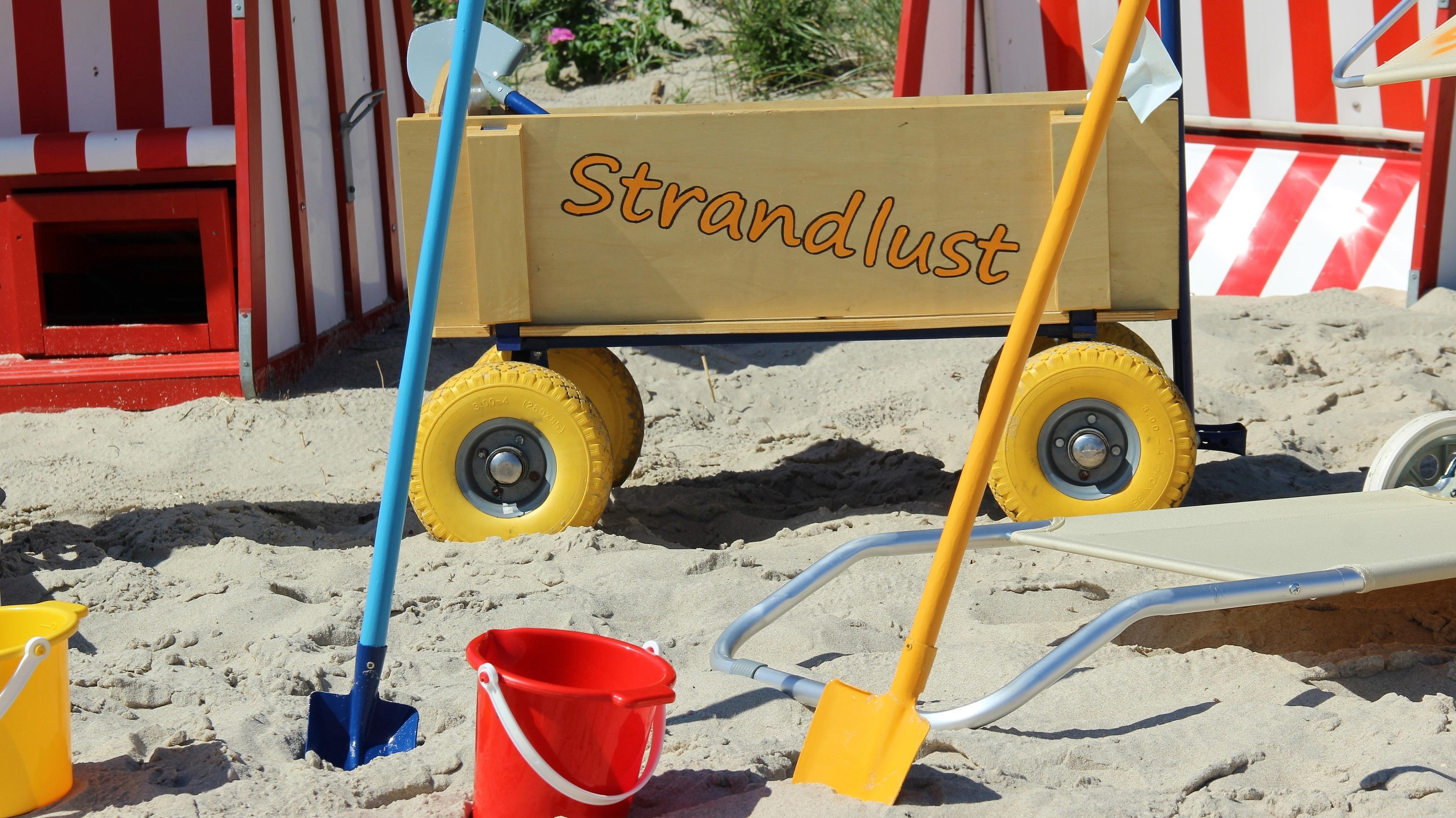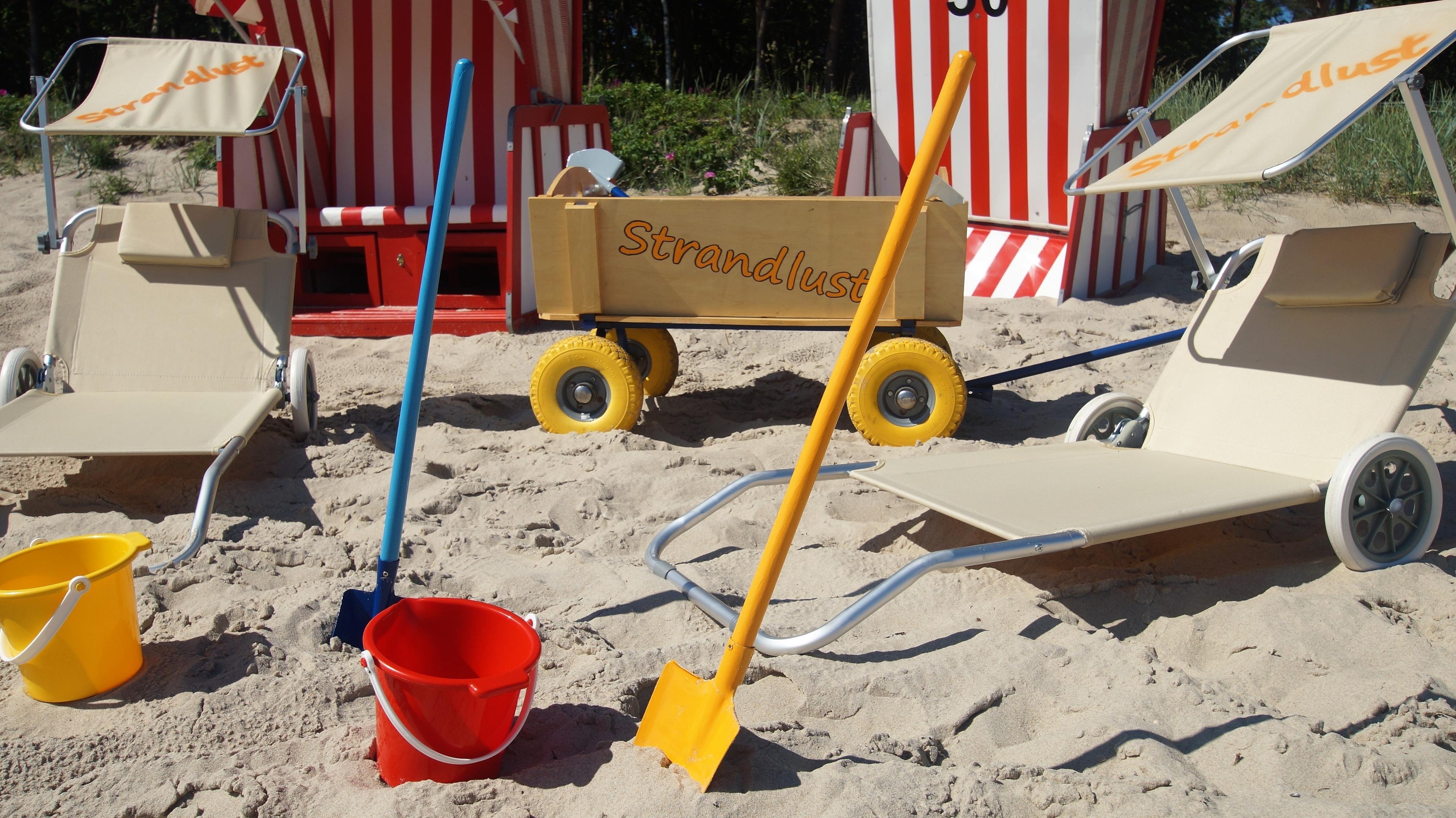 Ein abschließbarer Fahrradschuppen, sowie Bollerwagen und Strandutensilien sind vorhanden.