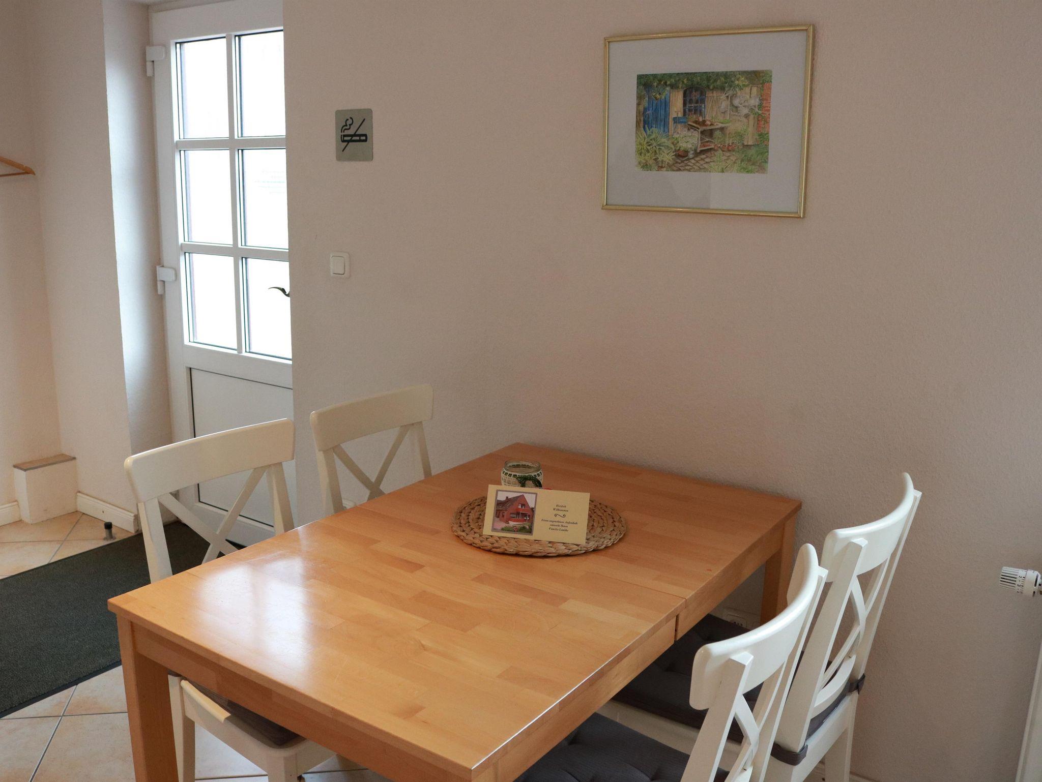 Die Ferienwohnung 1 befindet sich im Erdgeschoss des ehemaligen Bauernhauses unseres Resthofes. Sie ist 95 m² groß, barrierefrei und verfügt über ein Wohnzimmer, zwei Schlafzimmer mit jeweils zwei Betten, eine voll ausgestattete Küche mit Essbereich und ein geräumiges Badzimmer mit höhenverstellbarem Waschbecken, einer ebenerdigen (befahrbaren) Dusche und WC. Es gibt eine Terrasse mit Sitzplätzen für vier Personen. Die Wohnung verfügt über Satelliten-TV, DVD-Player, Stereoanlage mit Radio/CD, WLAN. In der Küche sind ein E-Herd mit Backofen und Cerankochfeld, Geschirrspüler, Mikrowelle und ein Kühlschrank mit separatem Gefrierfach vorhanden. Für kleinere Kinder gibt es einen Kinderhochstuhl. Für beide Ferienwohnungen gibt es zur gemeinsamen Benutzung in der Waschküche im Keller eine Waschmaschine, einen Trockner sowie ein Bügeleisen und ein Bügelbrett. Bettwäsche und Handtücher sind vorhanden. Parkmöglichkeiten gibt es bei uns auf dem Hof. Für Kinder gibt es im Garten ein Trampolin, ein Go-Kart und viel Platz zum Spielen.