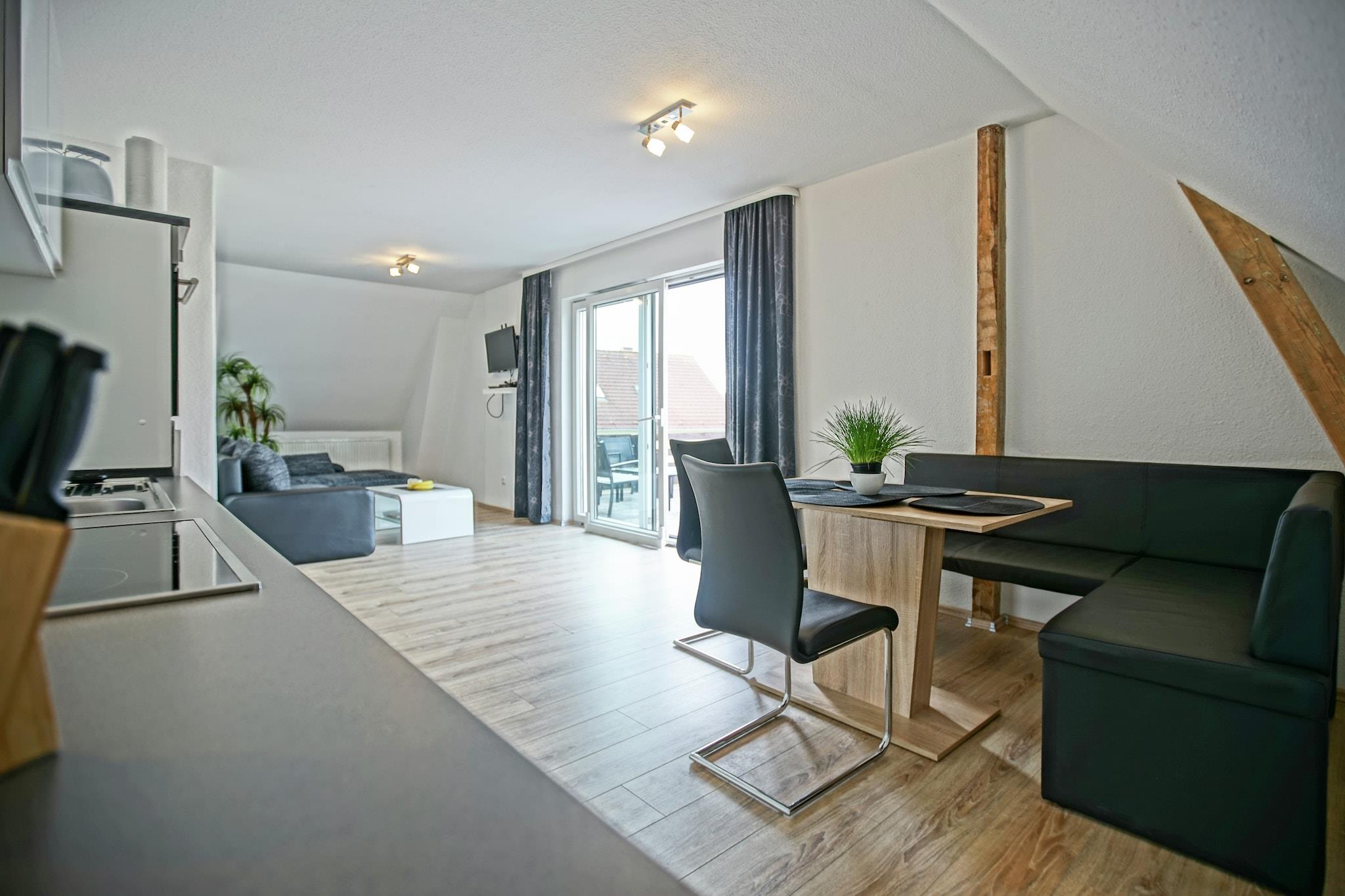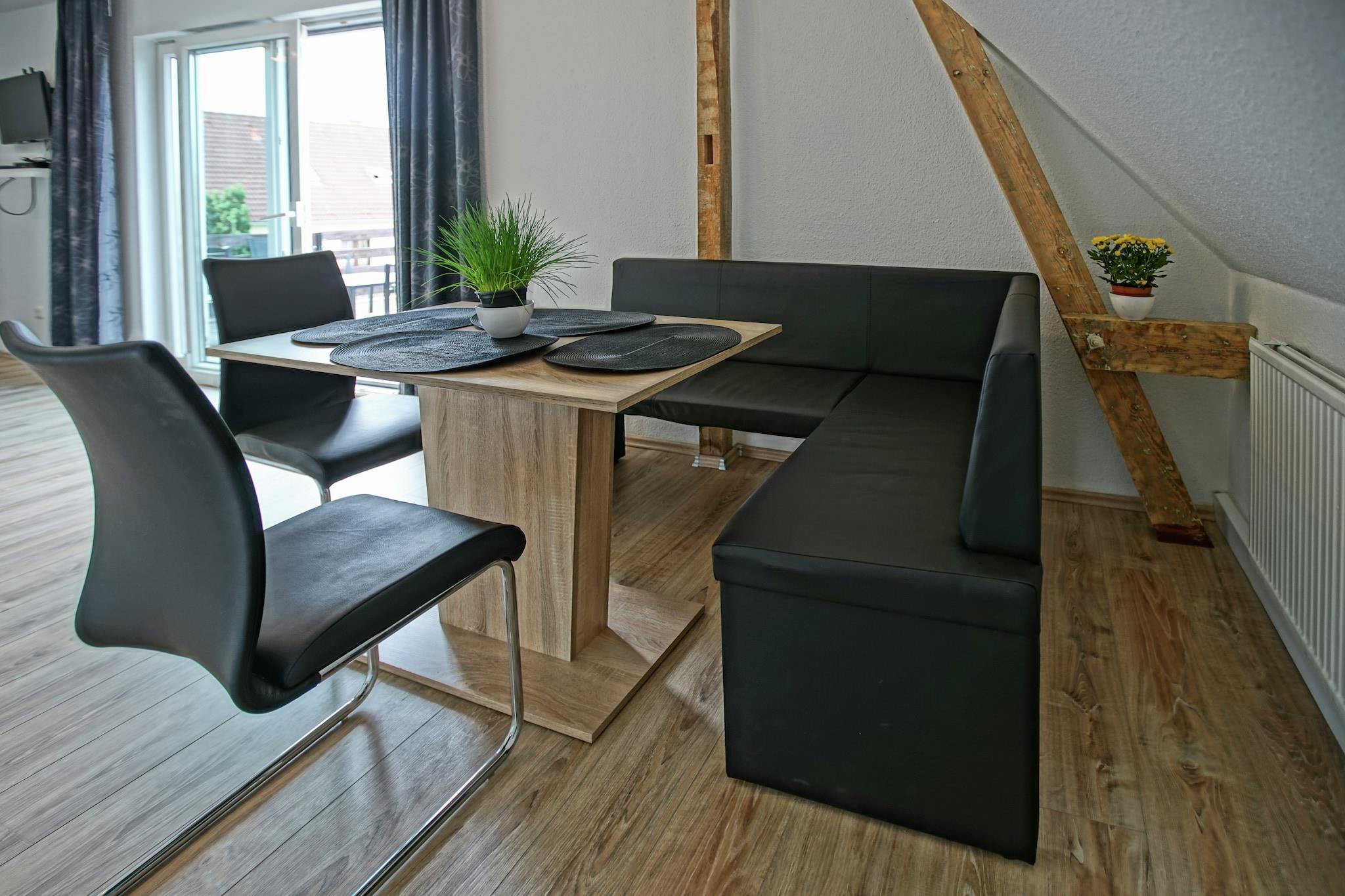 Denne indbydende lejlighed i Mönkebude er ideel for familier på op til fem gæster, og tilbyder en privat have og grillplads til afslappede aftener. Beliggende nær marinaen og sandstranden, er det perfekt til sejlads, sejlsport og gåture i solnedgangen. Det hyggelige interiør omfatter to soveværelser, en stue-spisestue og et veludstyret køkken, hvilket gør det til en behagelig base for din kystferie. Gæsterne kan udforske nærliggende attraktioner såsom feriestedet Ueckermünde, dyreparken, klatreskov og det lokale museum. Naturelskere vil nyde Christiansbergs botaniske have og øen Usedom med dens kejserlige bade. Aktive rejsende kan prøve vandsport (0,4 km), tennis (0,5 km), ridning (3 km) og golf (7 km). Butikker, restauranter og offentlig transport ligger alle inden for 300 meter, og lufthavnen ligger kun 26,3 km væk. Der tilbydes én gratis parkeringsplads, og yderligere pladser er tilgængelige efter anmodning. Bemærk venligst: parkering til elbiler er ikke tilgængelig på grund af sikkerhedshensyn. Denne lejlighed blander komfort, bekvemmelighed og eventyr til en uforglemmelig familieferie.