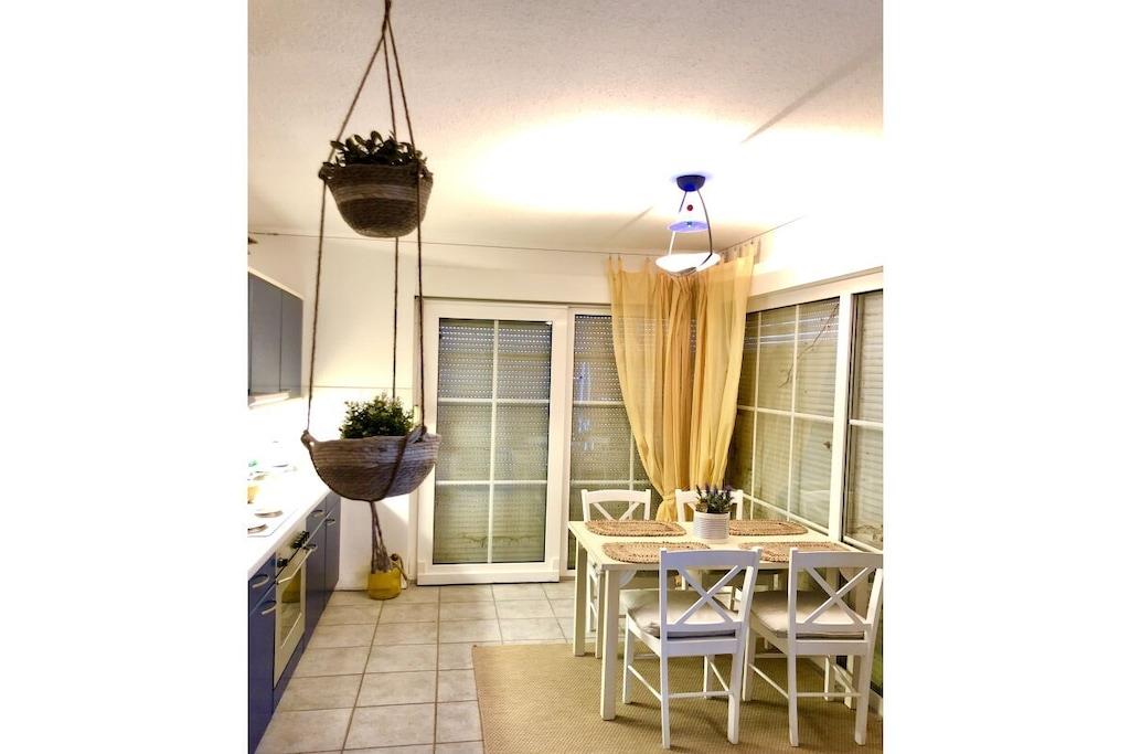 Nyd uhindret udsigt over vandet og øen Usedom. Vores hævede terrasse tilbyder en spektakulær udsigt over lagunen. Charmerende og moderne feriehus i et roligt rekreativt område direkte ved vandet foran øen Usedom. Stor, lys stue med adgang til terrassen, åbent moderne køkken, to soveværelser og et badeværelse med bruser. Nyd naturens ro, den lille private havn lige ved siden af vores kompleks og den smukke strand Mönkebude med strandstole, restauranter, snackbarer, en legeplads og en lystbådehavn.