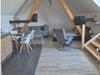 På 1. etage: (åbent køkken(spisebord, kakkelovn, elkedel, komfur(Komfur med fire kogeplader, glaskeramisk), emhætte, kaffemaskine(kaffetragt), ovn, mikrobølgeovn, køle-fryseskab), Stue/soveværelse(dobbeltseng, Fjernsyn, sofahjørne, radio), badeværelse(bruser, håndvask, toilet, vaskemaskine, føntørrer), tagterrasse, havemøbler) carport, varme(central), parkering, liggestole, Parasol, barnestol