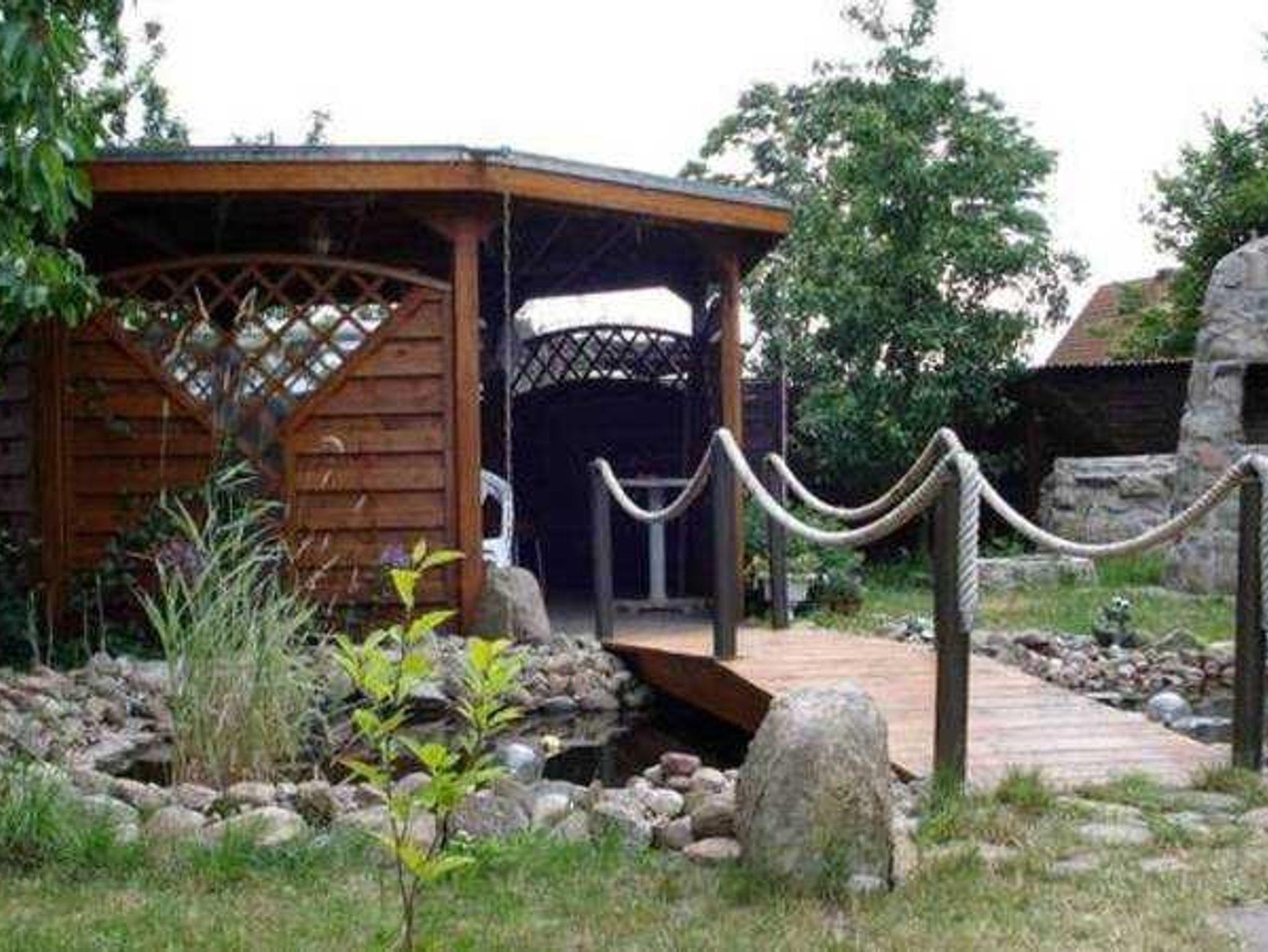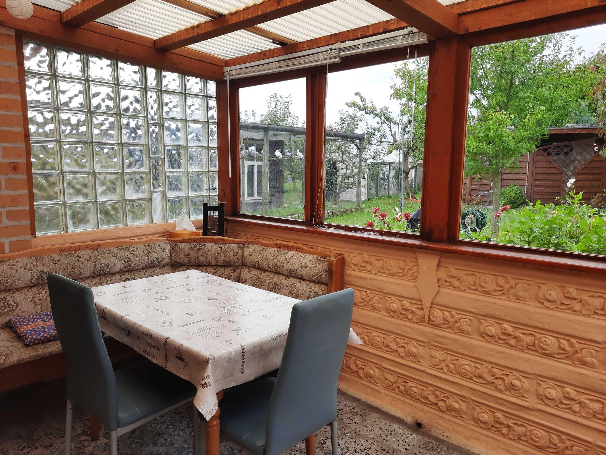 Das Ferienhaus steht auf dem Wohngrundstück des Vermieters in einer Gartenlage.