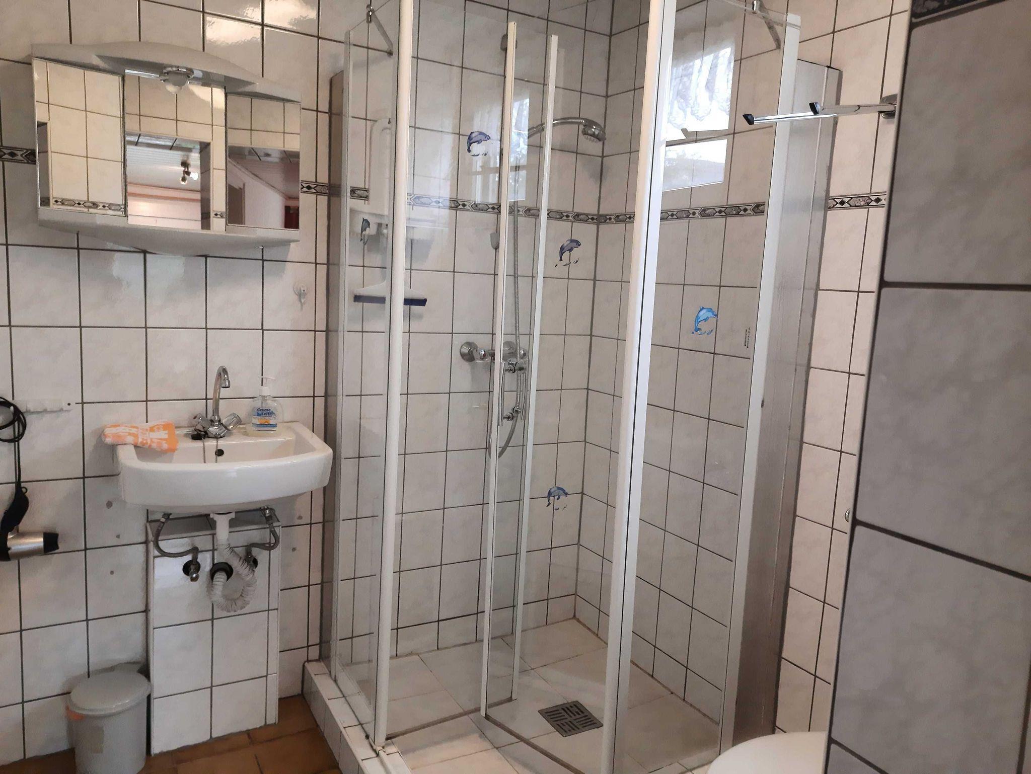 Es ist ausgestattet mit einem Wohnraum (Polstermöbel, Sat - TV, DVD Player, Stereokompaktanlage), 2 Schlafräumen ( 1X Doppelbett, 1 X zwei Einzelbetten - Durchgangszimmer), kleine Küche (separate Tiefkühlgelegenheit beim Vermieter auf Anfrage ...für ganz große Fische ) mit Wasserkocher, Toster, Mikrowelle, Brotmaschine sowie ein Bad mit DU/WC.