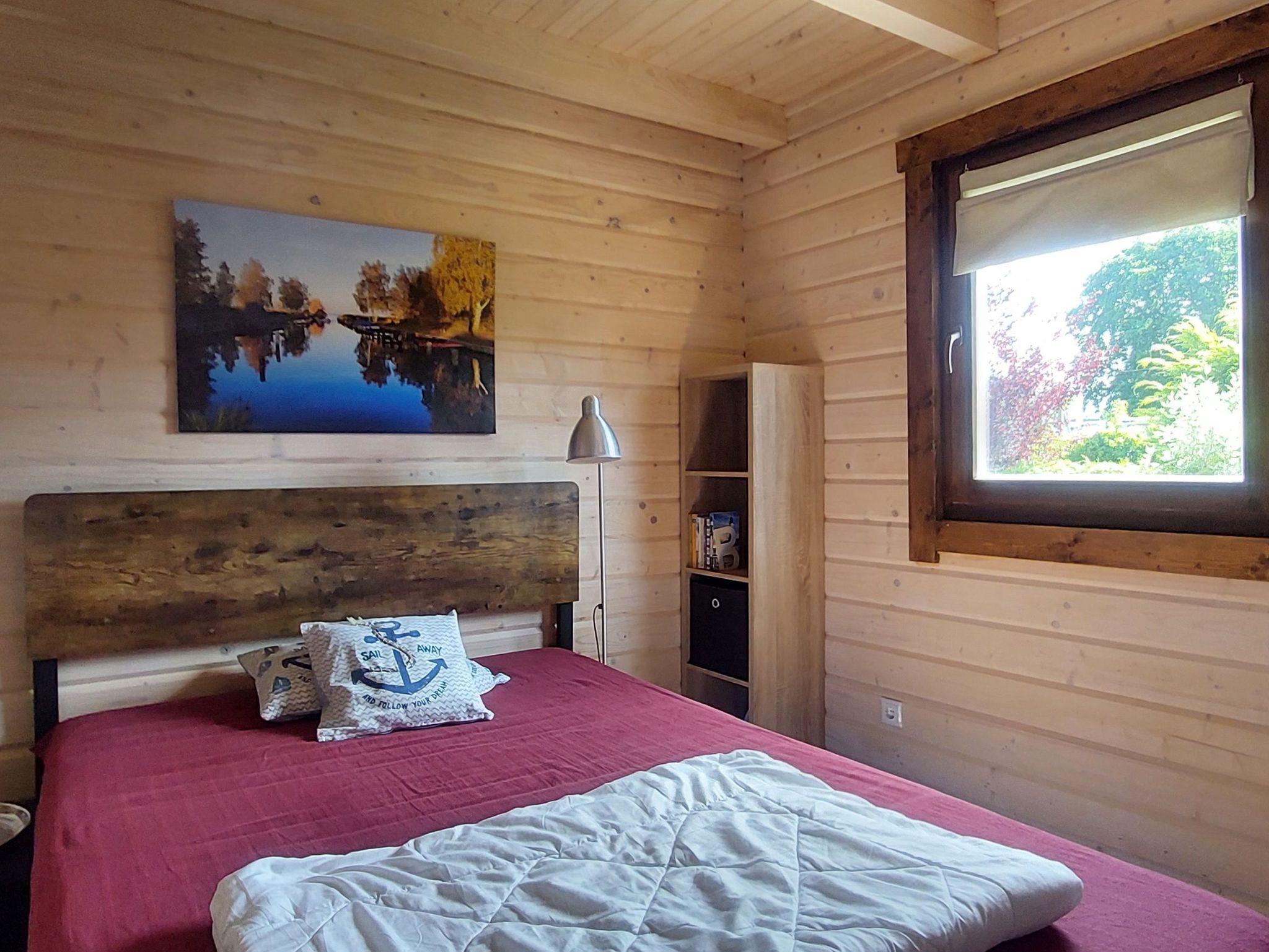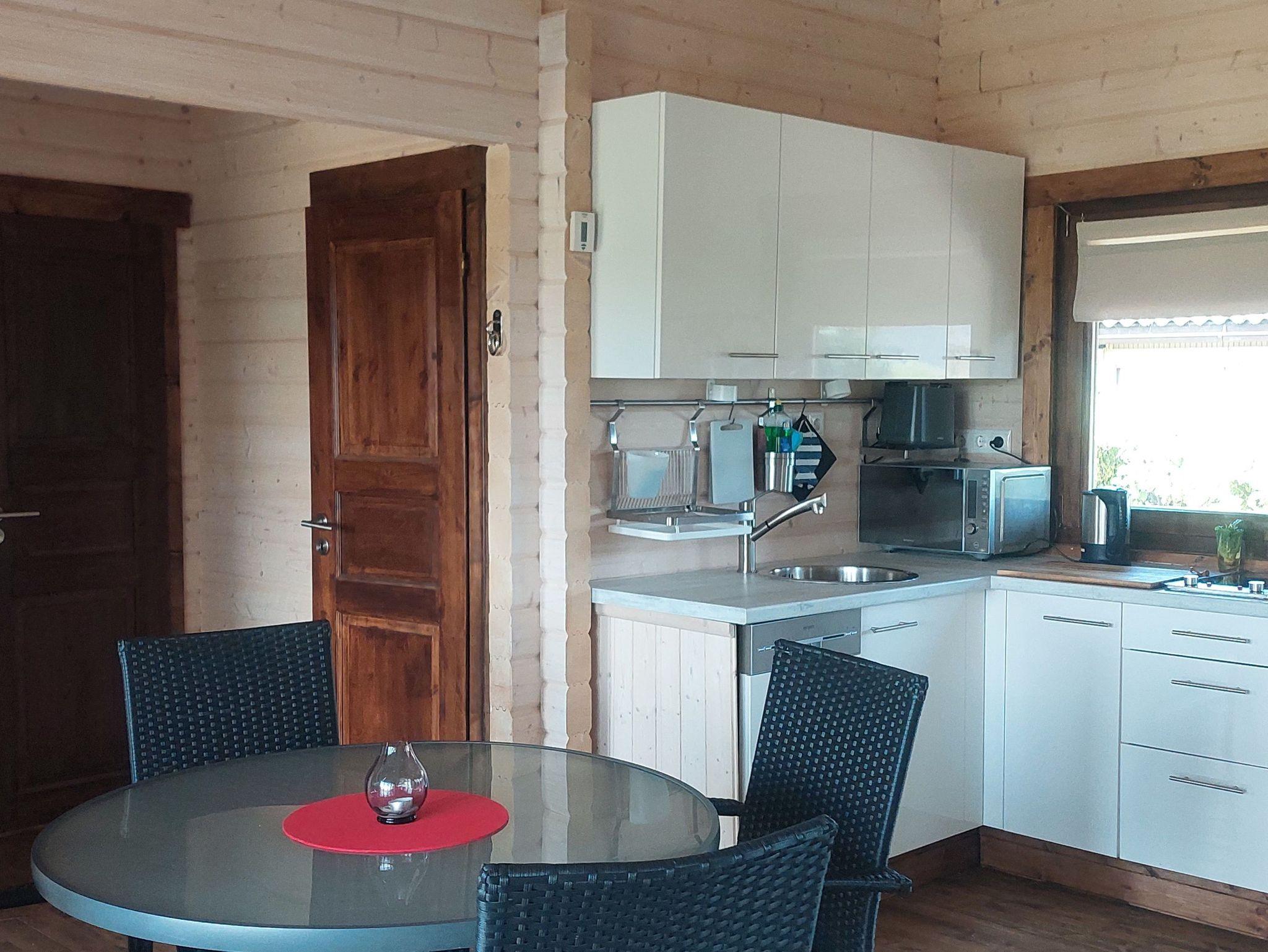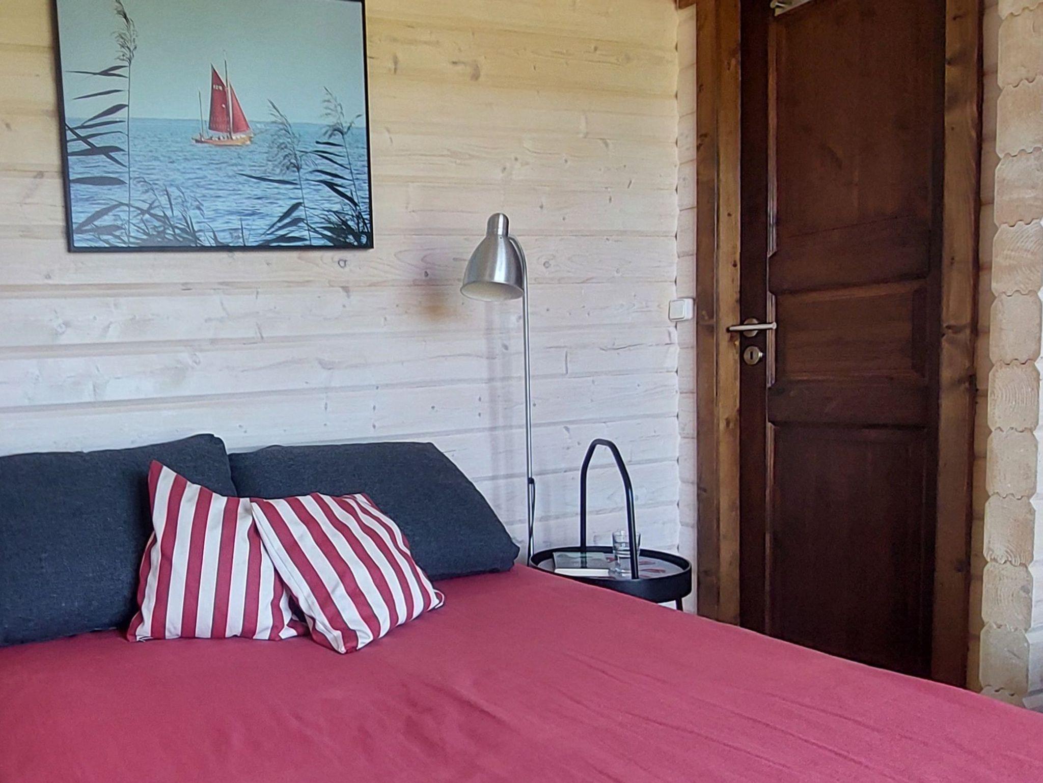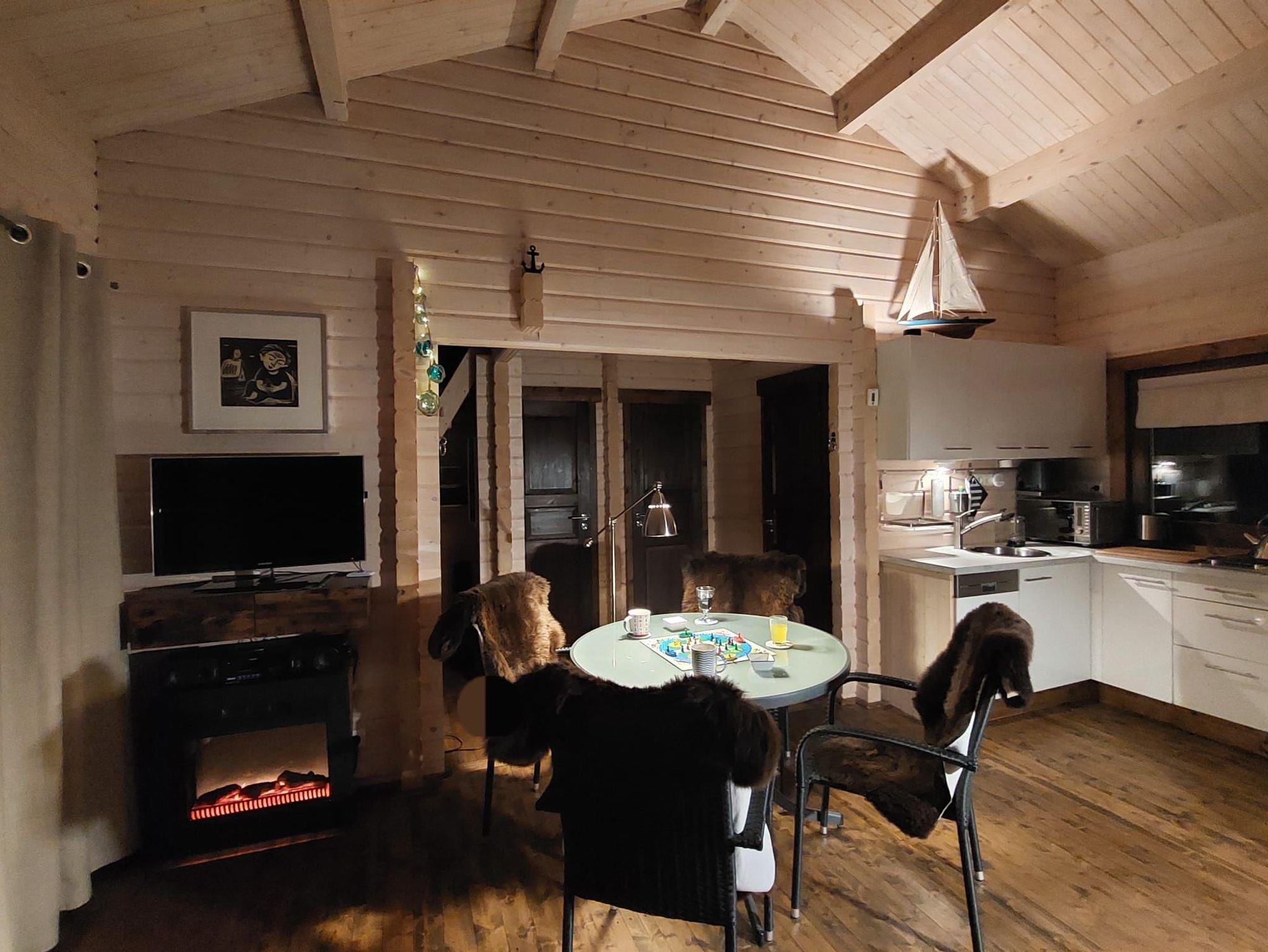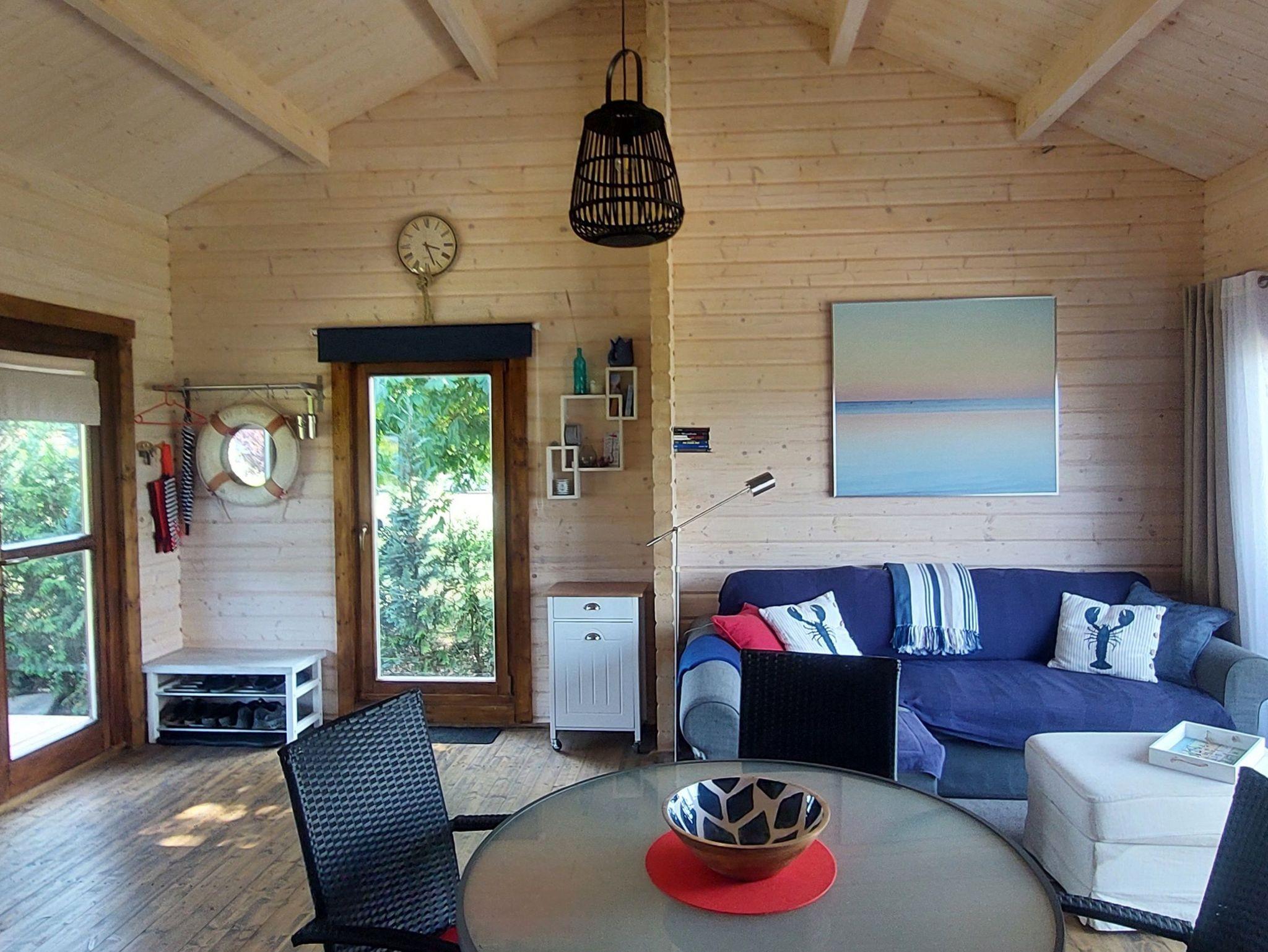 Das lichtdurchflutetet Blockhaus hat einen großzügigen Wohnbereich mit Küchenecke. Das Schlafzimmer ist mit einer französische Liege ausgestattet. Das zweite Zimmer mit Blick zum Deich verfügt über ein Schlafsofa ebenfalls für 2 Personen. Das Badezimmer mit Fenster ist mit WC, Waschbecken und Dusche, sowie einem elektr. Handtuchwärmer & Fön ausgestattet.