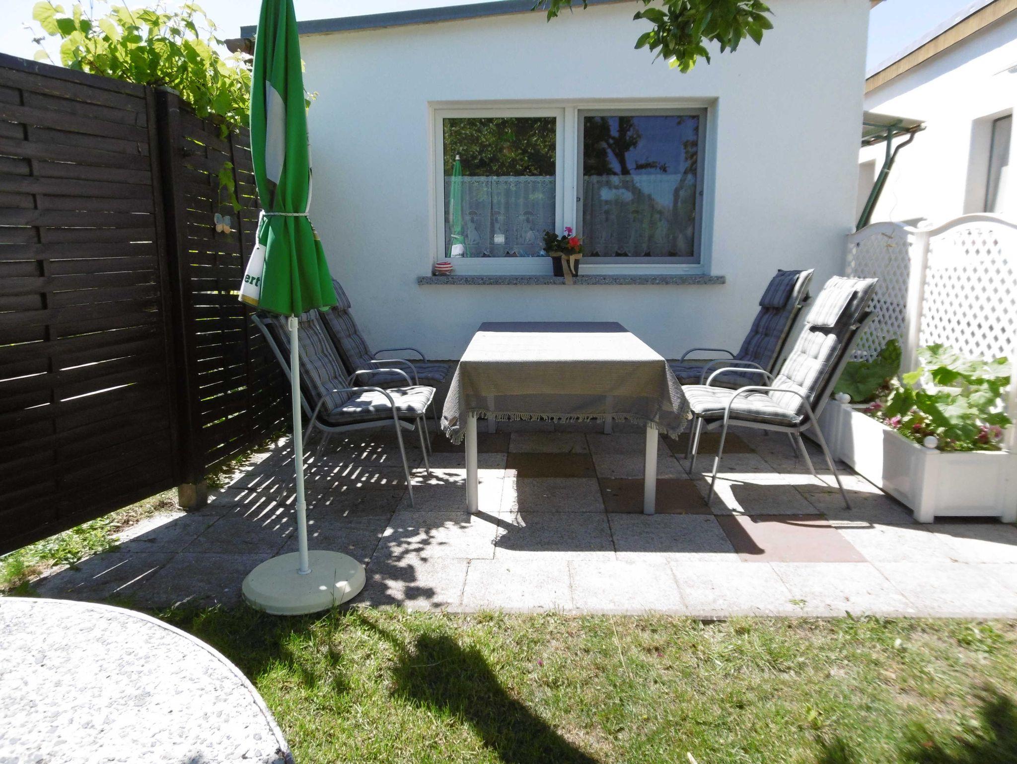 Direkt am Haus befindet sich sowohl eine Terrasse mit Tisch, Gartenstühlen und einem Grill. Insgesammt beträgt die Wohnfläche ca. 60 qm.