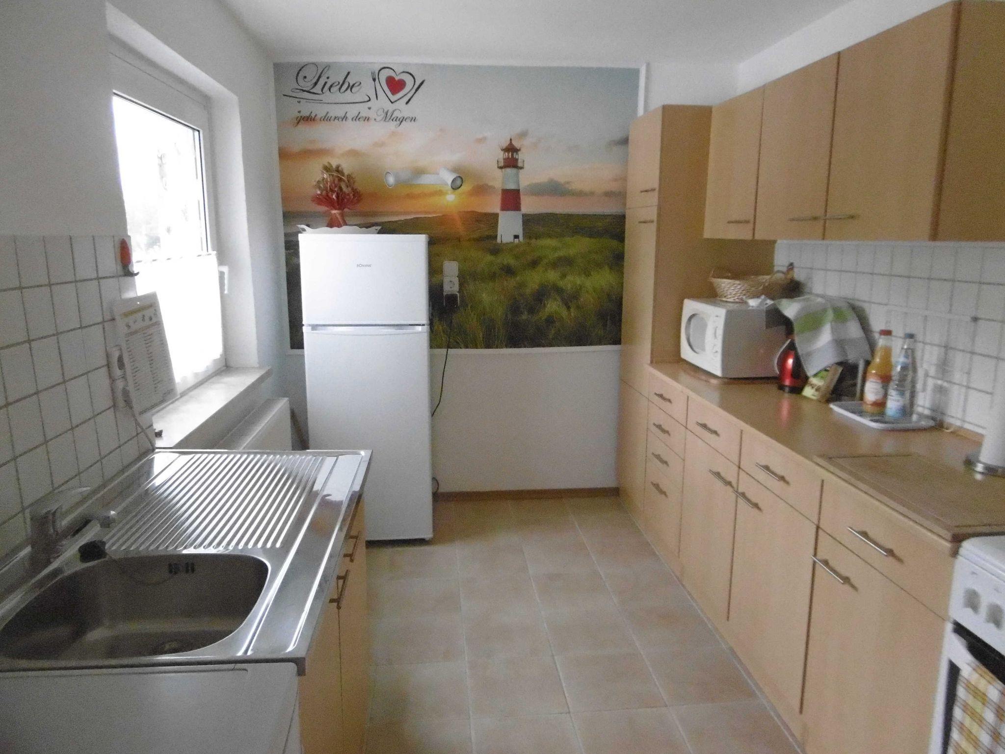 • Küche mit Kühlschrank und Geschirrspüler, Mikrowelle, Herd und Backofen sowie Kaffeemaschine, Toaster und ausreichend Geschirr für Anzahl der Gäste.
