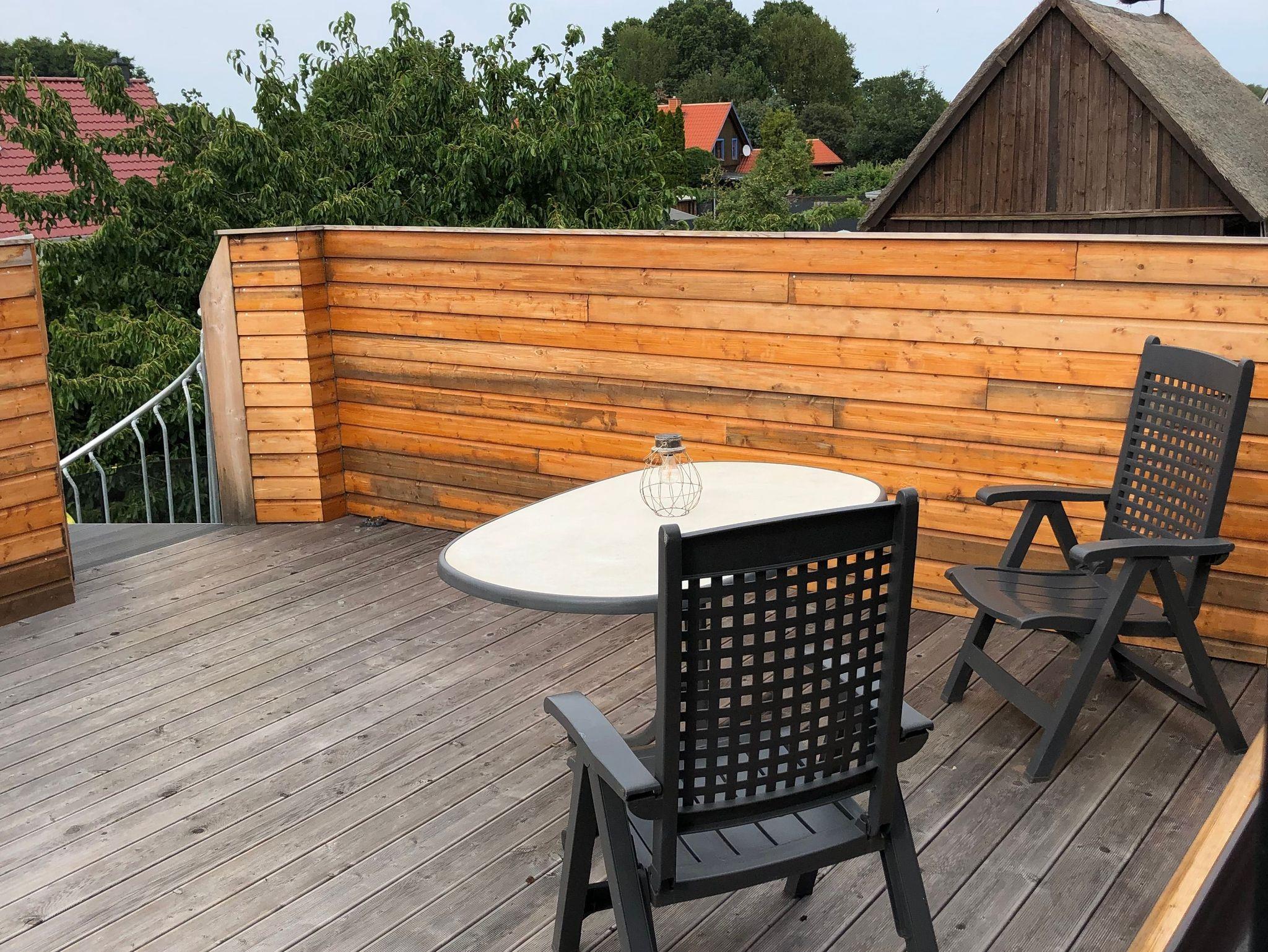 zur große Dachterrasse ca. 40qm, mit Hängestuhl, Whirlpool der auf Anfrage auch