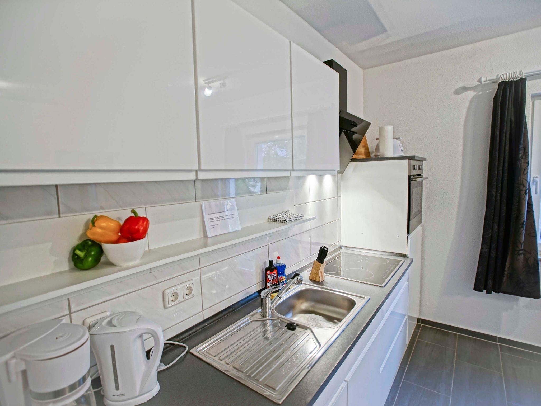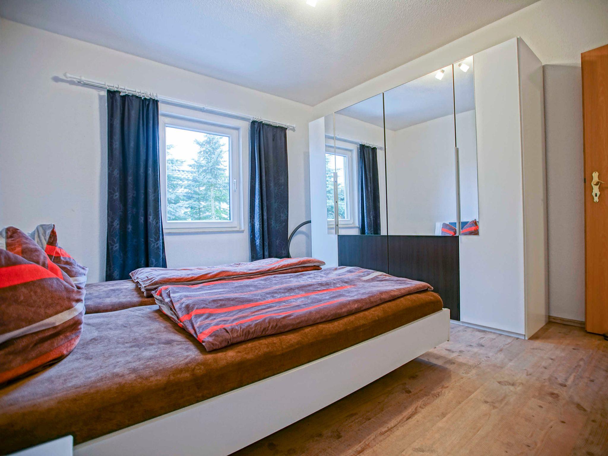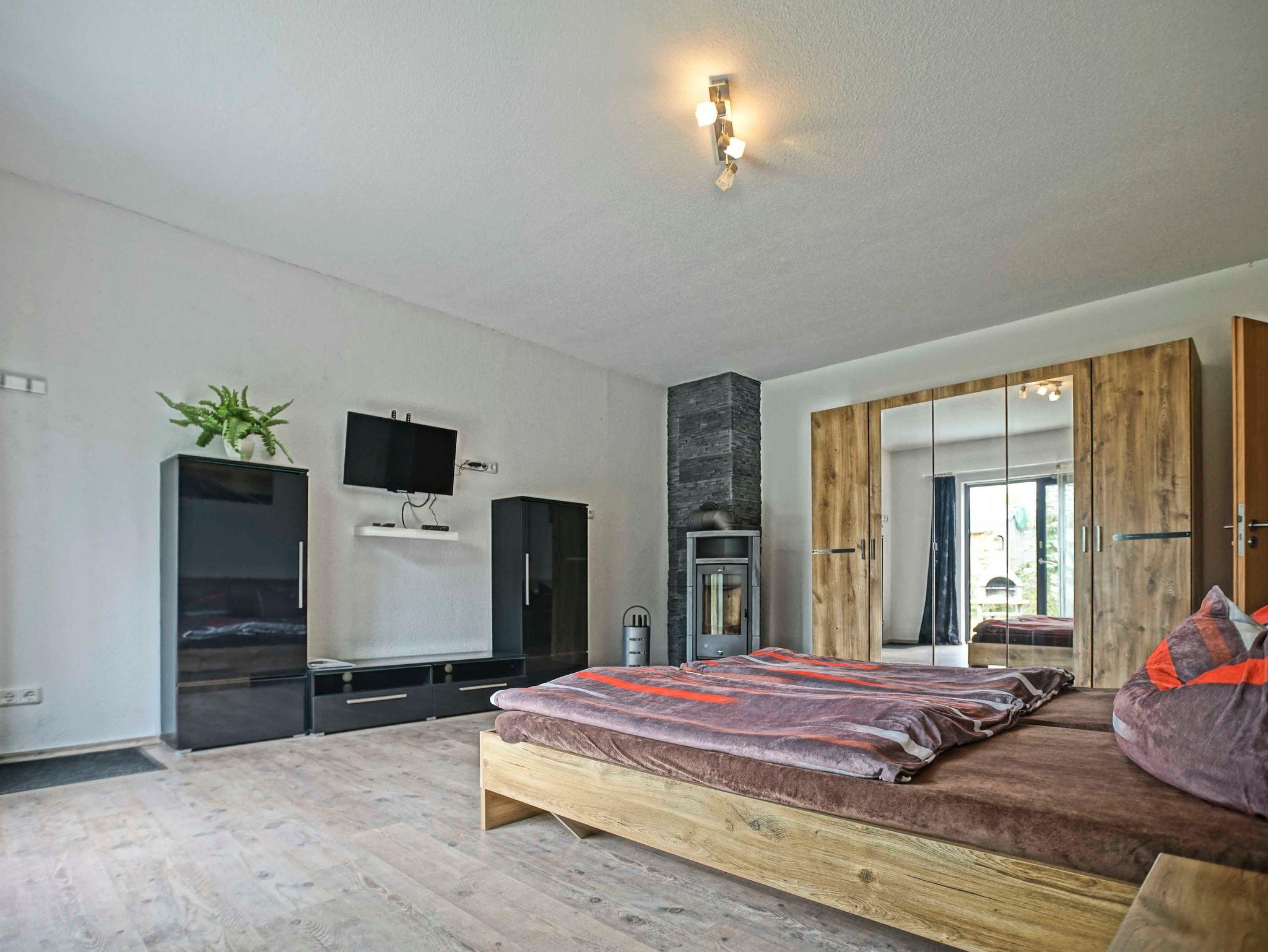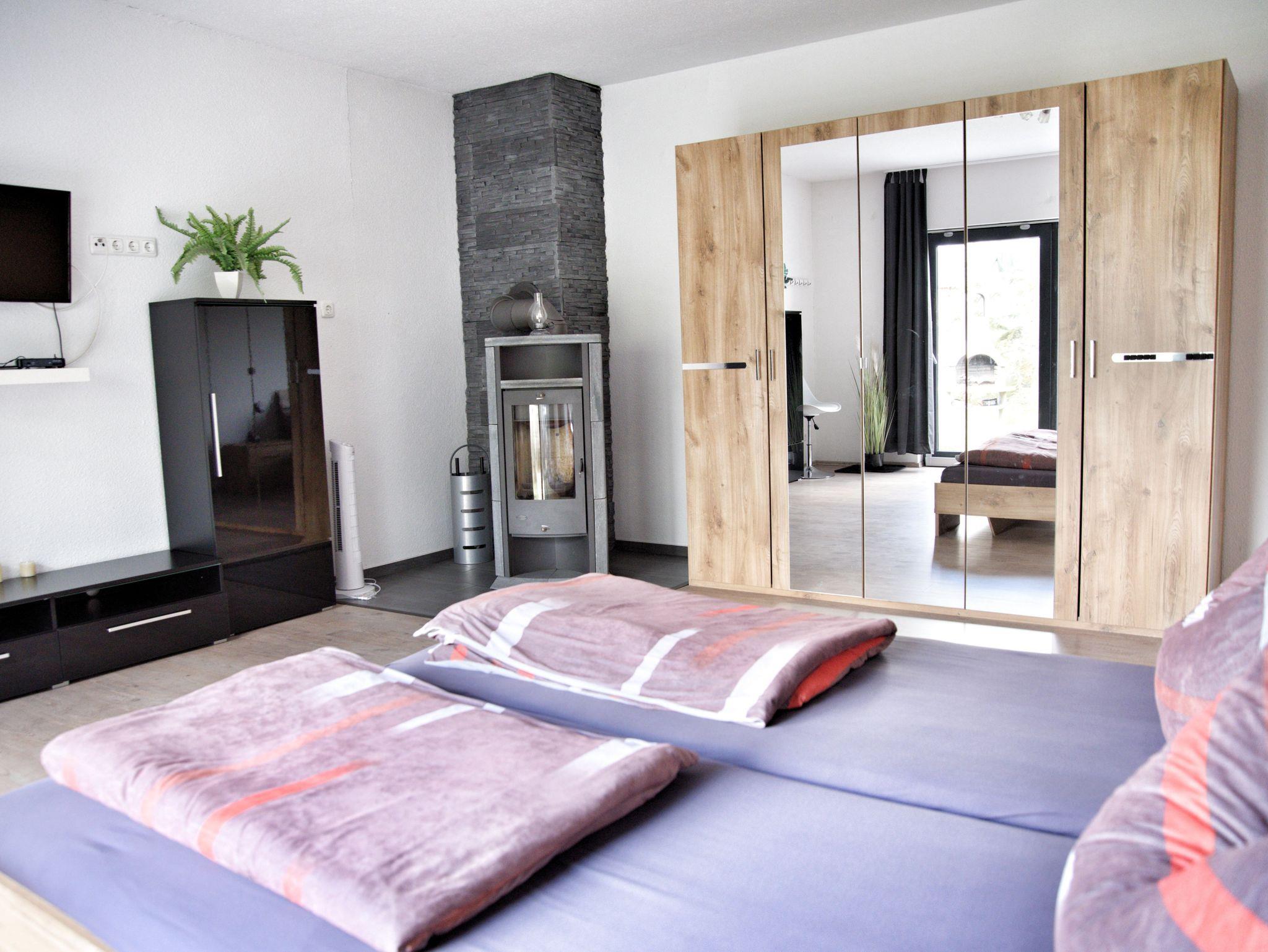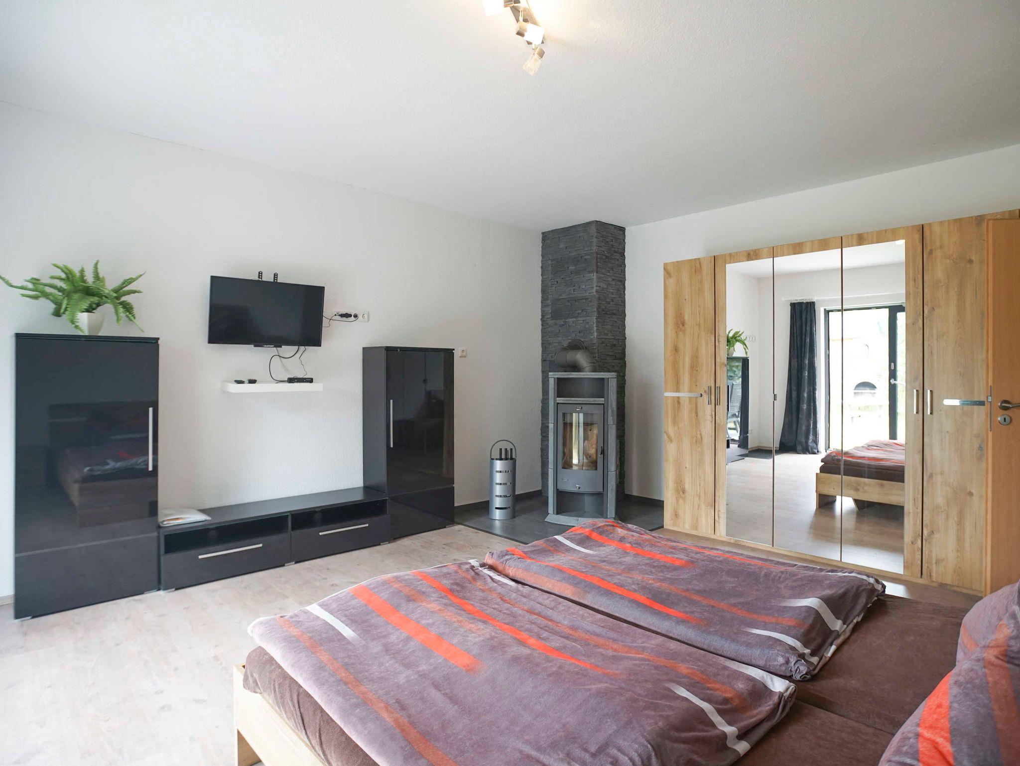 Dieses Ferienhaus liegt als Nebengebäude alleinstehend auf dem Grundstück und ist vollständig ebenerdig. Genießen Sie einen erholsamen Urlaub in einer modern eingerichteten Ferienwohnung auf ca. 72 m², die hohe Ansprüche an einen komfortablen Urlaub bedient. Die Wohnfläche unterteilt sich in einem Extrazimmer mit einem Einzelbett (1,20 cm x 200 cm) das Zugang zum Bad und zur Küche bietet, ein Schlafzimmer mit einem Doppelbett (180 cm x 200 cm), das von zwei beidseitigen Nachttischen mit Leselampen umgeben ist. Vor dem Doppelbett steht stets ein geräumiger Kleiderschrank mit Spiegeltüren, der ausreichend Verstauungsmöglichkeiten für Ihr Reisegepäck bietet. Einer fünften Person wird ein Einzelbett in einem separaten Zimmer geboten. Herzstück der Wohnung ist der 30 m² umfassende Wohn- und Schlafraum und die Küche mit integriertem, bequemen Essplatz. Auf der ausziehbaren Couch entspannen Sie nach einem Tagesausflug während der Flachbildfernseher mit Sat.-TV, DVD-Player und TV-USB-Anschluss für Unterhaltung sorgt. Ein prasselndes Feuer im Kaminofen sorgt auch in der kalten Jahreszeit für behagliche Wärme und ein besonders gemütliches Ambiente. Im ausgezogenen Zustand bietet die Couch zwei Personen einen bequemen Schlafplatz mit einer Liegefläche von 194 cm x 235 cm. Die offene Küche ermöglicht Ihnen eine umfangreiche Selbstversorgung anhand eines Vierzonenkochfelds, eines Backofens, eines Kühlschranks mit Gefrierfach, sowie zahlreicher Kleinelektrogeräte, von einem Toaster über eine Mikrowelle bis zur Kaffeemaschine. Zu gemeinsamen Speisen nehmen Sie Platz im ansehnlichen Essbereich auf fünf komfortablen Schwingstühlen. Im Badezimmer ist eine Duschkabine, ein Handwaschbecken mit WC und Handtuchtrockner, sowie ein Badezimmerfenster vorhanden. Geheizt wird die Wohnung sehr angenehm mit einer Fußbodenheizung.