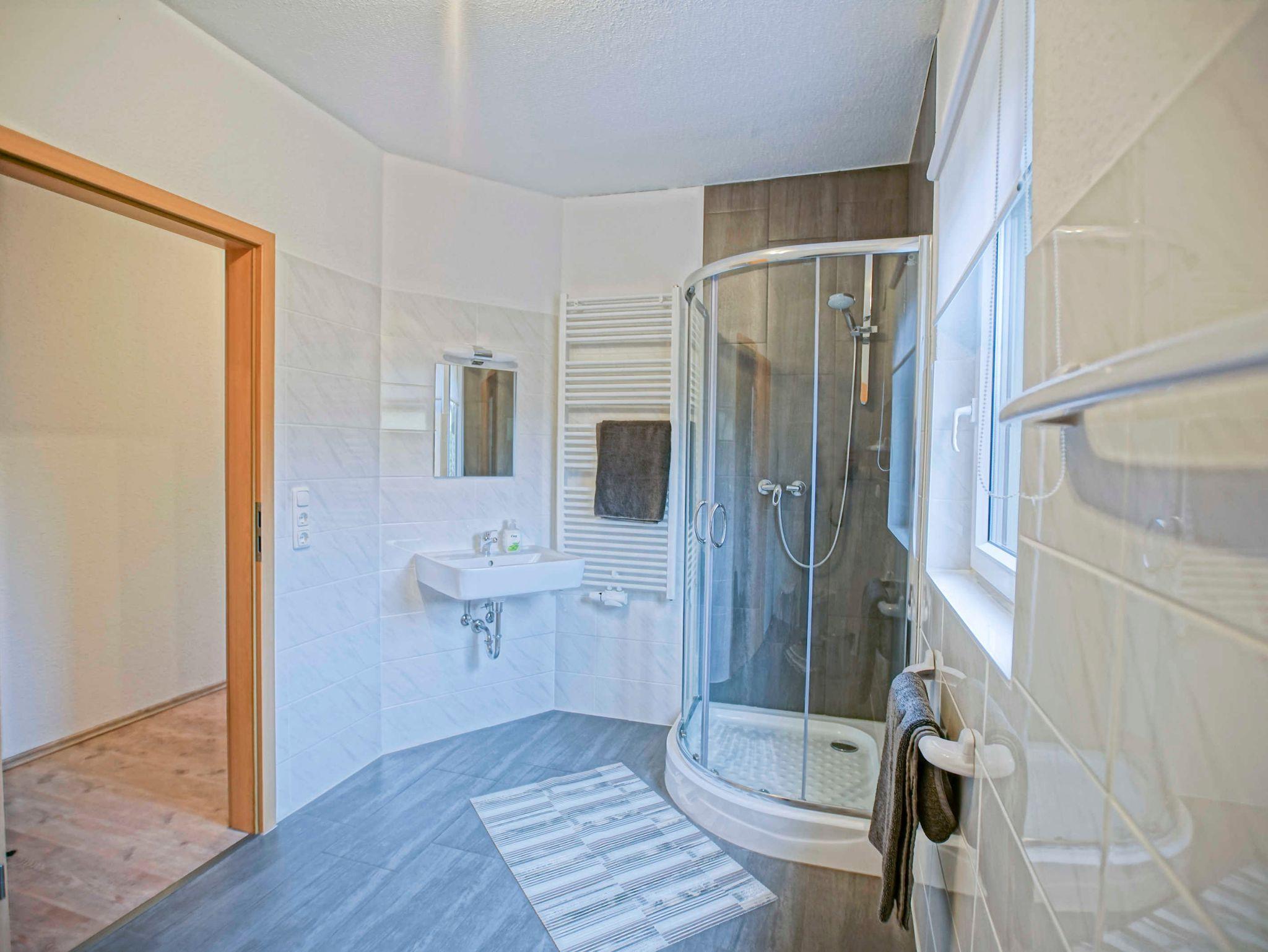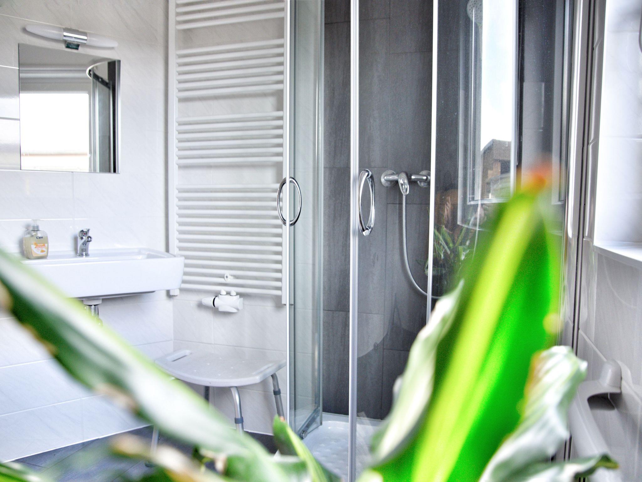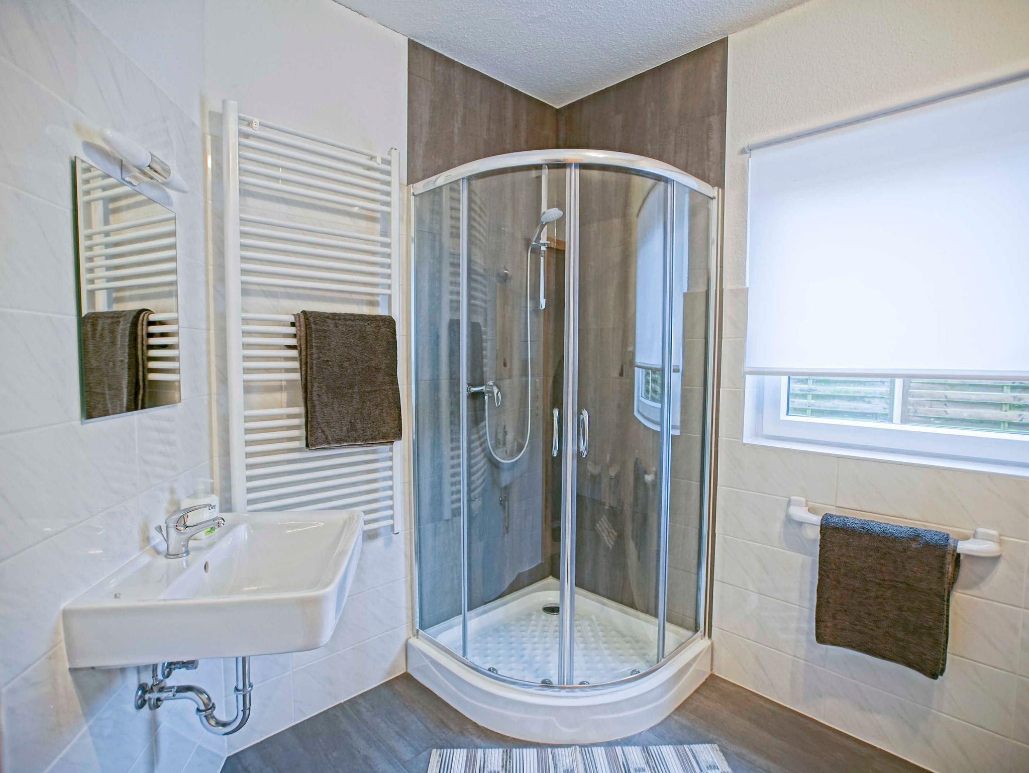 und Handtuchtrockner, sowie ein Badezimmerfenster vorhanden. Geheizt wird die