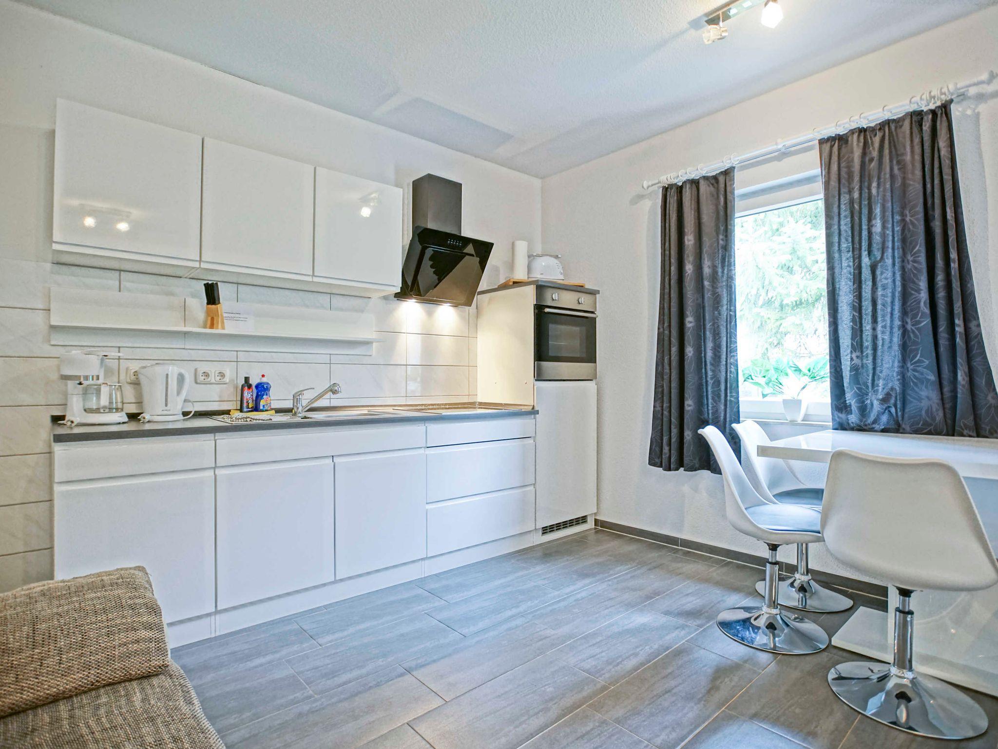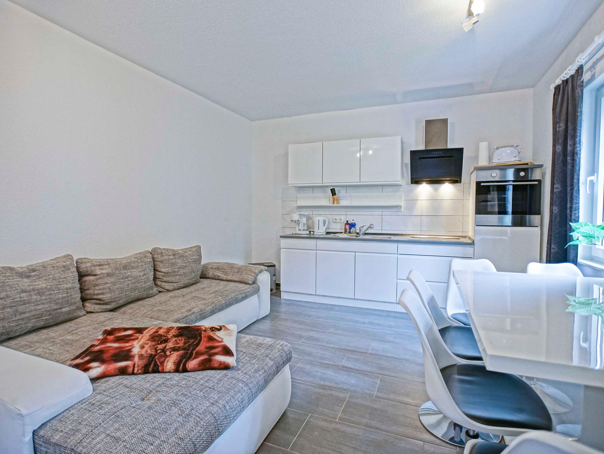 und die Küche mit integriertem, bequemen Essplatz. Auf der ausziehbaren Couch