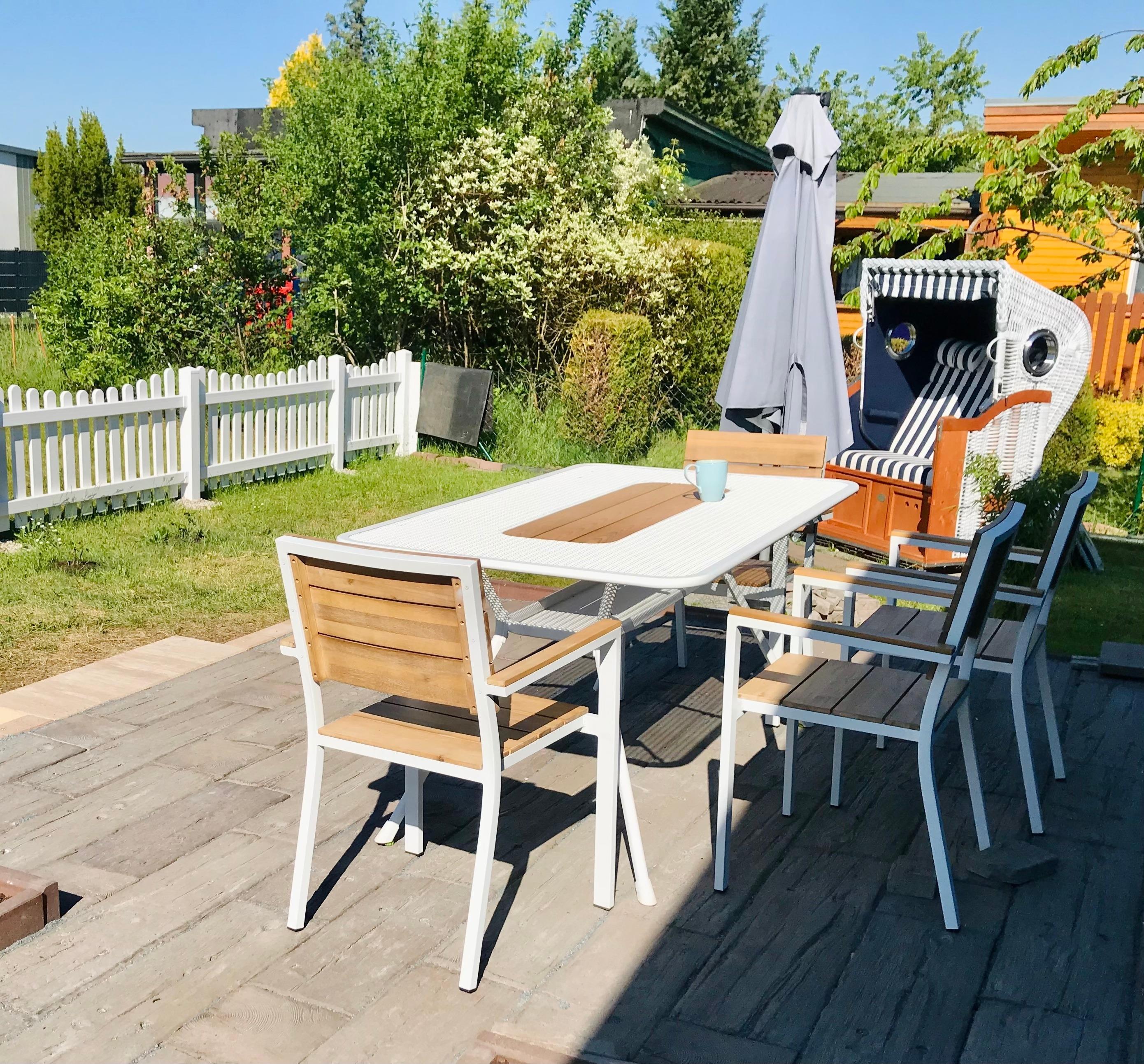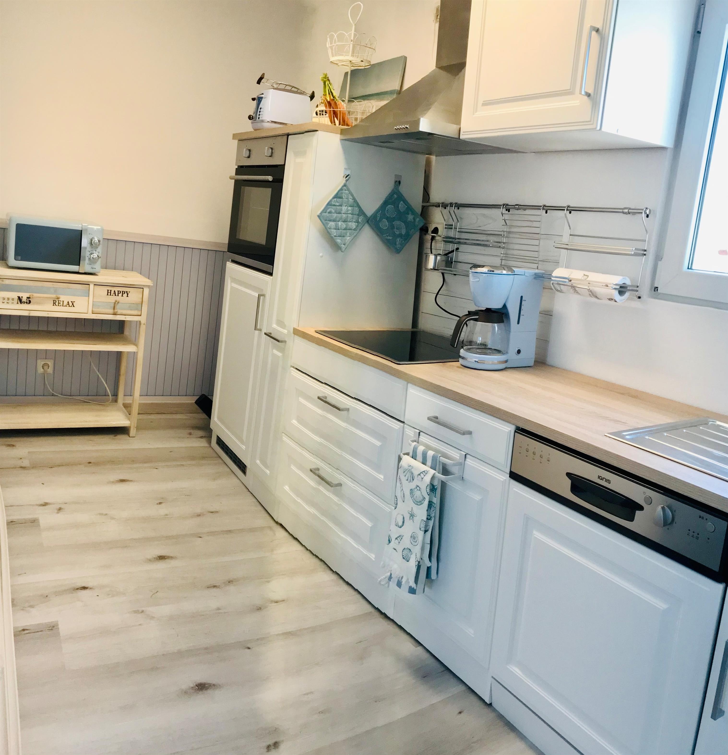 Genießen Sie Ihren Urlaub in vollen Zügen, bei schönem Wetter auch draußen auf der Terrasse. In der gut ausgestatteten Küche finden Sie neben einem Kühlschrank auch eine Mikrowelle und einen Backofen.