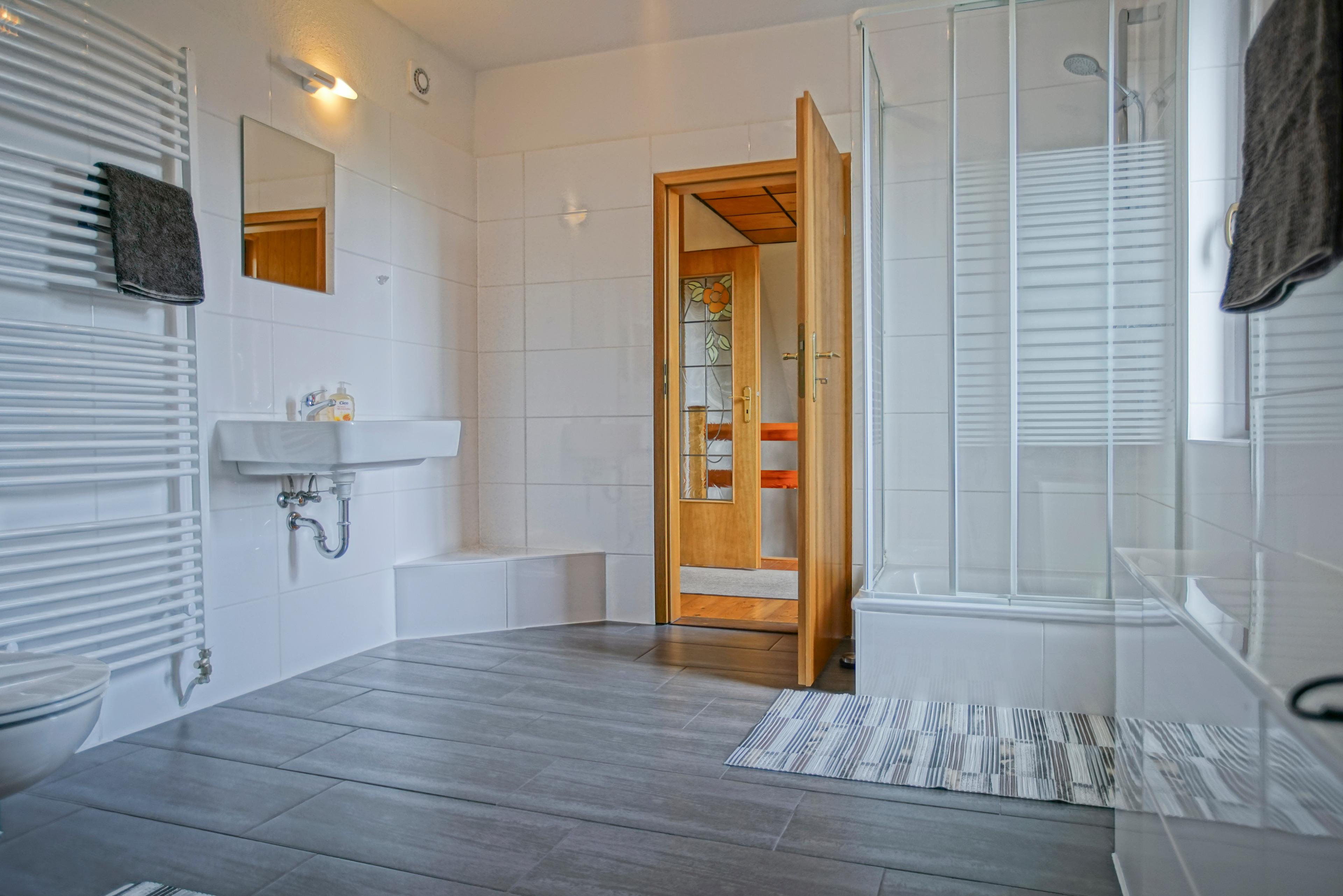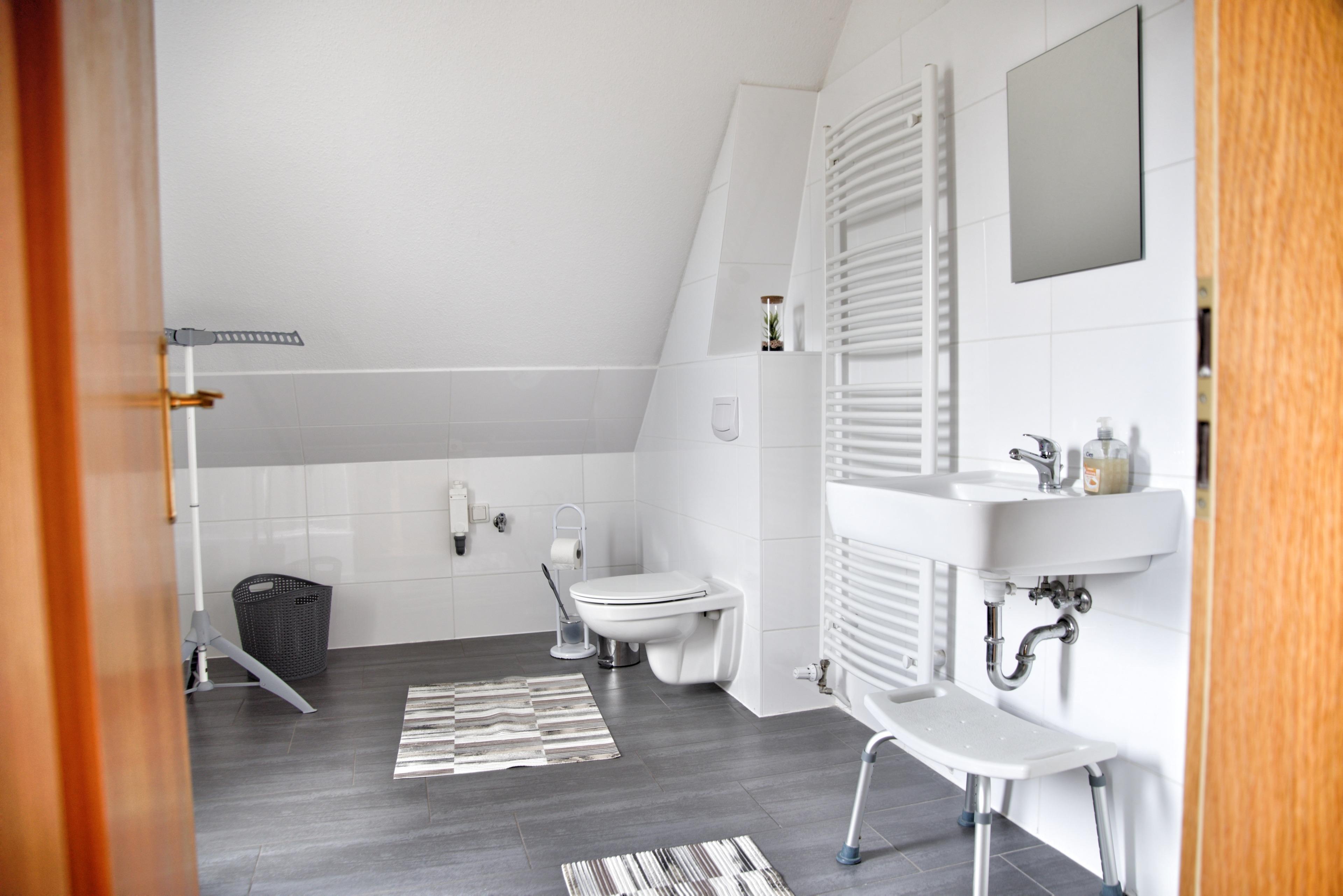 Dieses großzügige Ferienhaus befindet sich mittig im Ort und ist sehr idyllisch eingebettet, mit seinen Bananenpalmen was ein besonderes Urlaubsgefühl hervorruft, es verfügt über eine Wohnfläche von 213 m² und unterteilt sich in zwei separaten Etagen, die beide separat buchbar sind, wo bei es hier um die oberste Etage geht. Sie selber haben ca.: 150qm zur eigenen Verfügung anhand von einer Terrasse, einem Grillplatz und einem kleinen Spielplatz mit Buddelzeug. Genießen Sie einen erholsamen Urlaub in einem modern eingerichteten Ferienhausapartment auf ca. 98 m², die einen komfortablen Urlaub für 4Personen bedient (alle Punkte einer 3 Sterne Ferienwohnung werden erfüllt), Aufbettung für max.2Personen zusätzlich möglich. Die Wohnfläche im oberen Apartment unterteilt sich in zwei Schlafzimmer mit jeweils einem großzügigen Doppelbett (180 cm x 210 cm), das von zwei beidseitigen Nachttischen mit Leselampen umgeben ist. Vor dem Bett steht stets ein geräumiger Kleiderschrank mit Spiegeltüren, der ausreichend Verstauungsmöglichkeiten für Ihr Reisegepäck bietet. Ein Kinderstuhl, Kinderreisebett und eine Wickelkomode stehen für die ganz kleinen Gäste kostenlos bereit. Herzstück der Wohnung ist der 30 m² umfassende Wohn- und Schlafraum, mit einer 30qm großen Dachterrasse zum raus gehen und Sonne tanken, mit integrierter Küchenzeile und 2 sehr bequemen, üppigen Essbereichen. Auf der ausziehbaren Schlafcouch (2,35m x 1,84m) entspannen Sie nach einem Tagesausflug während der Flachbildfernseher mit Sat. -TV, DVD-Player und TV-USB-Anschluss für Unterhaltung sorgt. Im ausgezogenen Zustand bietet die Couch zwei Personen einen bequemen Schlafplatz mit einer Liegefläche von 174 cm x 235 cm. Die offene Küche ermöglicht Ihnen eine umfangreiche Selbstversorgung anhand eines Vierzonenkochfelds, eines Backofens, eines Kühlschranks mit Gefrierfach, sowie zahlreicher Kleinelektrogeräte, von einem Toaster, Wasserkocher bis zur Kaffeemaschine. Zu gemeinsamen Speisen nehmen Sie Platz im ansehnlichen Essbereich auf einer Eckbank mit drei komfortablen Stühlen. Im Badezimmer ist, eine Duschkabine, ein Handwaschbecken mit WC und Fön, sowie ein Badezimmerfenster vorhanden. Geheizt wird die Wohnung mit einer Ölheizung.