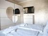 Im großen Schlafzimmer befindet sich ein Doppelbett. Nachttische, Leselampen und Garderoben möchten hier von Ihnen genutzt werden. Der geräumige Kleiderschrank wird Ihnen gute Dienste leisten. Ein Flachbildfernseher ist in diesem Raum ebenfalls für Sie vorhanden. Ein Babybett und ein Kinderhochstuhl sind für Sie kostenfrei verfügbar.