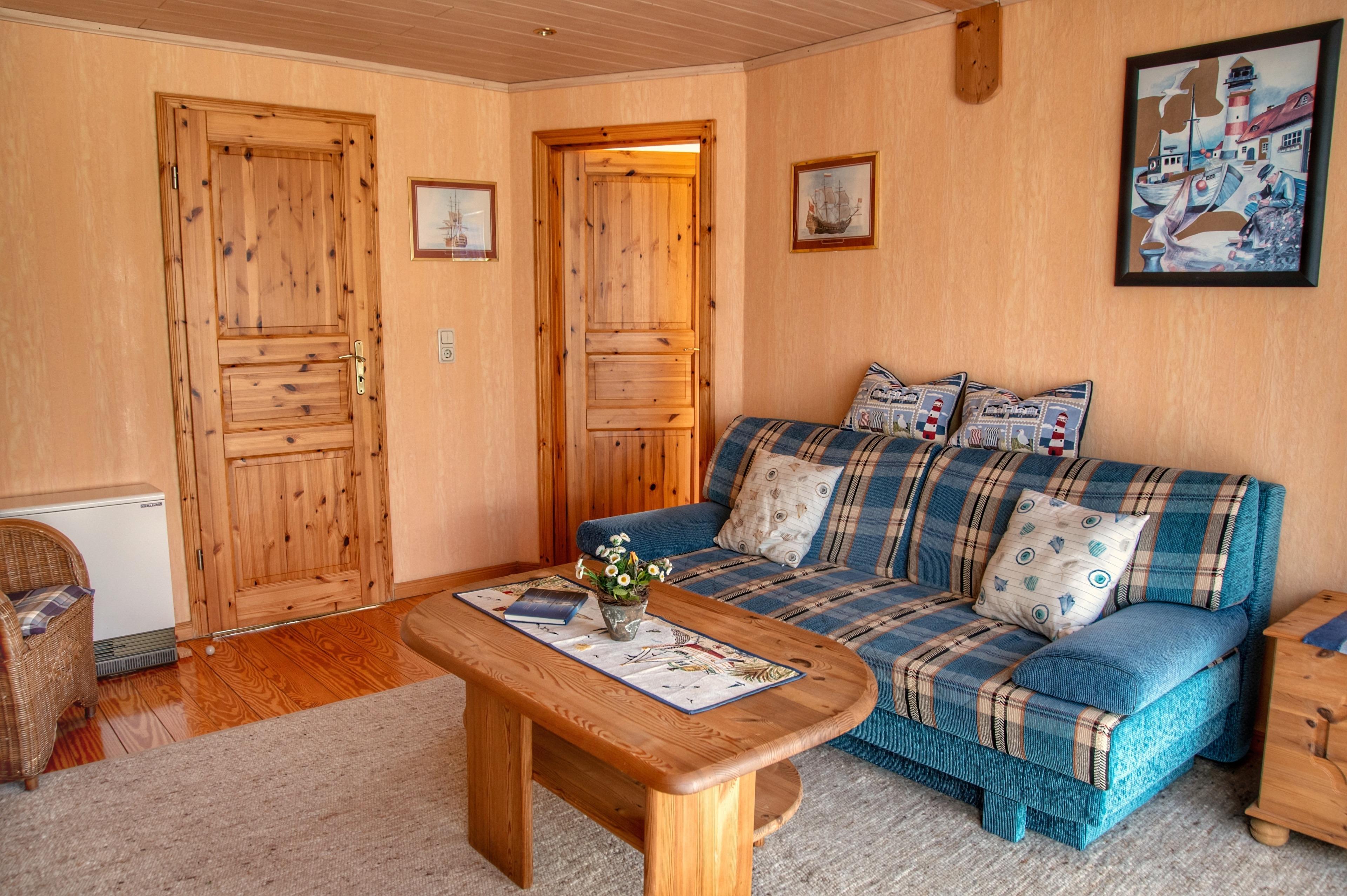 In Ihrem Wohnzimmer können Sie entspannen. Multimedial wartet im Wohnzimmer ein Flachbildfernseher auf Sie. Auch einige Gesellschaftsspiele dürfen im Bestand nicht fehlen. Ihr Sofa lässt sich ausziehen und bietet einen weiteren Schlafplatz für Sie. Im großen Schlafzimmer befindet sich ein Doppelbett. Nachttische, Leselampen und Garderoben möchten hier von Ihnen genutzt werden. Der Kleiderschrank wird Ihnen gute Dienste leisten. Das sogenannte Kinderzimmer bietet Ihnen hier auch einen kleinen Schlafplatz. Dieser Raum kann von Ihnen vielfältig genutzt werden. Alle Schlafräume sind mit Fliegengittern für Sie ausgestattet, damit Ihrer erholsamen Nachtruhe nichts im Wege steht. Auch eine Verdunklung ist in allen Schlafräumen möglich. Ein Babybett und ein Kinderhochstuhl sind für Sie kostenfrei verfügbar.