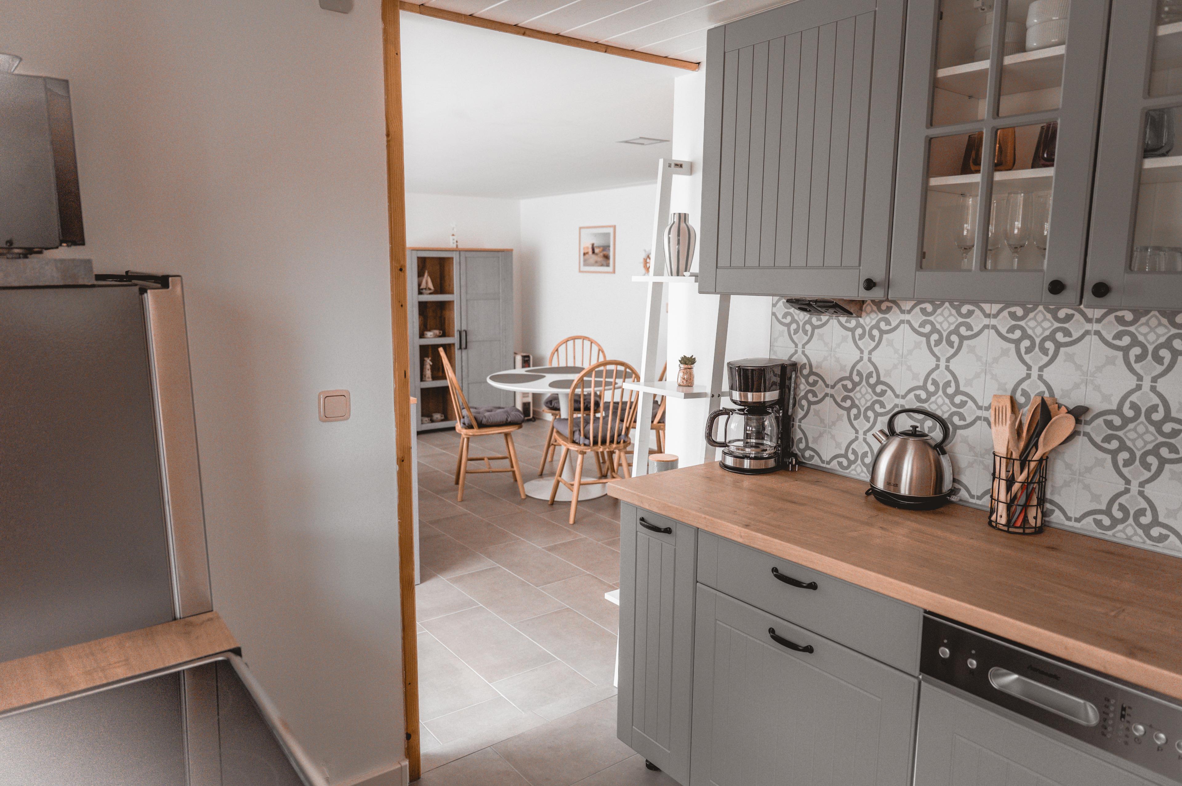 Die voll ausgestattete Küche lässt keine Wünsche offen: Hier finden Sie alles, was Sie für einen erholsamen Urlaub benötigen – vom Kühlschrank mit Gefrierfach über einen Backofen mit Herd bis hin zu kleinen Helfern wie Kaffeemaschine, Toaster und Eierkocher. Im kompakten Badezimmer stehen Ihnen eine Dusche, Ablageflächen und ein Föhn zur Verfügung. In der Siedlung steht Ihnen ein eigener Waschraum zur Verfügung, ausgestattet mit Waschmaschine und Trockner – ideal für einen komfortablen und unabhängigen Aufenthalt.