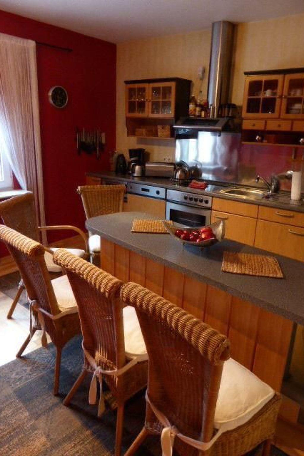 The holiday flat is spread over two floors with a total living area of 140 m². On the ground floor there is a large living room with fireplace, a TV room with sofa bed, a large kitchen and a bathroom with shower and toilet. Upstairs are the three bedrooms, each with a double bed, and a further bathroom with corner bath, toilet, washing machine and tumble dryer.