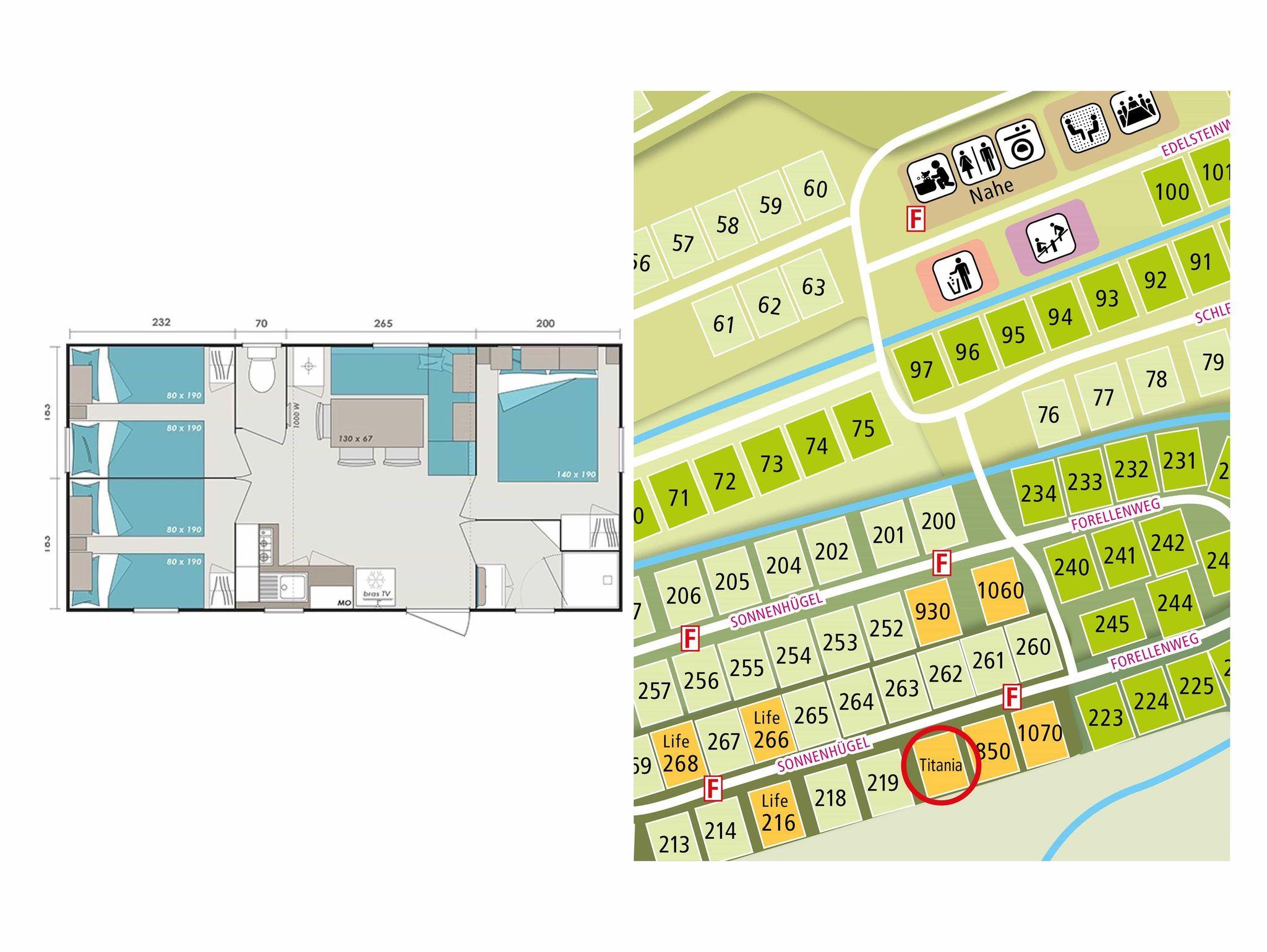 Camping Harfenmühle, Mobilheim Titania für 6 Personen