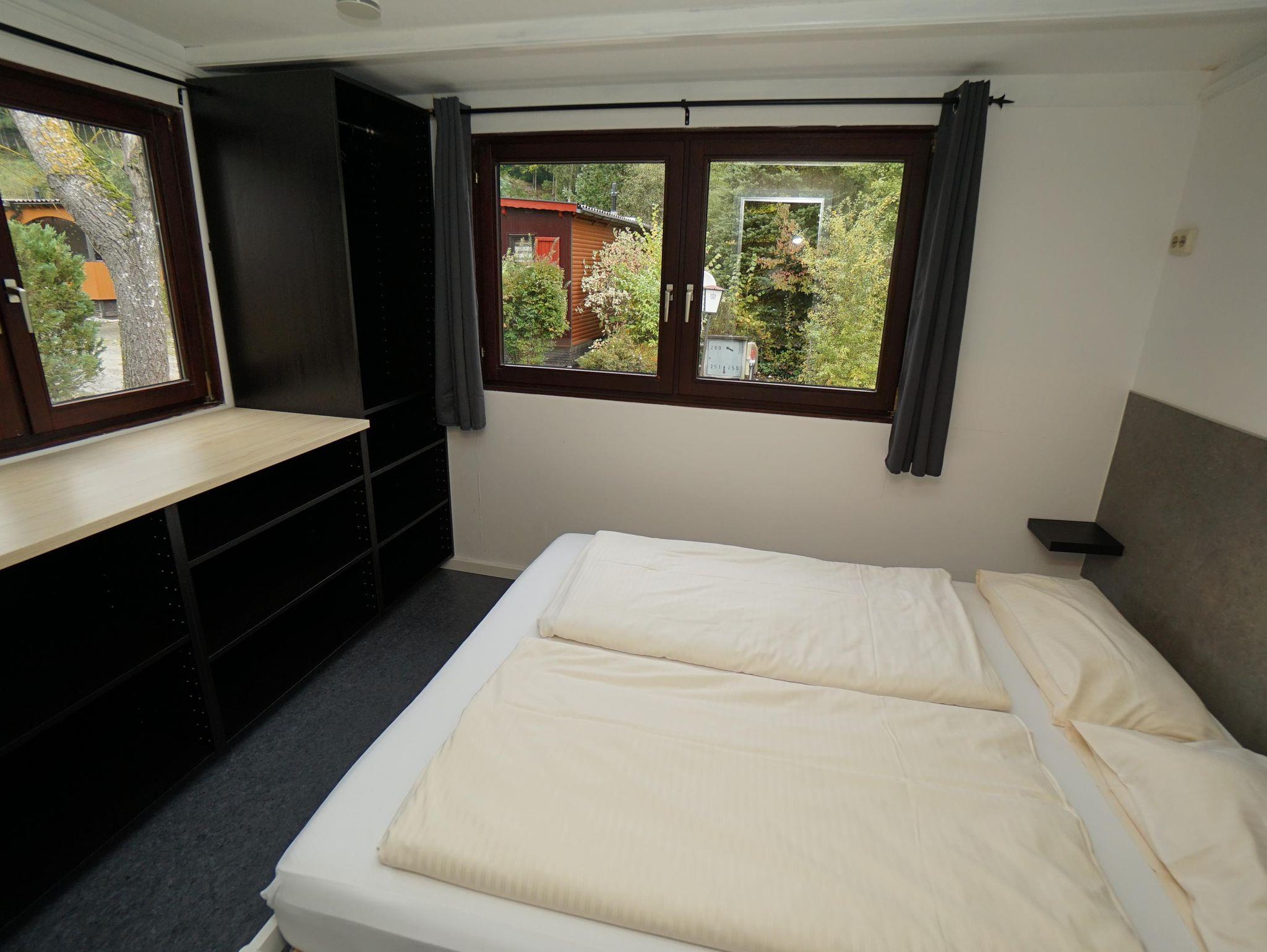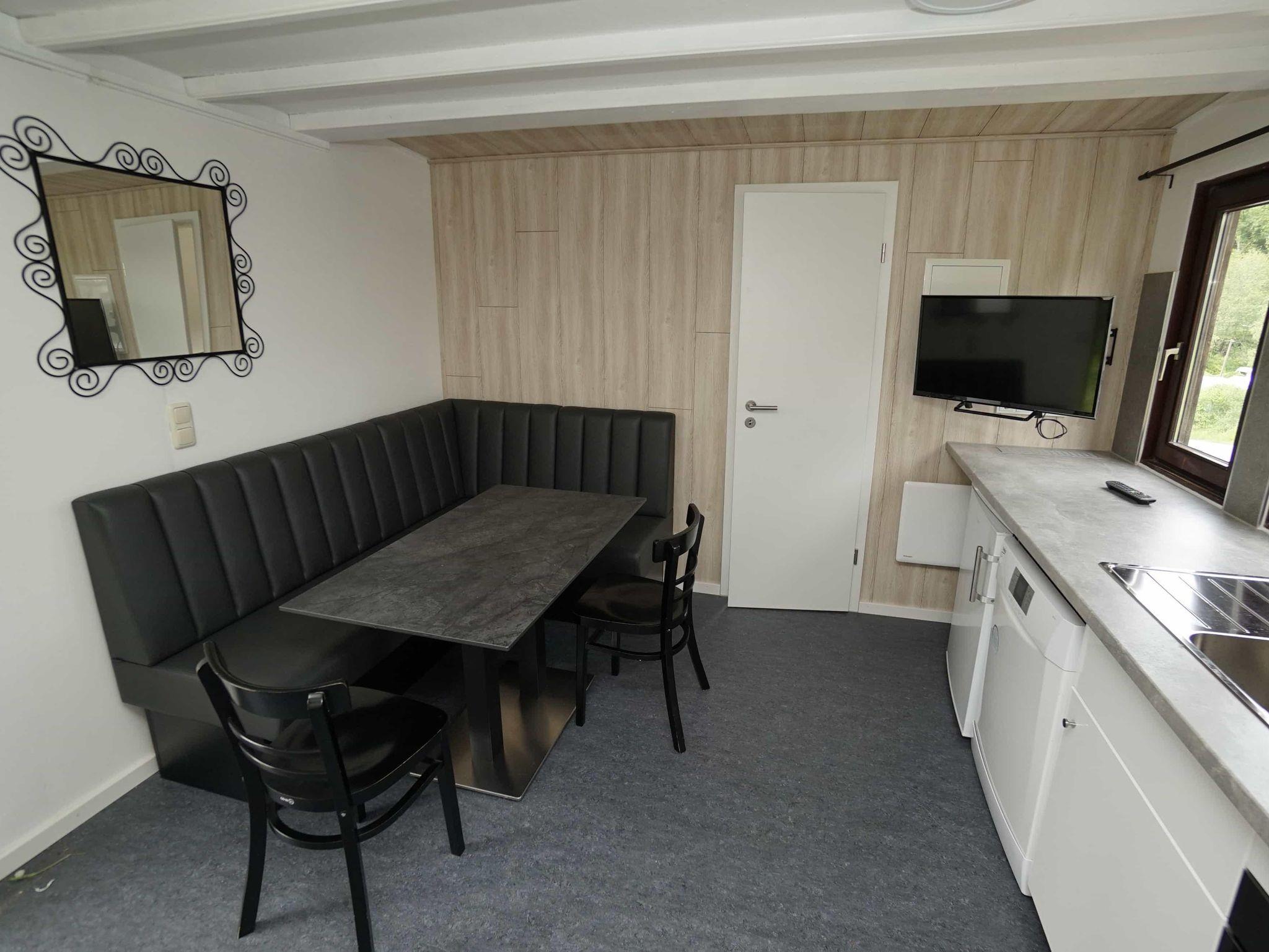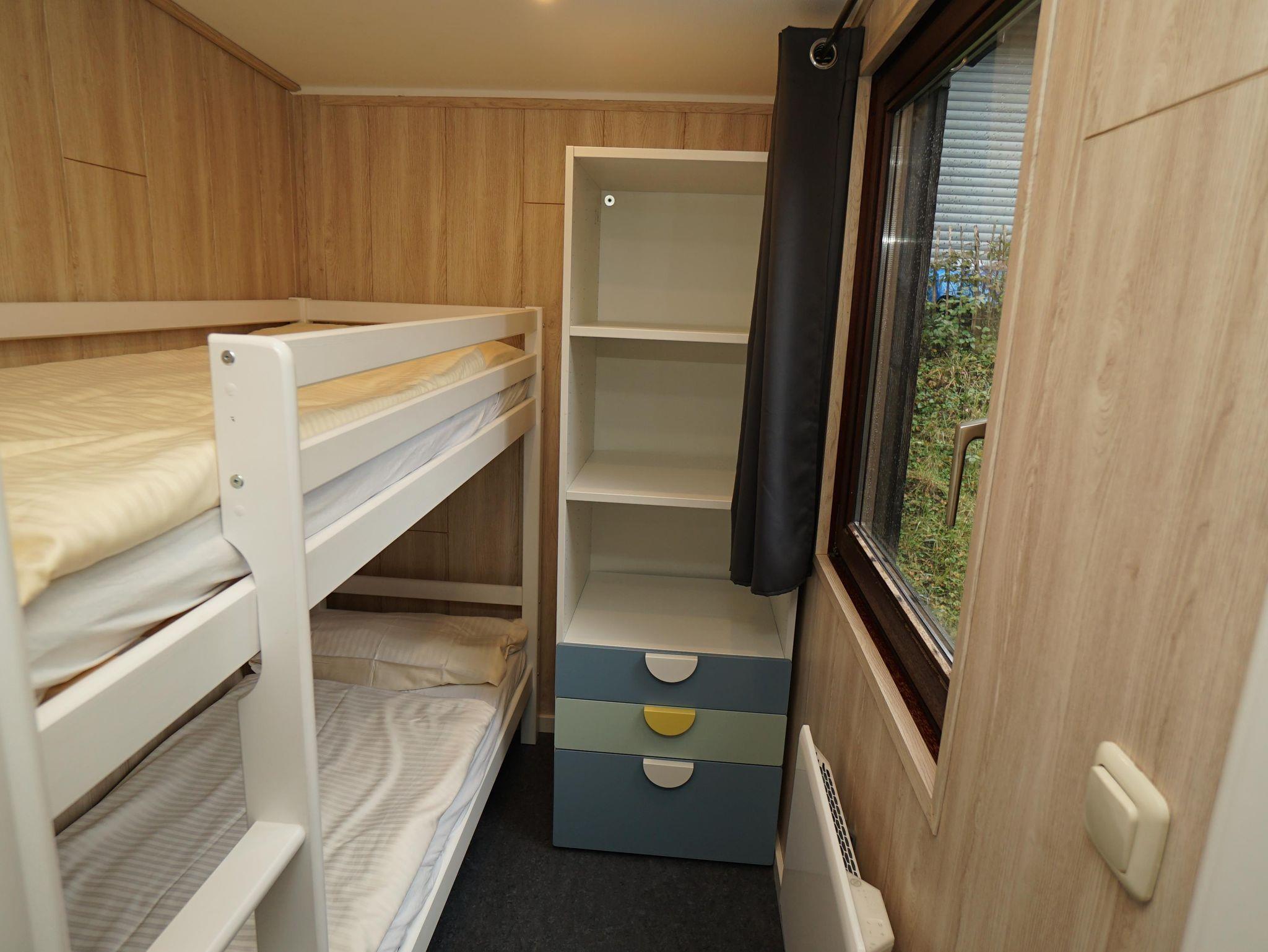 Das 28 qm große Chalet für vier Personen verfügt über zwei Schlafzimmer (Elternzimmer mit Doppelbett 160 x 200 cm und Kinderzimmer mit Etagenbett 80 x 190 cm). Die Unterkunft bietet ein freundlich eingerichteter Wohnraum mit gemütlicher Sitzecke und TV-Gerät. Die offene Küche voll ausgestattet mit Kühlschrank, Backofen und Herd. Außerdem gibt es ein Badezimmer mit Dusche und Toilette.