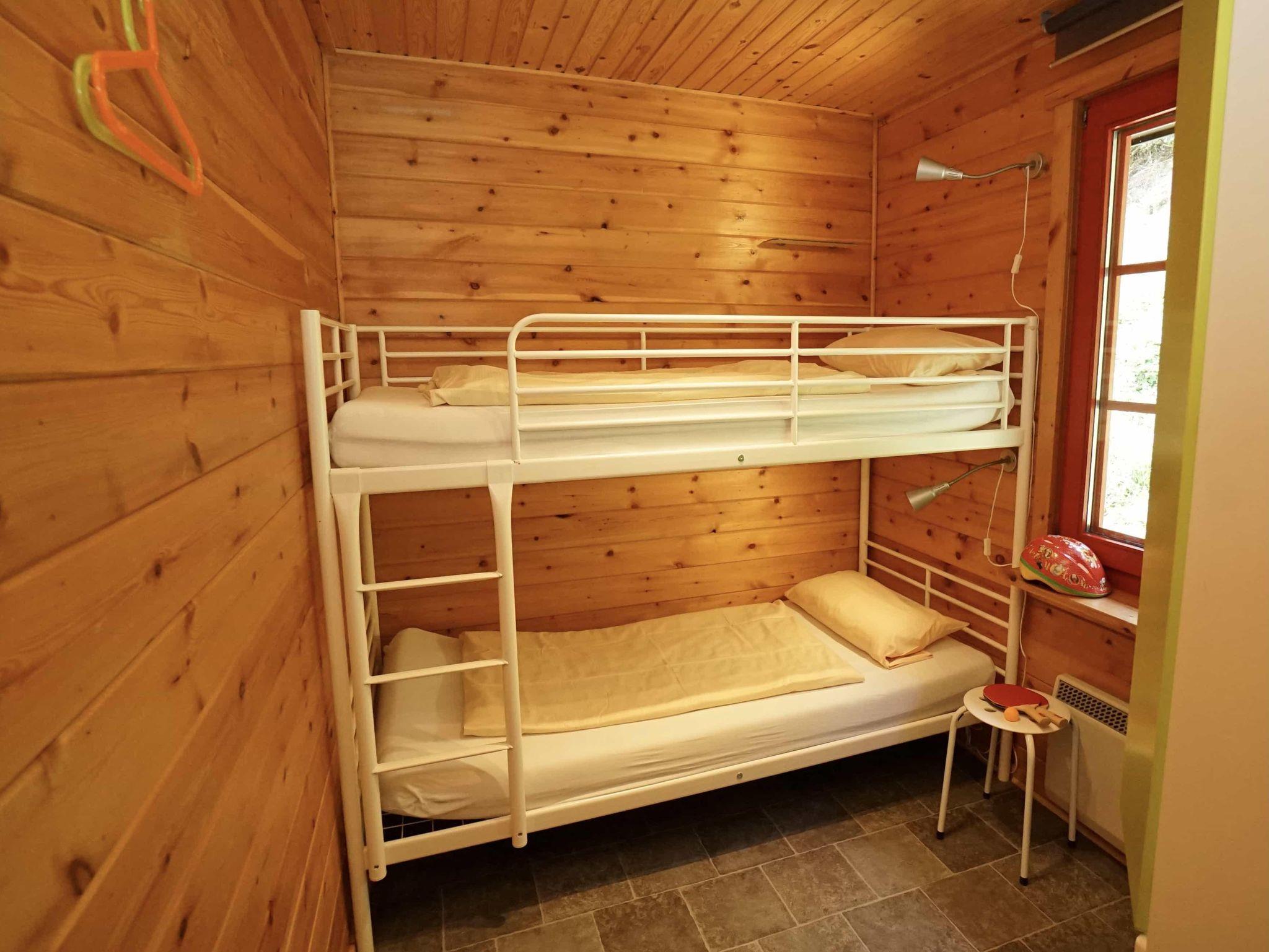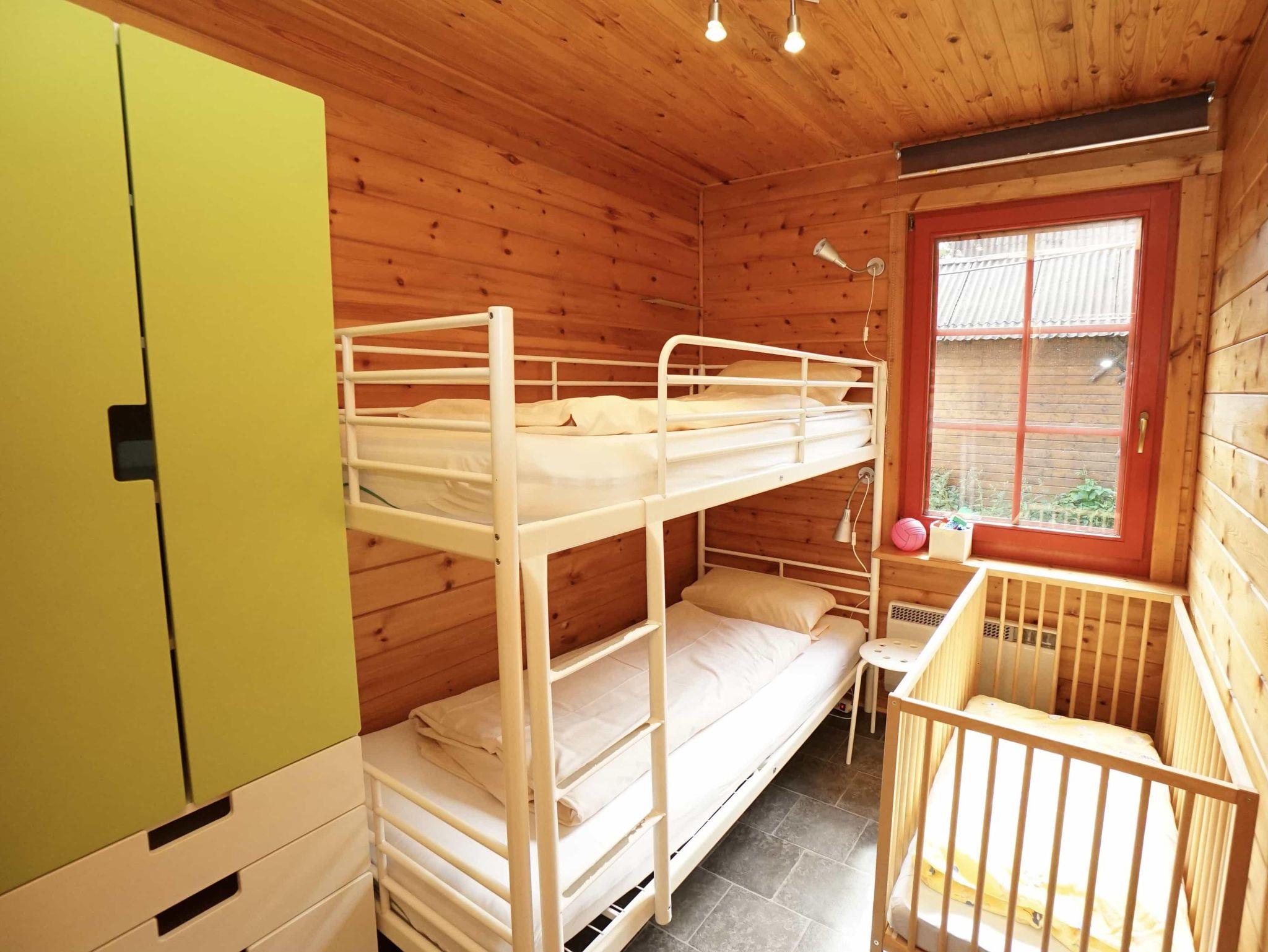 Das 73 qm große Ferienhaus für sechs Personen verfügt über drei Schlafzimmer (Elternzimmer mit Doppelbett 180 x 200 cm und zwei Kinderzimmer mit Etagenbetten 90 x 190 cm). Die Unterkunft bietet einen freundlich eingerichteten Wohnraum mit gemütlicher Couch und TV-Gerät. Im Wohnbereich befindet sich die voll ausgestattete Küche mit zusätzlich Mikrowelle und Esstisch. Außerdem gibt es ein Badezimmer mit Duschwanne und separatem WC. Im Außenbereich ist eine überdachte Terrasse mit Gartenmöbeln.