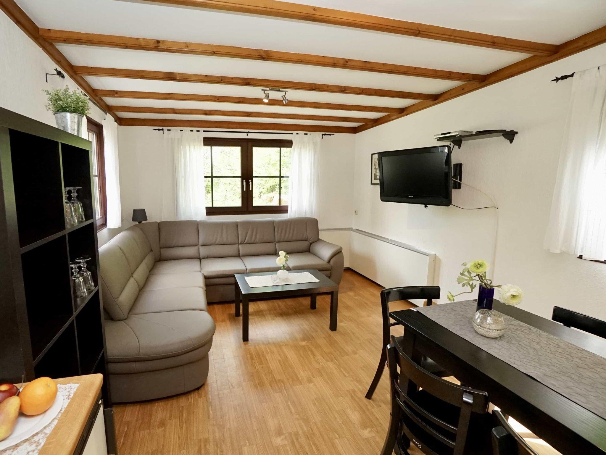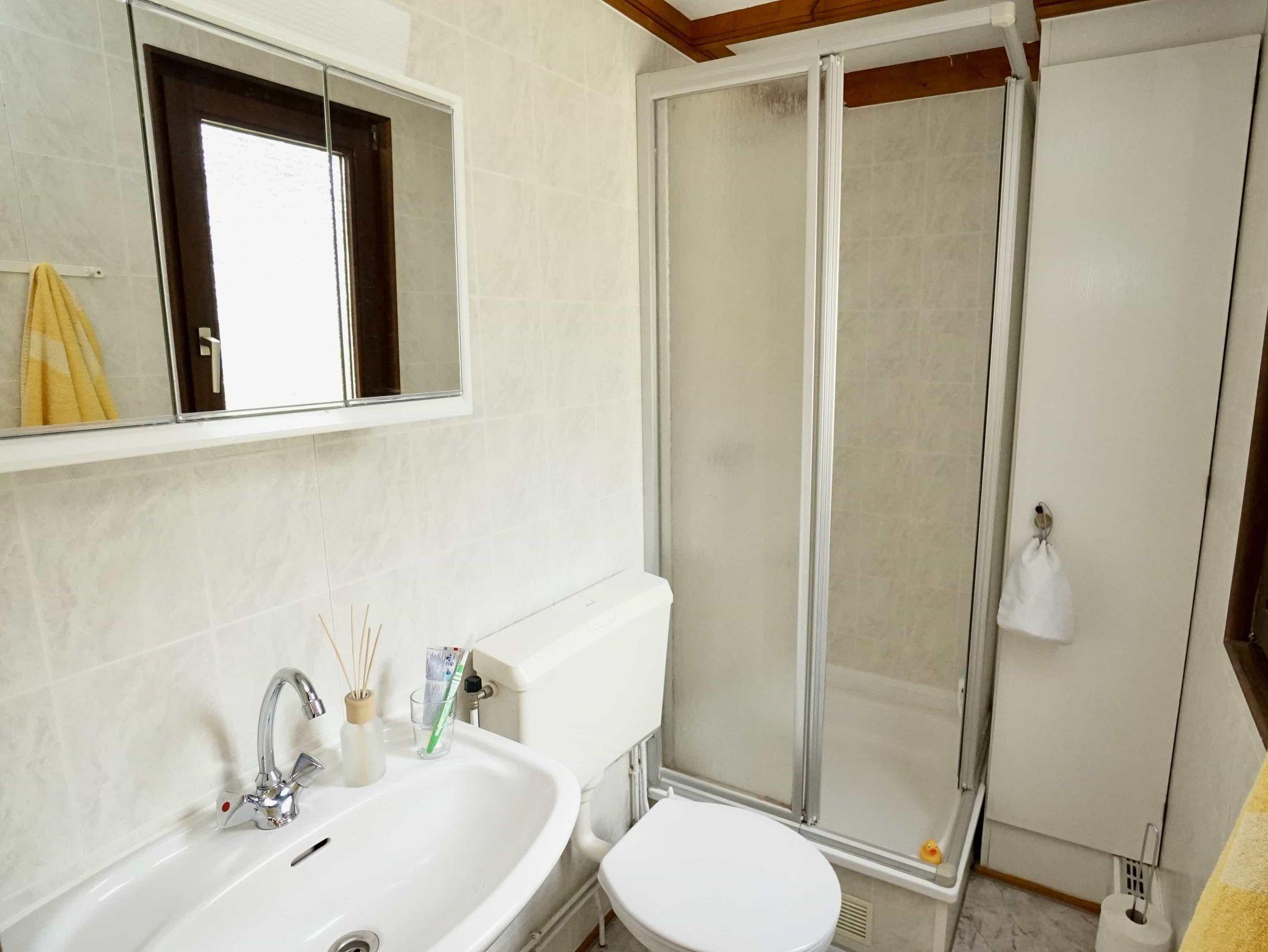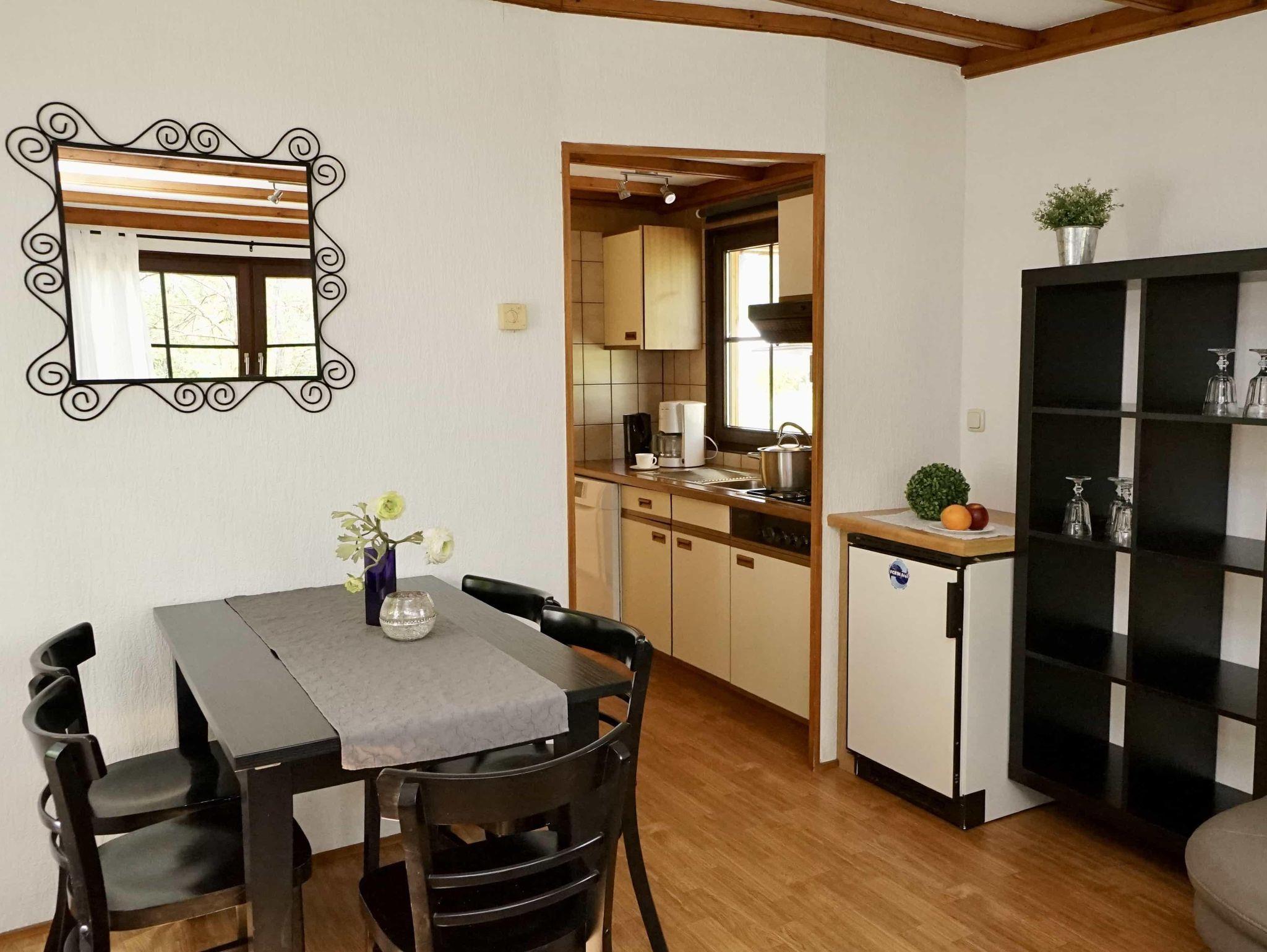 Das 33 qm große Chalet für fünf Personen verfügt über zwei Schlafzimmer (Elternzimmer mit Doppelbett 160 x 200 cm und Kinderzimmer mit Etagenbett 70 x 190 cm und Einzelbett 70 x 190 cm). Die Unterkunft bietet einen freundlich eingerichteten Wohnraum mit gemütlicher Couch, Esstisch und TV- Gerät. Im Flur befindet sich die voll ausgestattete Küche. Außerdem gibt es ein Badezimmer mit Dusche und WC. Im Außenbereich ist eine überdachte Terrasse mit Gartenmöbeln.