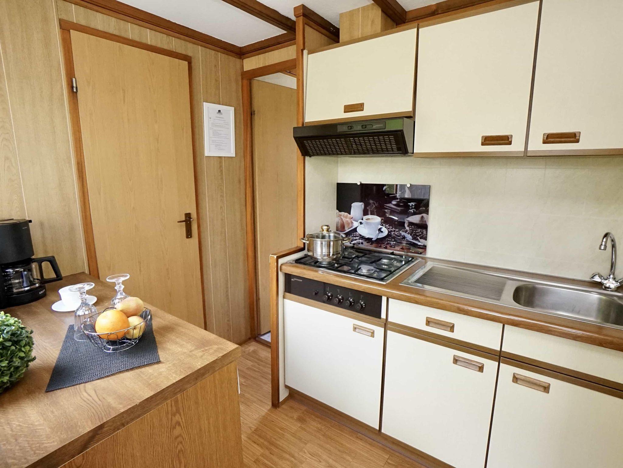 Das 23 qm große Chalet für zwei Personen verfügt über ein Schlafzimmer (Doppelbett 160 x 200 cm). Die Unterkunft bietet einen freundlich eingerichteten Wohnraum mit gemütlicher Couch, Esstisch und TV- Gerät. Im Flur befindet sich die voll ausgestattete Küche. Außerdem gibt es ein Badezimmer mit Dusche und WC. Im Außenbereich ist eine Terrasse mit Gartenmöbeln.