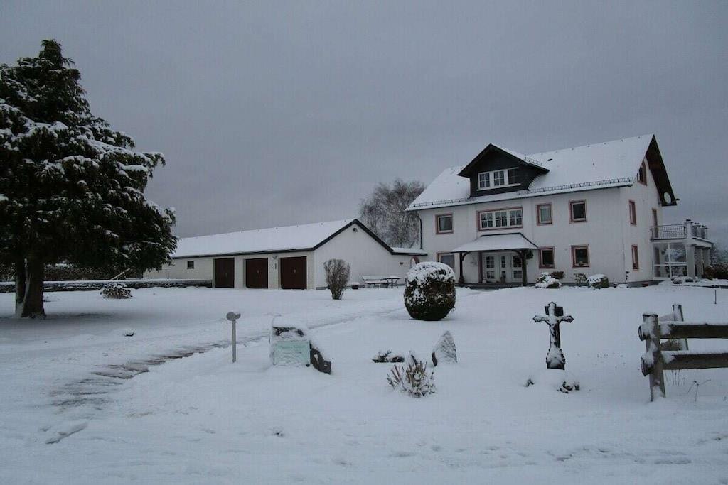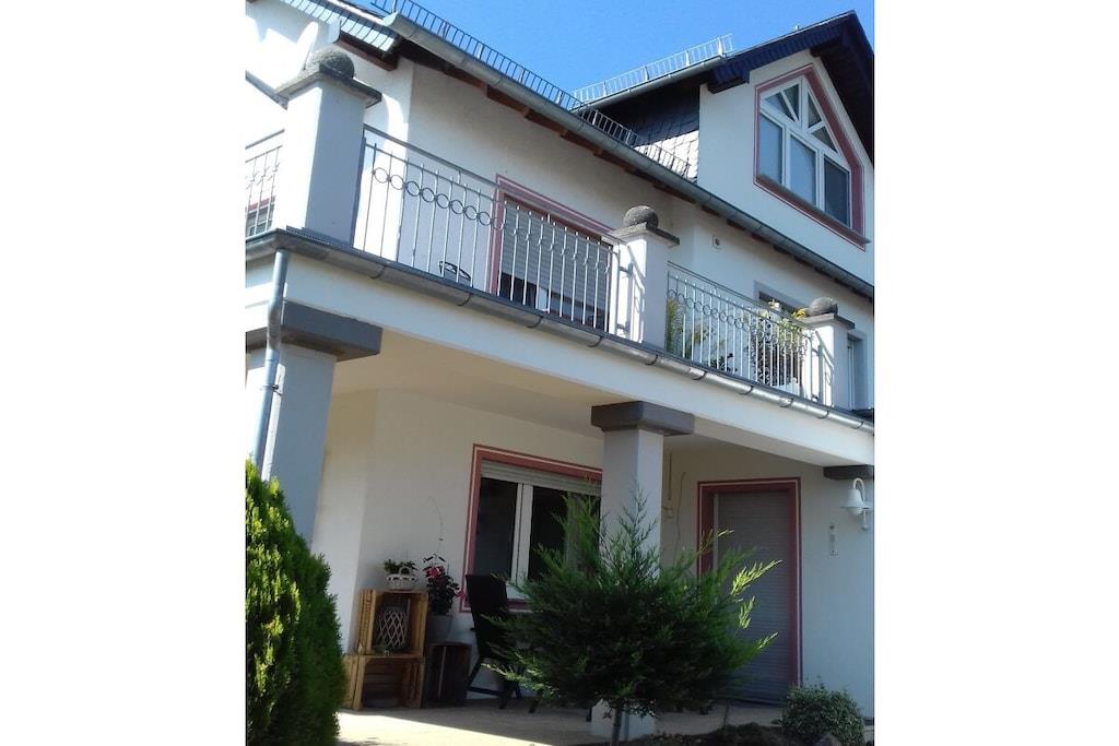 En drømmende, rolig og afsides beliggenhed med en storslået udsigt over adgangsstien til Geierlay-hængebroen, ideel for familier, vandrere, cyklister, motorcyklister, mekanikere og forretningsrejsende. Et dobbeltværelse og en stor stue med en Murphy-seng og en sovesofa. Komfortabelt udstyret køkken med varmluftsovn og keramisk kogeplade, mikrobølgeovn, opvaskemaskine, køleskab/fryser, kaffemaskine, brødrister og elkedel, vaffeljern, blender og foodprocessor. Stort badeværelse med badekar, bruser, toilet, hårtørrer og gæstetoilet. Opbevaringsrum med strygebræt og strygejern, pengeskab. Til underholdning er der digital-tv med dvd-afspiller, videoafspiller, stereoanlæg/cd-afspiller og Wi-Fi. Informationsmappe med adskillige kort over det omkringliggende område, vandrekort, cykelture og udflugtsmuligheder. Du kan finde den nøjagtige prisliste under "Bemærk: Opført efter opholdets længde og antal personer samt soveforhold".