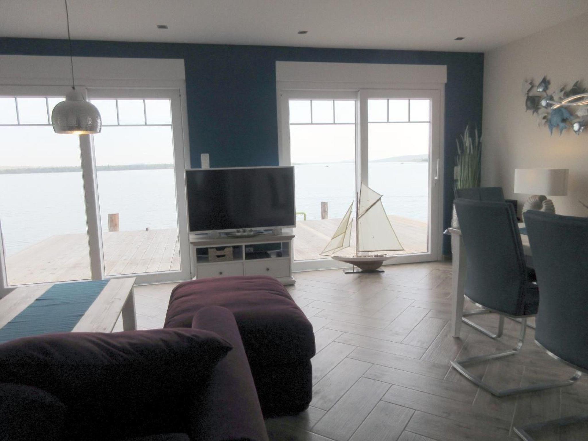 Welcome to Ferienhaus Seehaus Maria, your exquisite holiday home directly on the Geiseltalsee. This sophisticated holiday home offers a luxurious family home ambience for a maximum of 5 people on its private waterfront property with sun terrace and jetty. Be inspired by the unique location directly on the water and the high-quality furnishings and spend unforgettable moments in the Mücheln marina.
