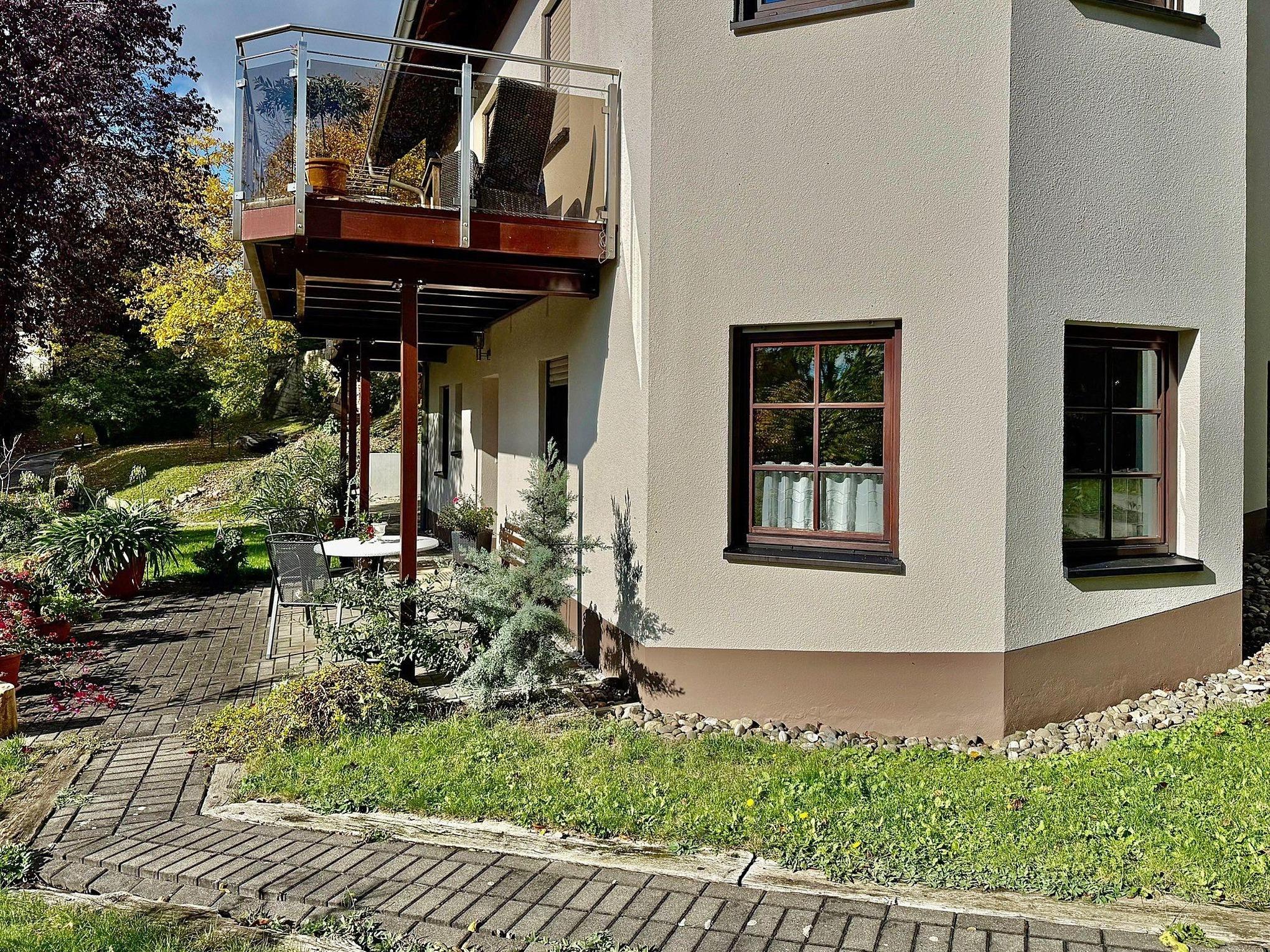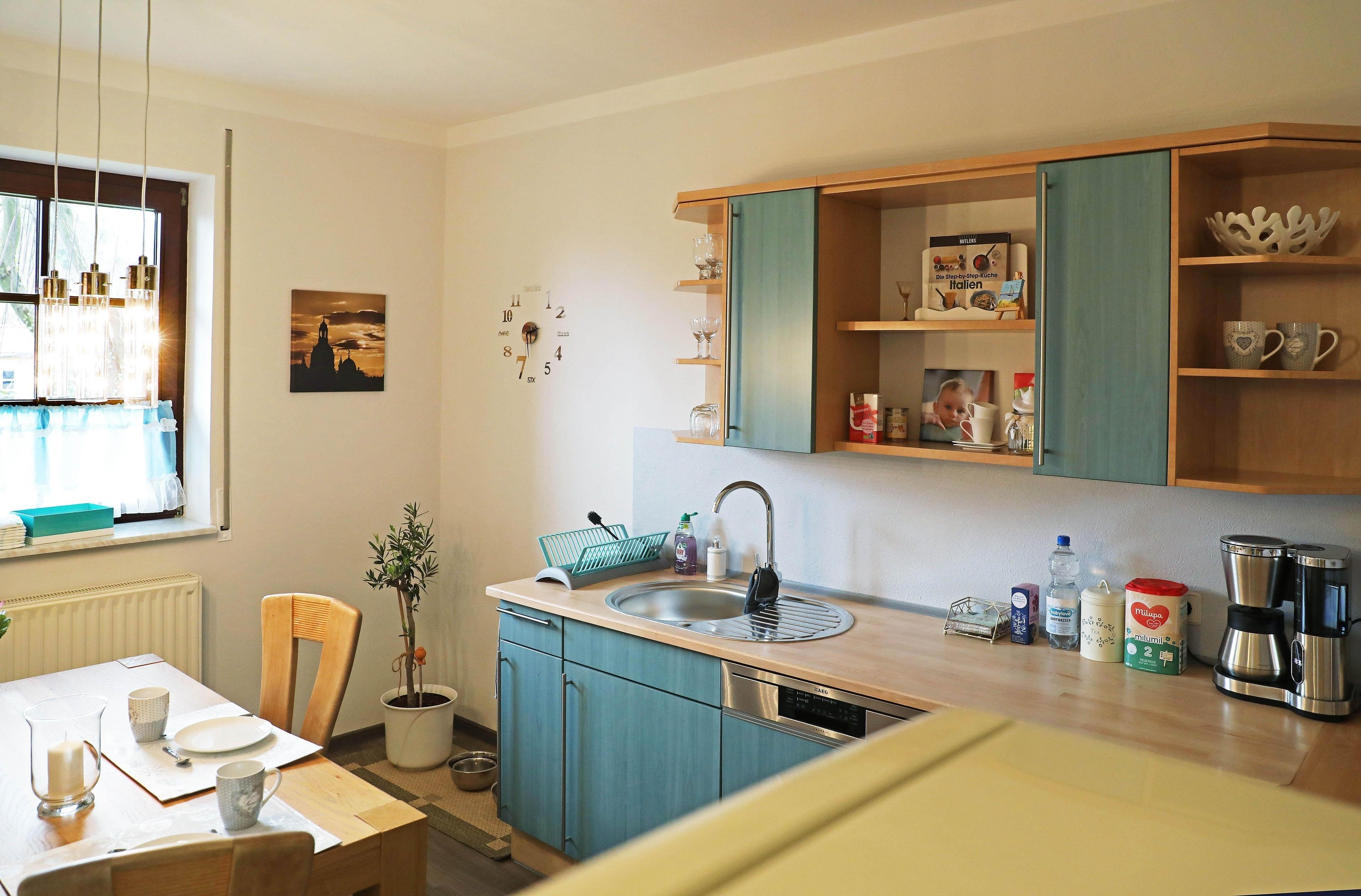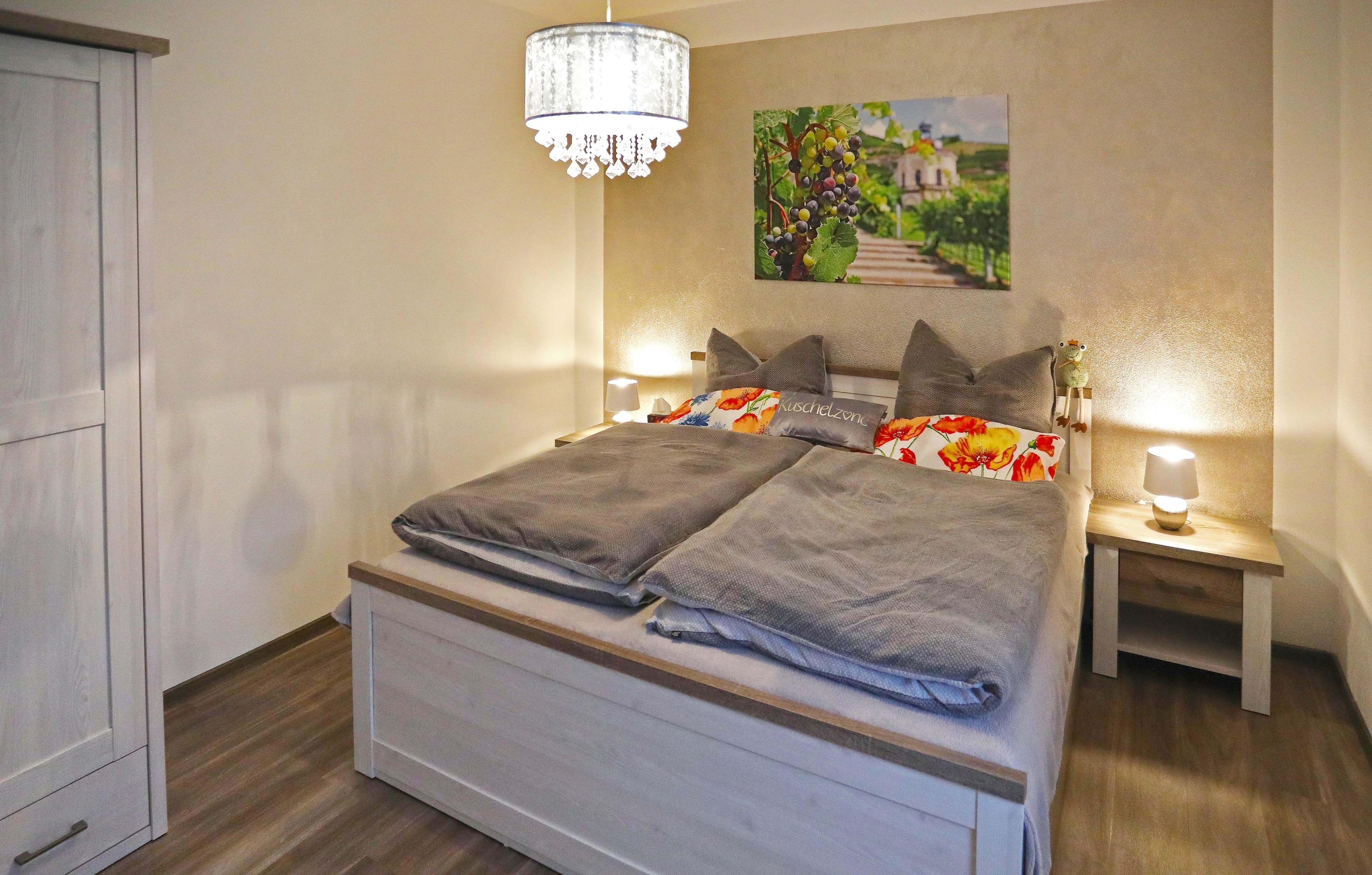 ruhige Lage im Grünen, gemütliche und neue moderne Einrichtung, die Ferienwohnung liegt am Südhang, hinter der Ferienwohnung liegt das Maxener Schloss mit Weingarten und gegenüber befindet sich das ehemalige Pfarrhaus und ein Pferdehof.