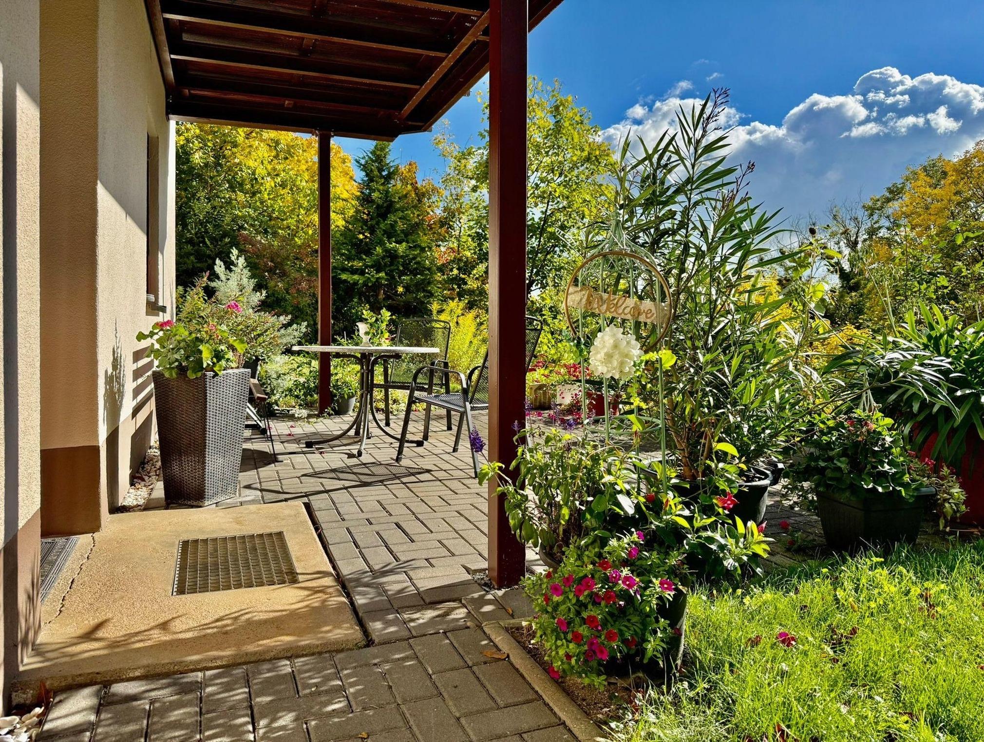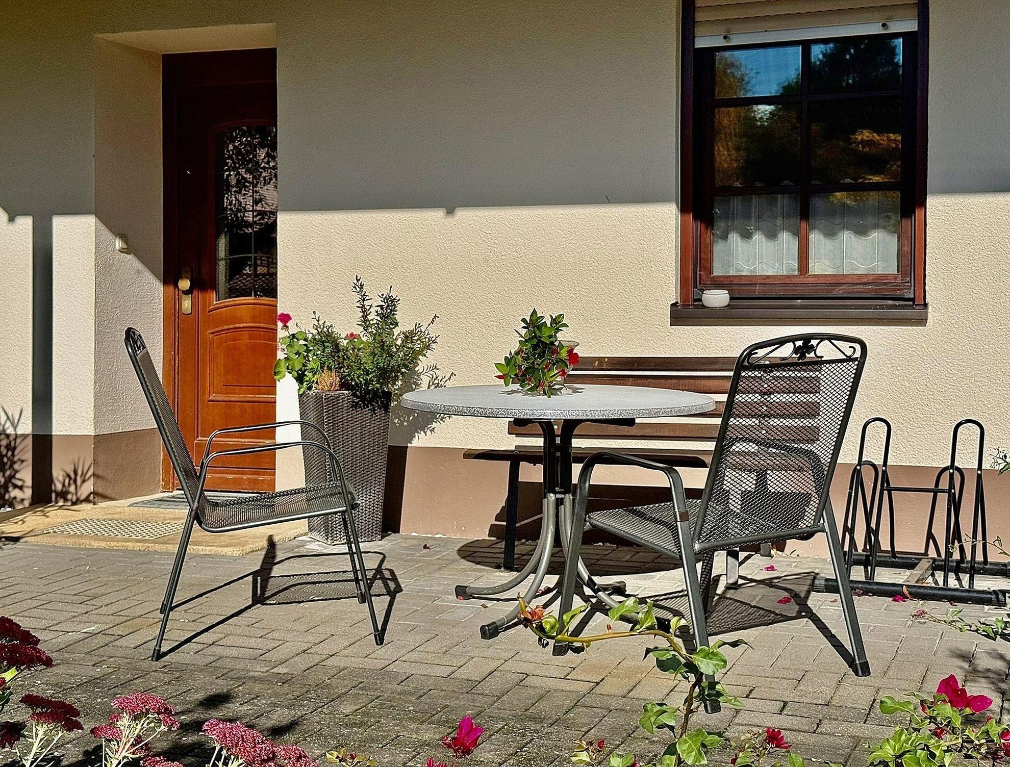 Terasse mit Gartenmöbel, Parkplatz ist kostenfrei verfügbar